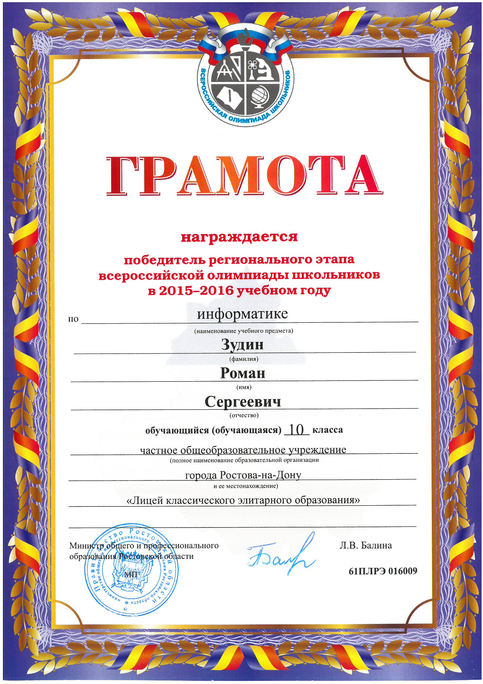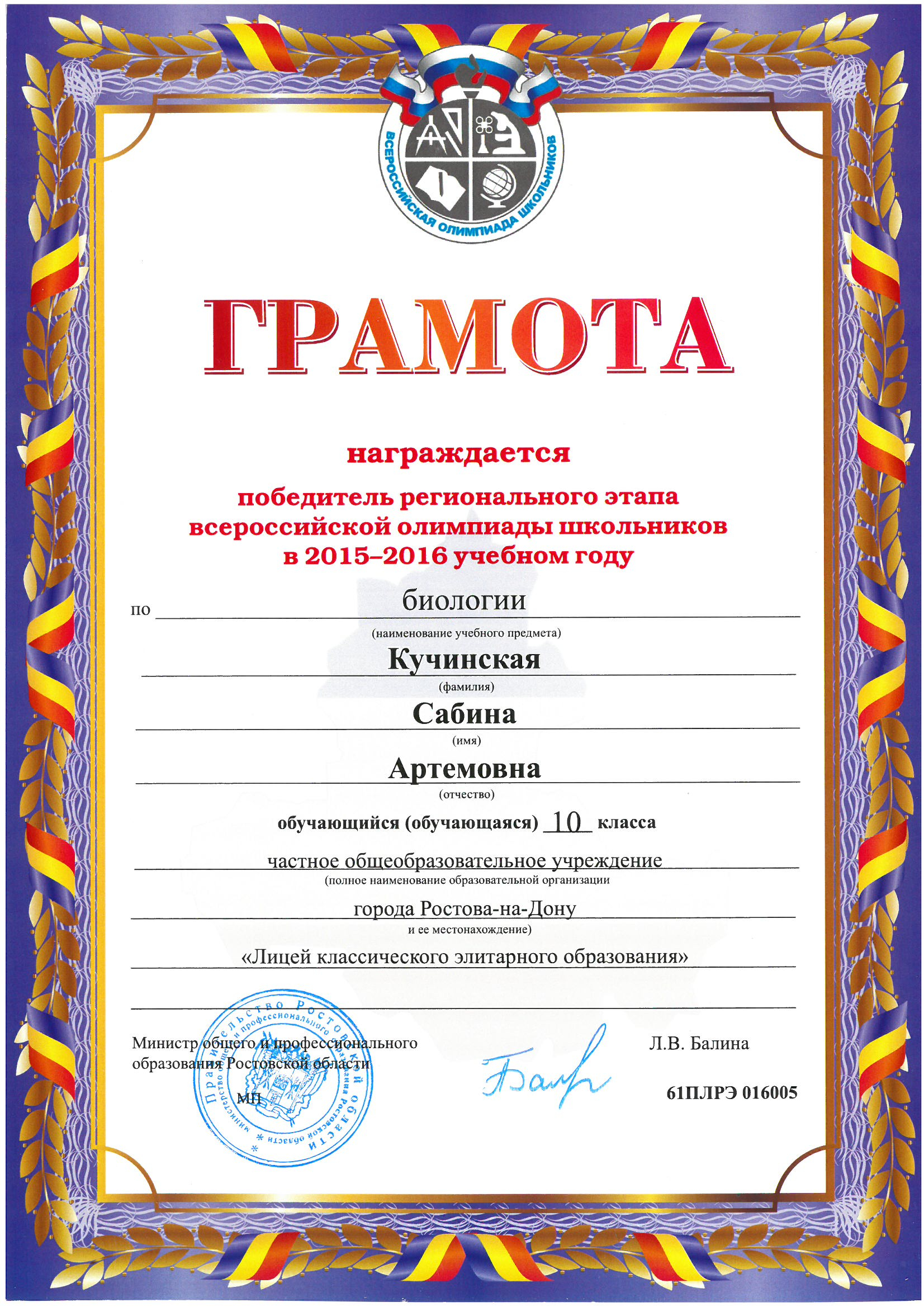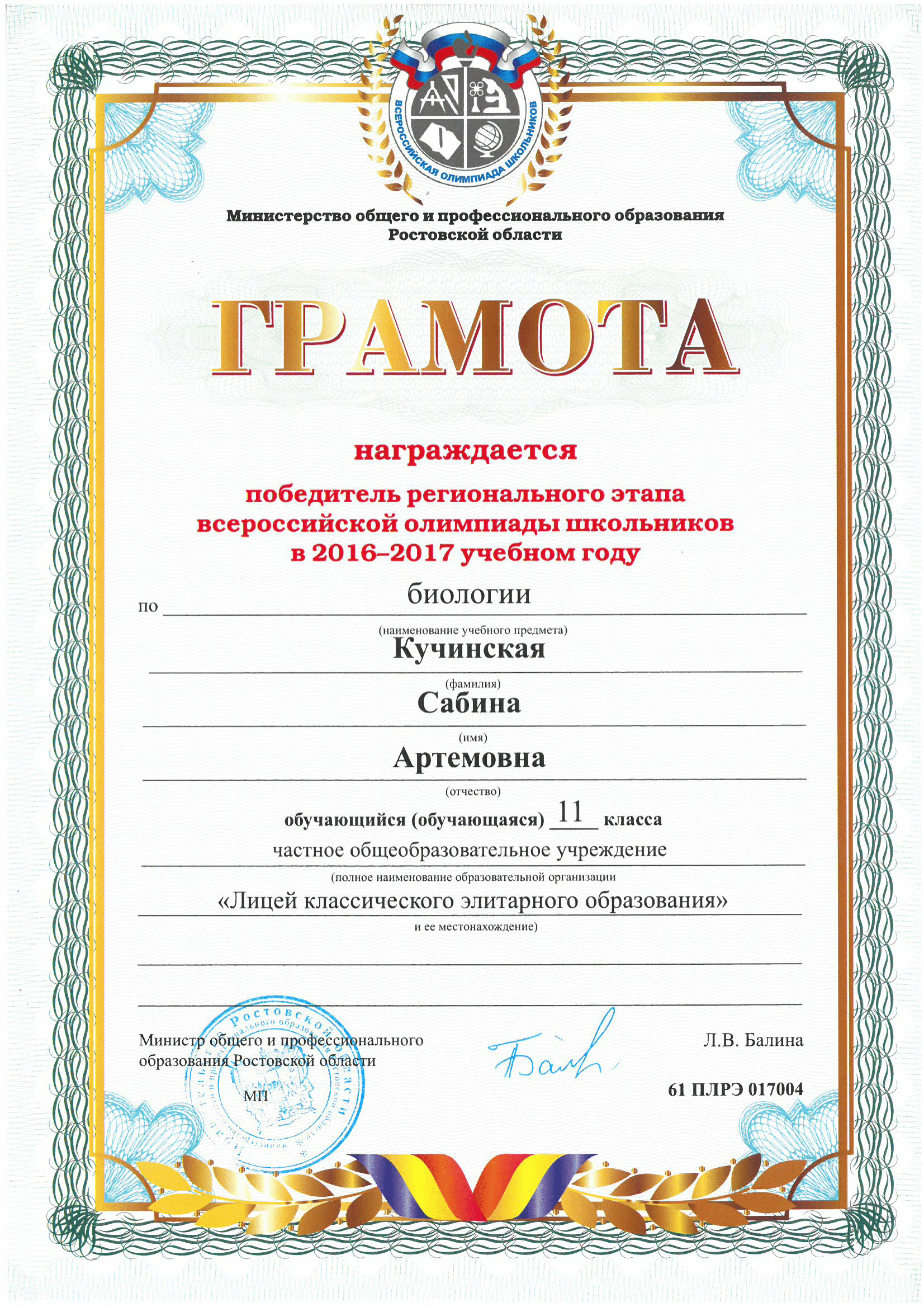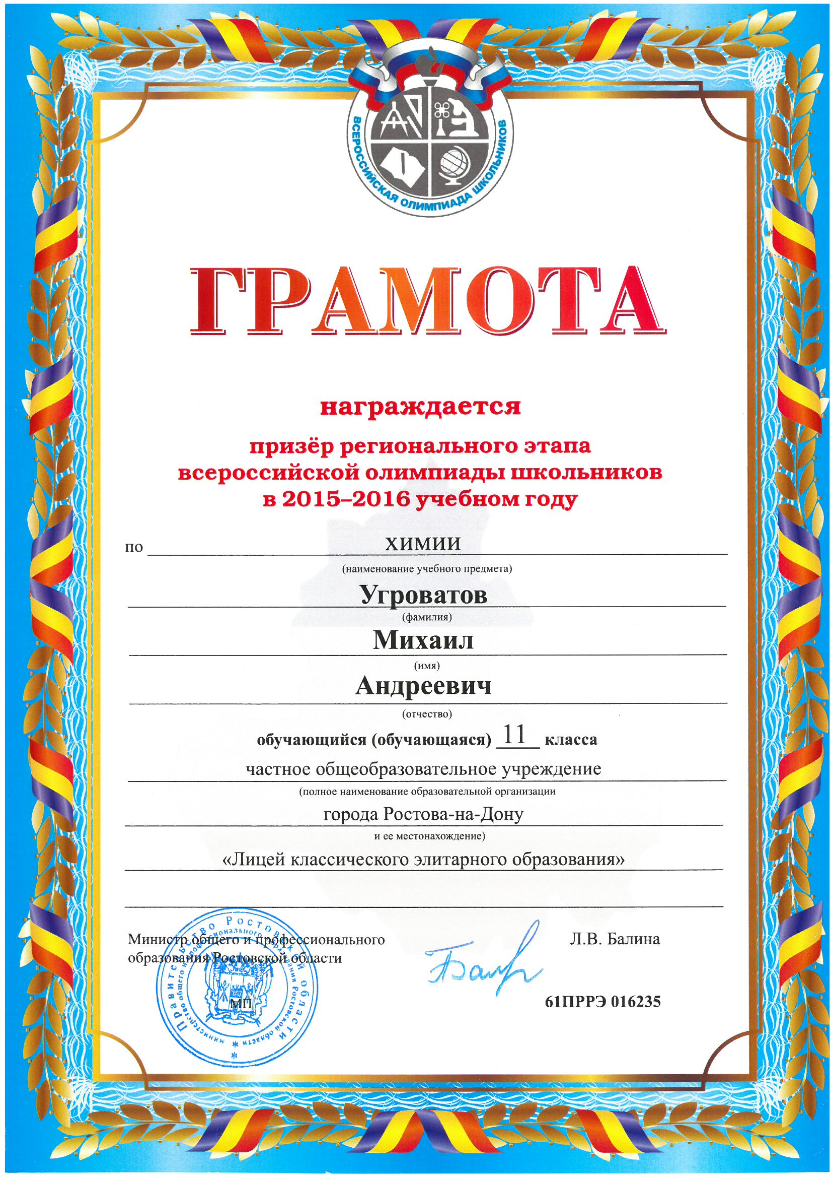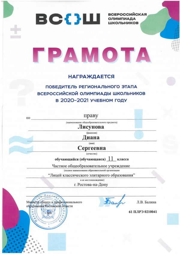 Ученики нашего Лицея ежегодно становятся победителями и призерами вузовских (перечневых), городских, областных, всероссийских и международных олимпиад школьников.