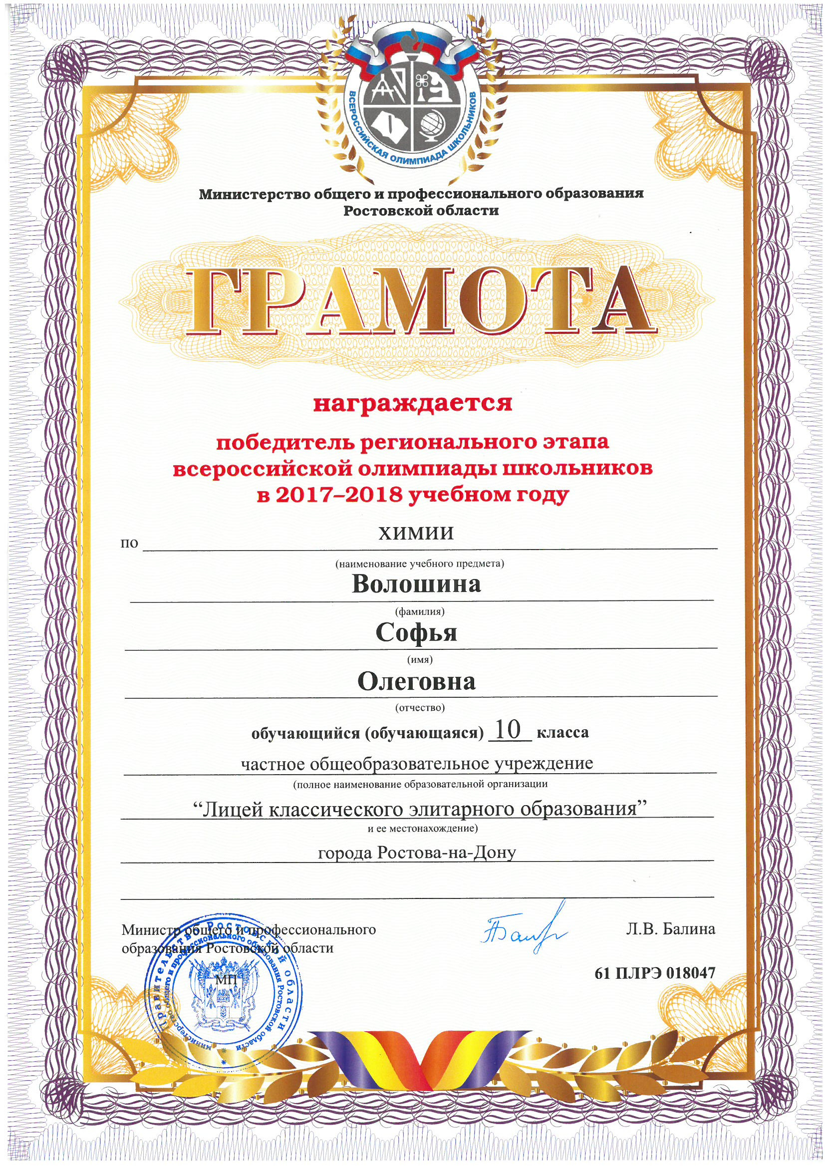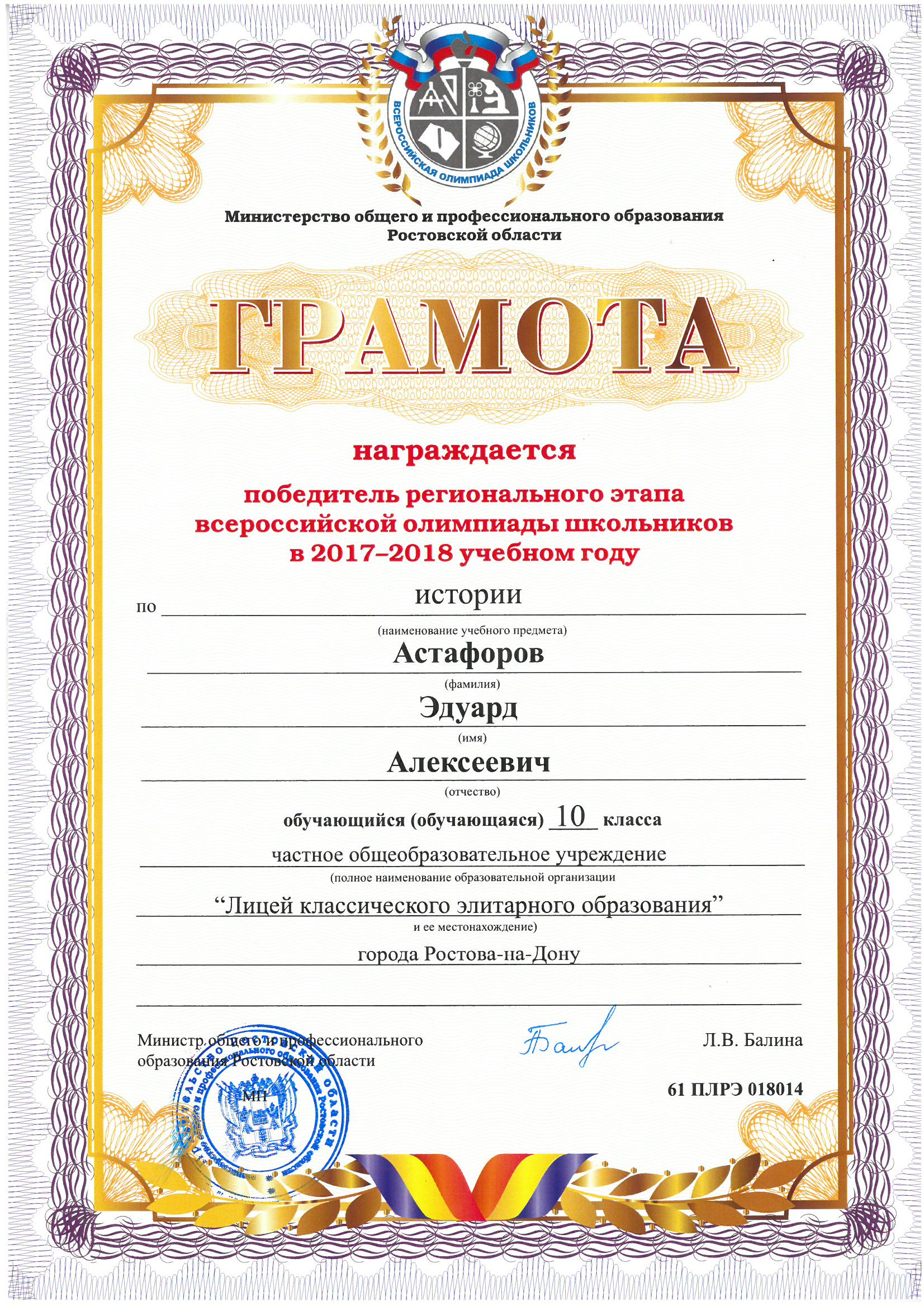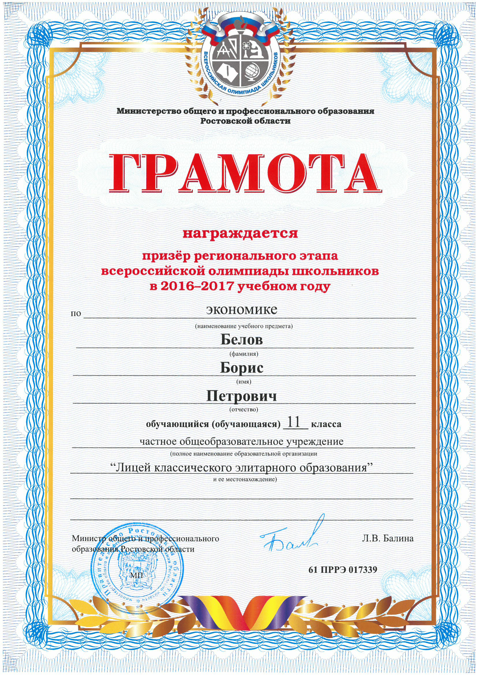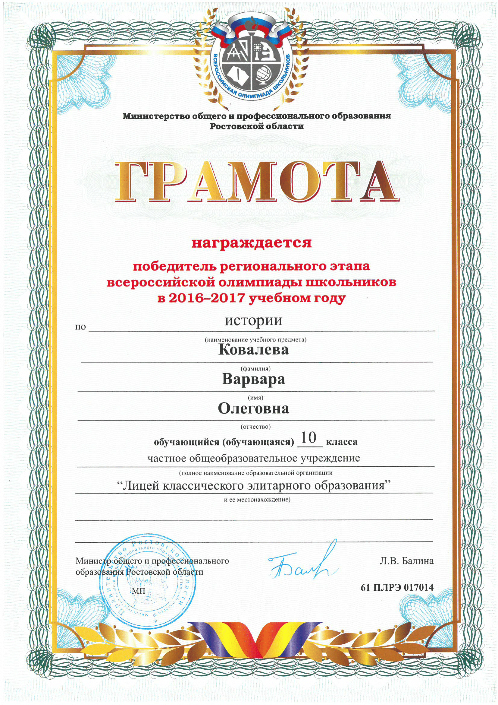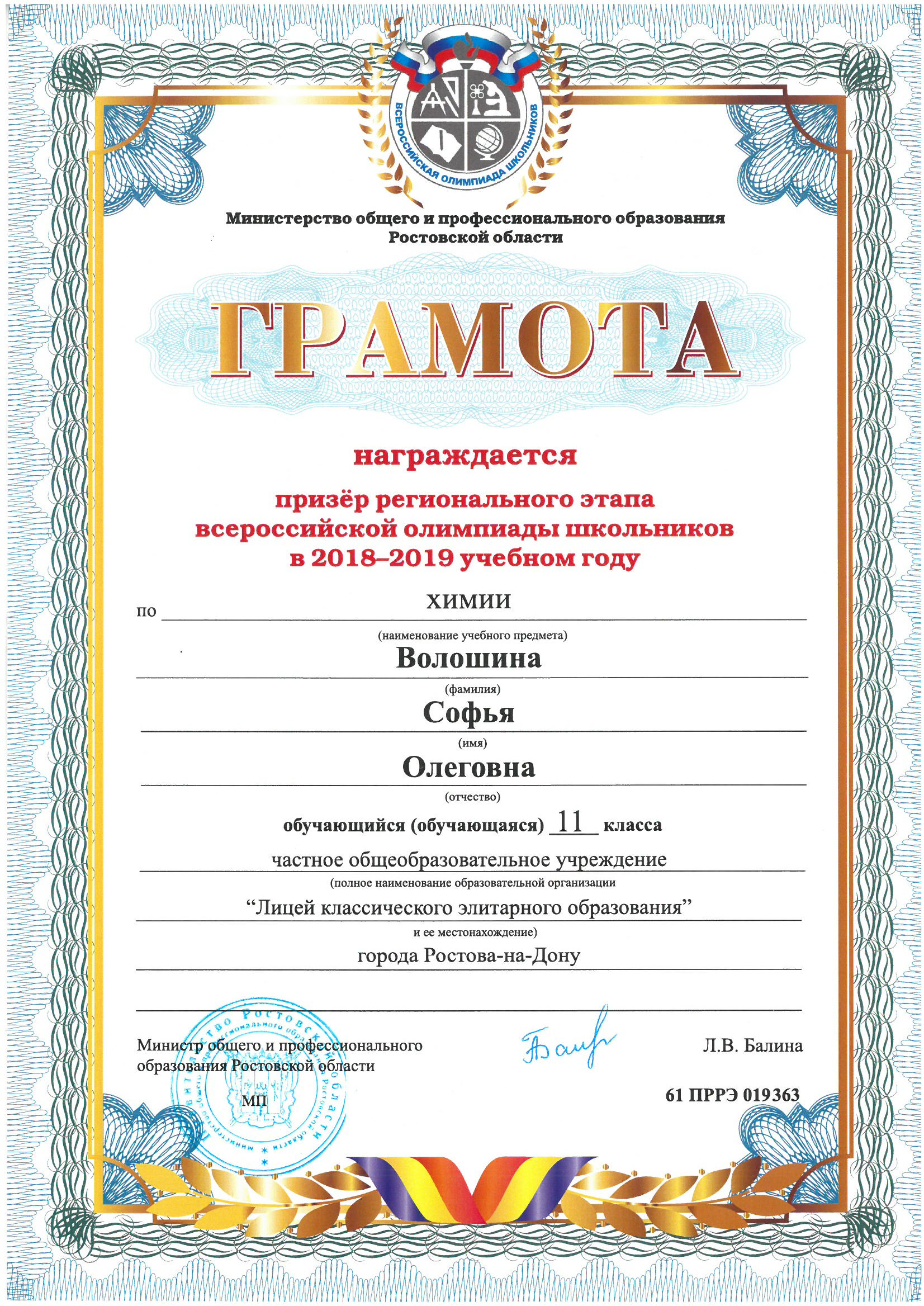 Ученики нашего Лицея ежегодно становятся победителями и призерами вузовских (перечневых), городских, областных, всероссийских и международных олимпиад школьников.