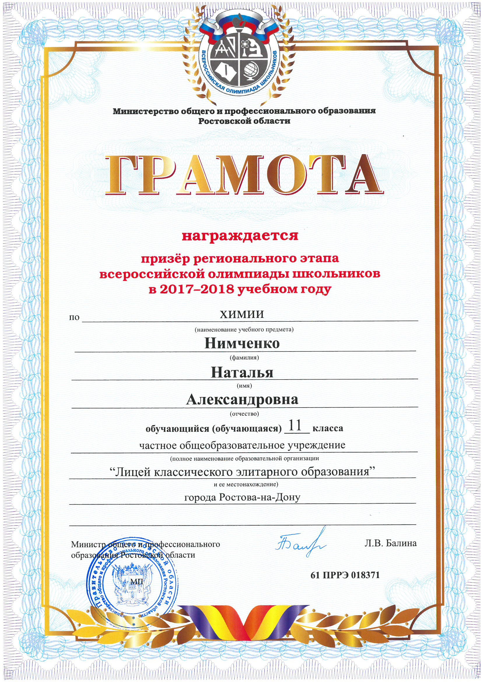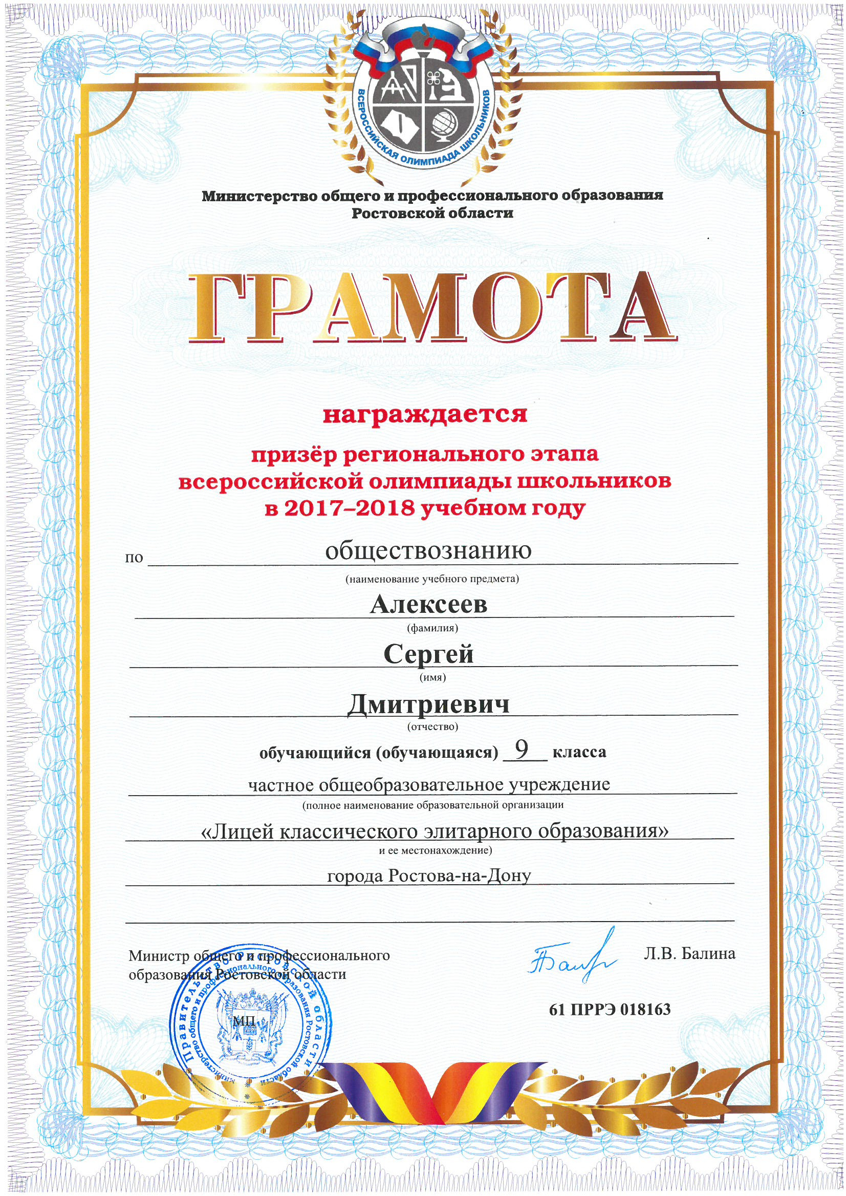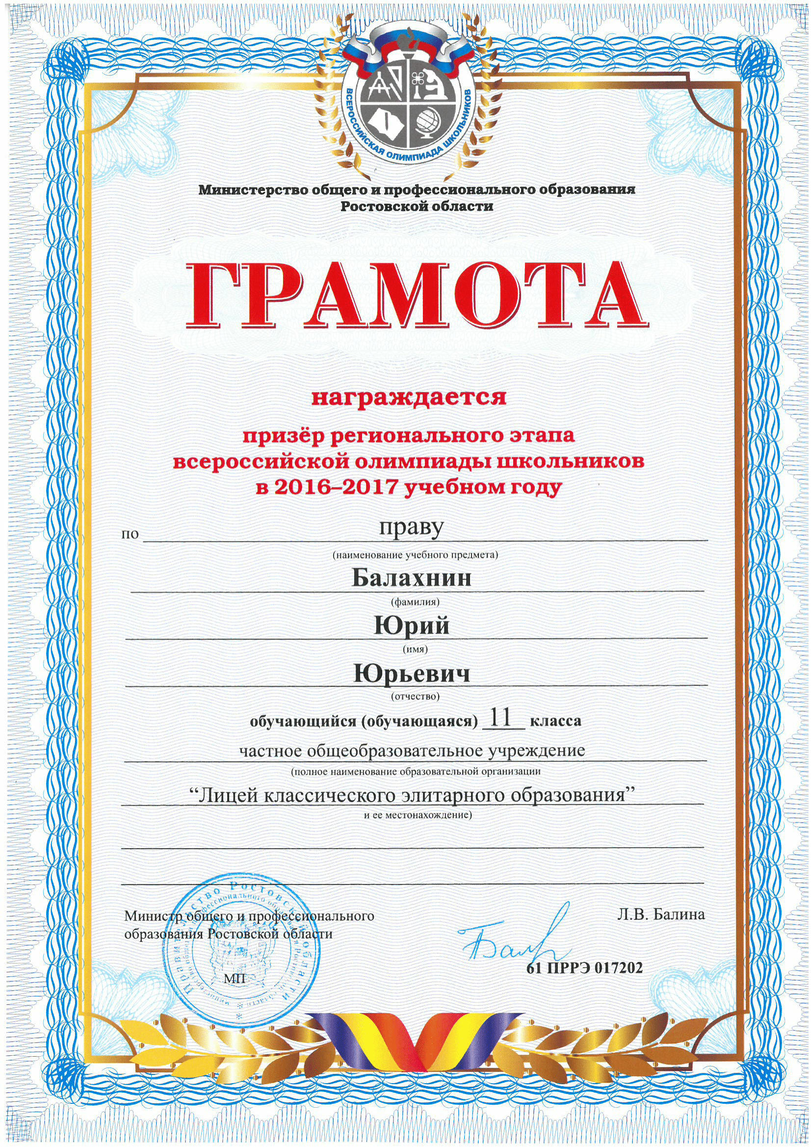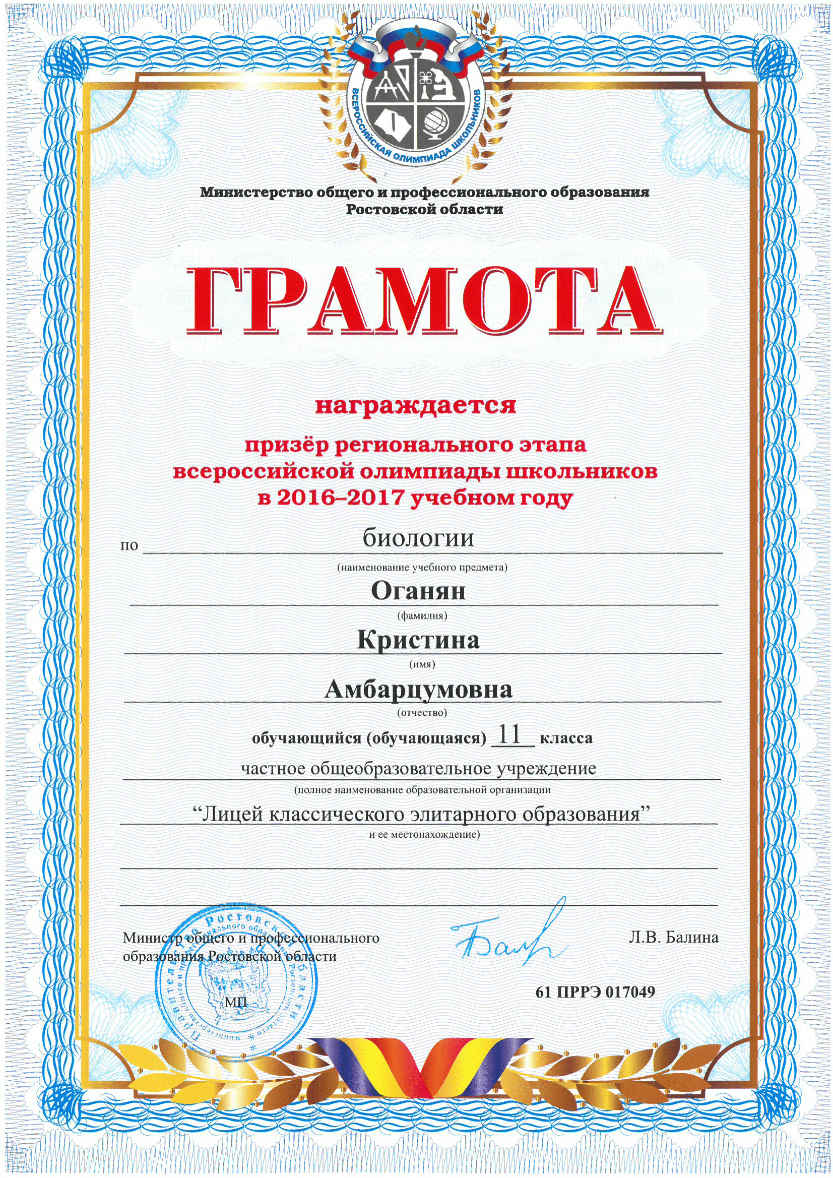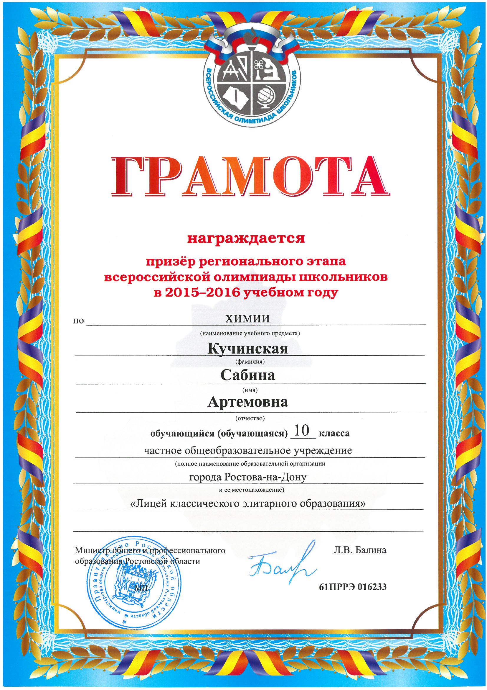 Ученики нашего Лицея ежегодно становятся победителями и призерами вузовских (перечневых), городских, областных, всероссийских и международных олимпиад школьников.