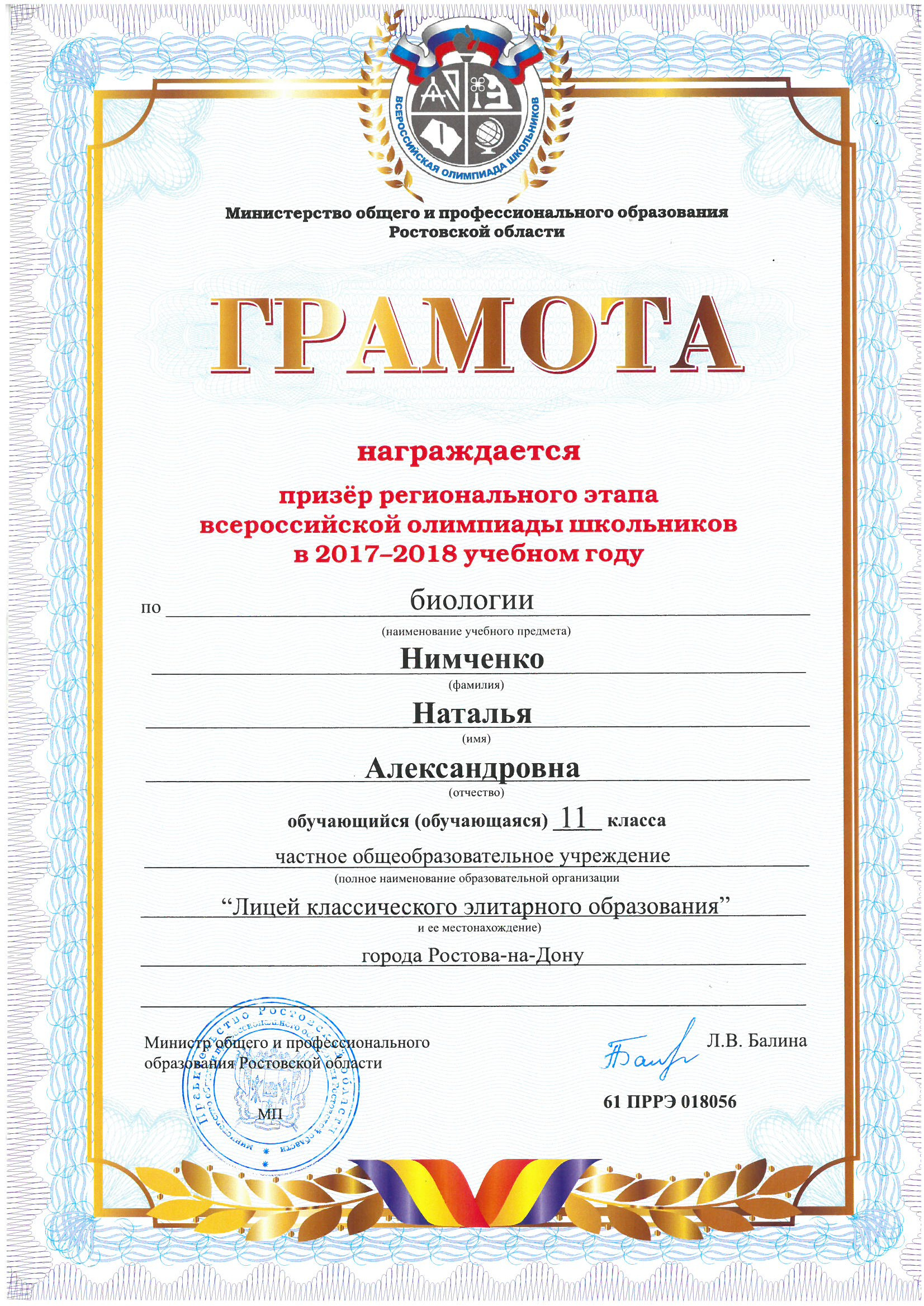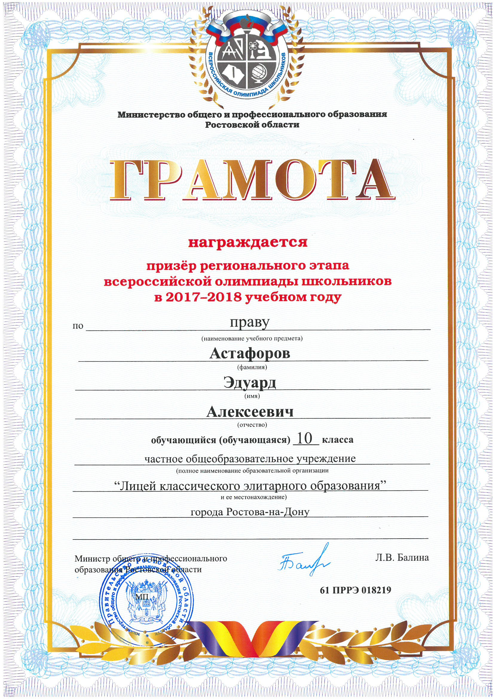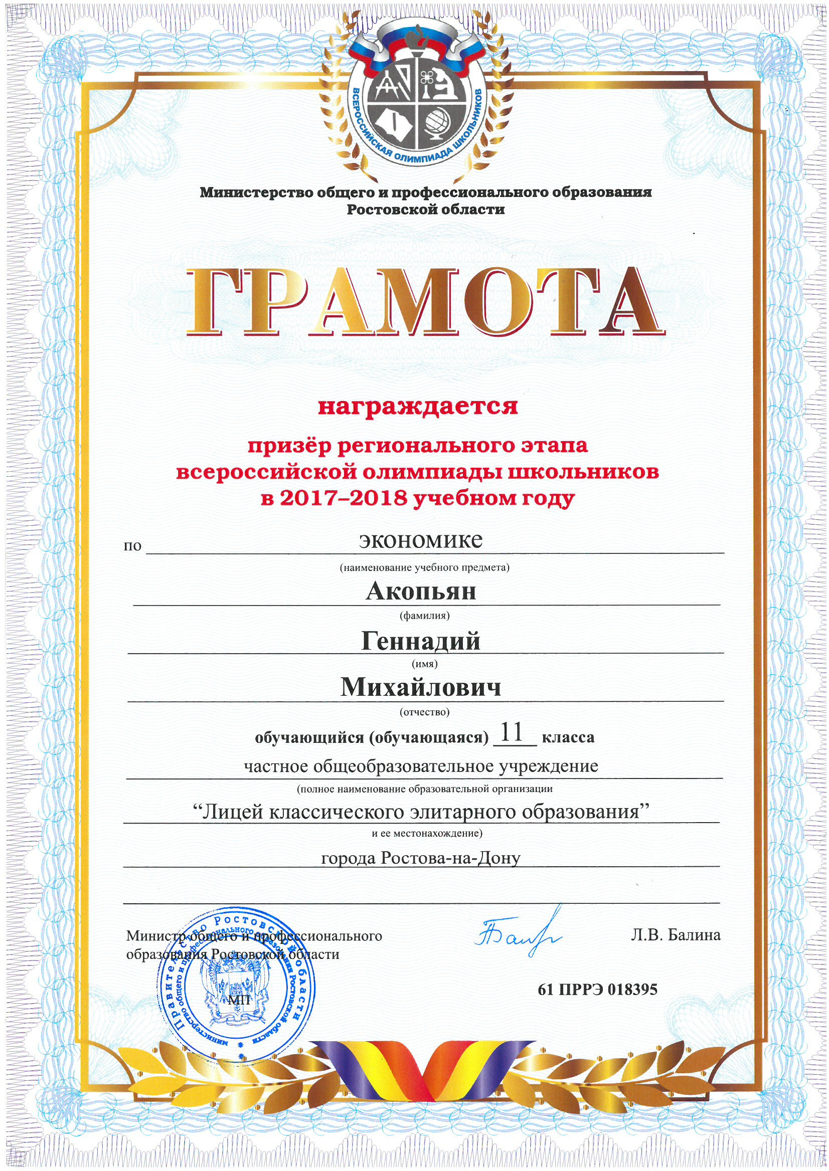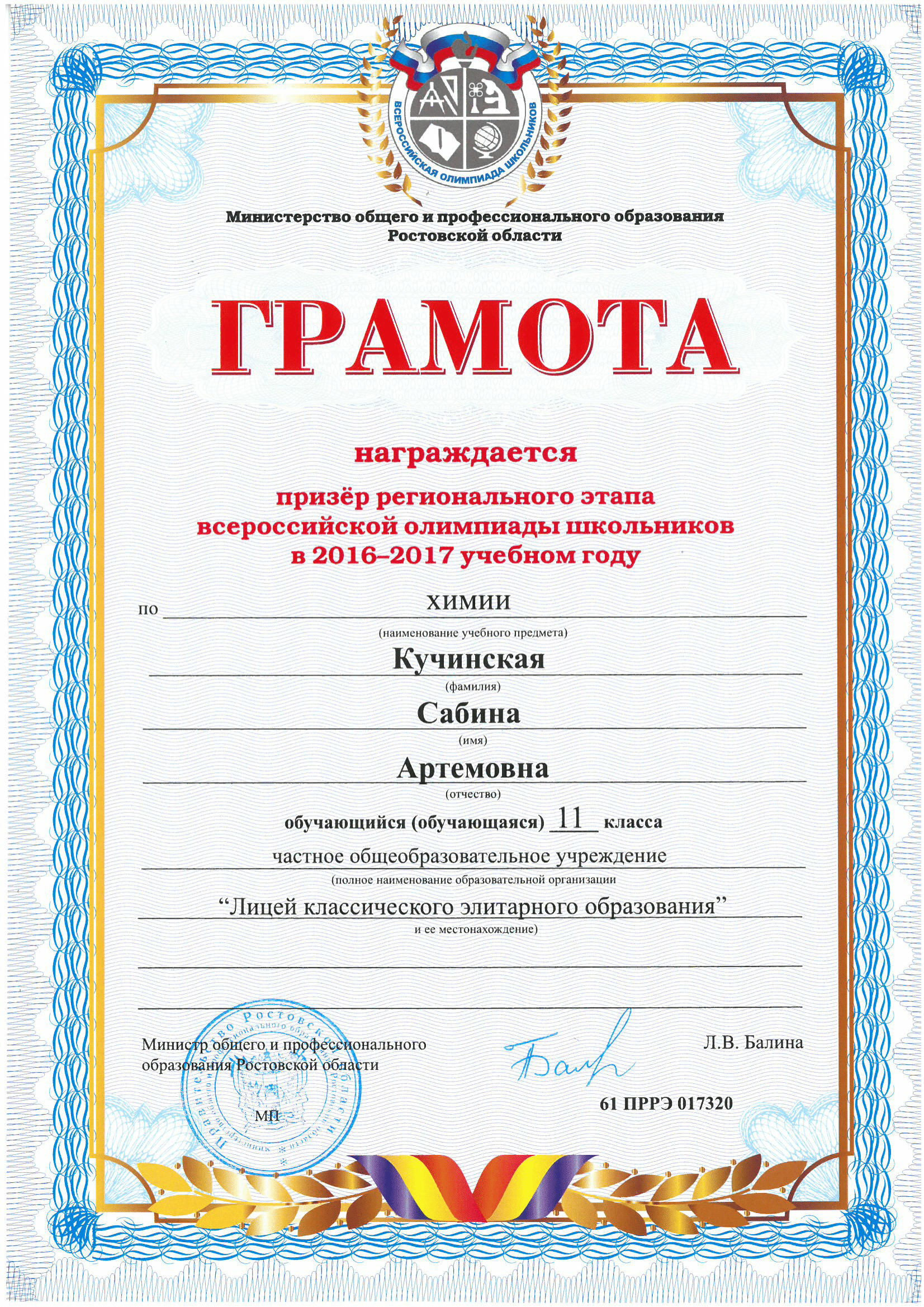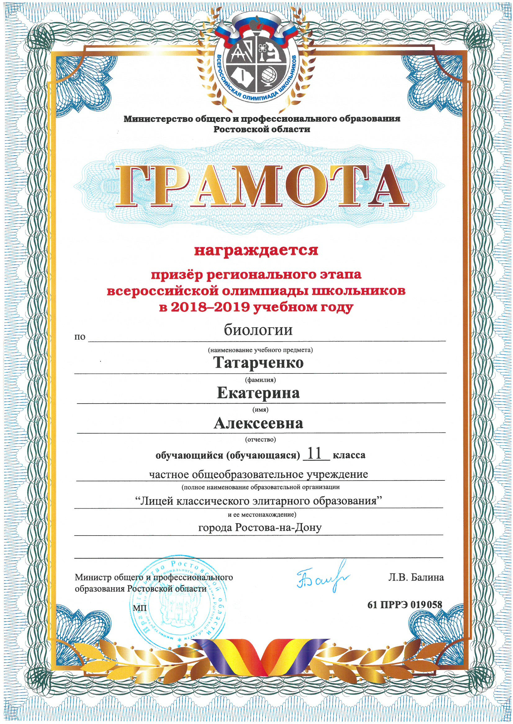 Ученики нашего Лицея ежегодно становятся победителями и призерами вузовских (перечневых), городских, областных, всероссийских и международных олимпиад школьников.