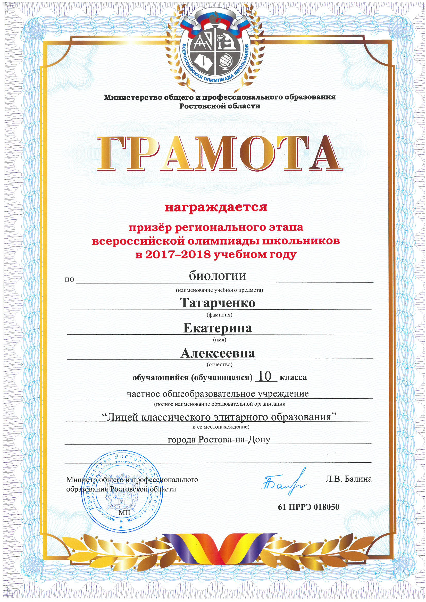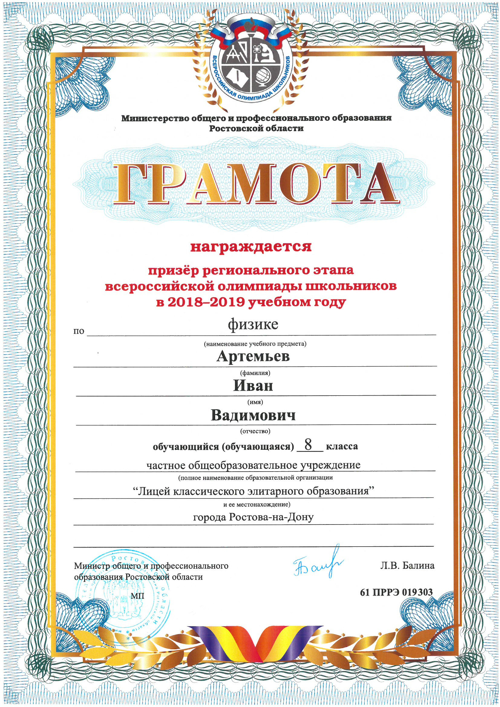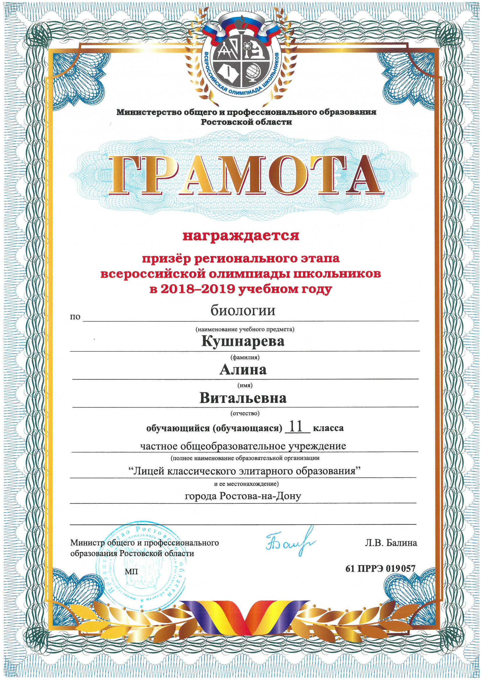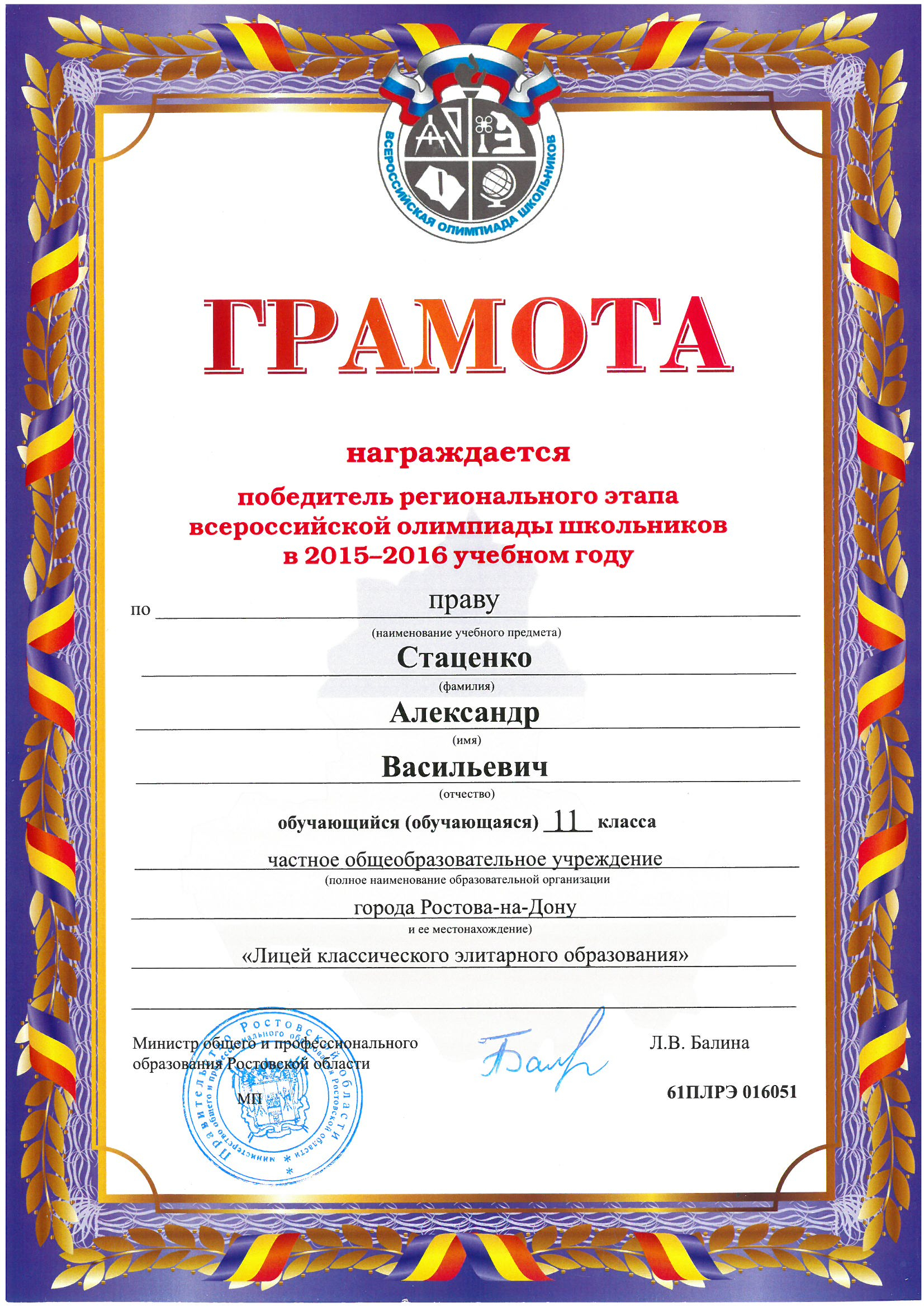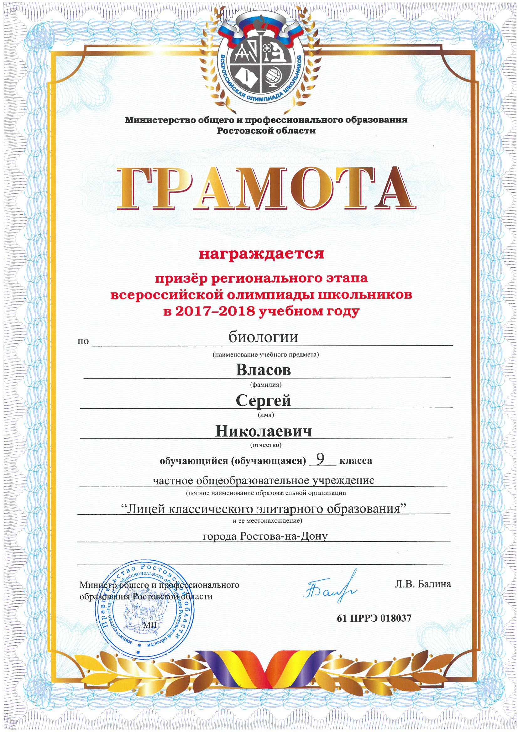 Ученики нашего Лицея ежегодно становятся победителями и призерами вузовских (перечневых), городских, областных, всероссийских и международных олимпиад школьников.