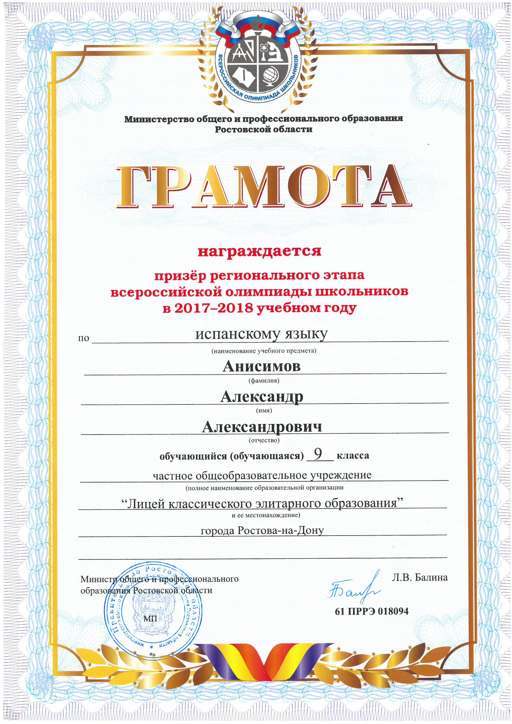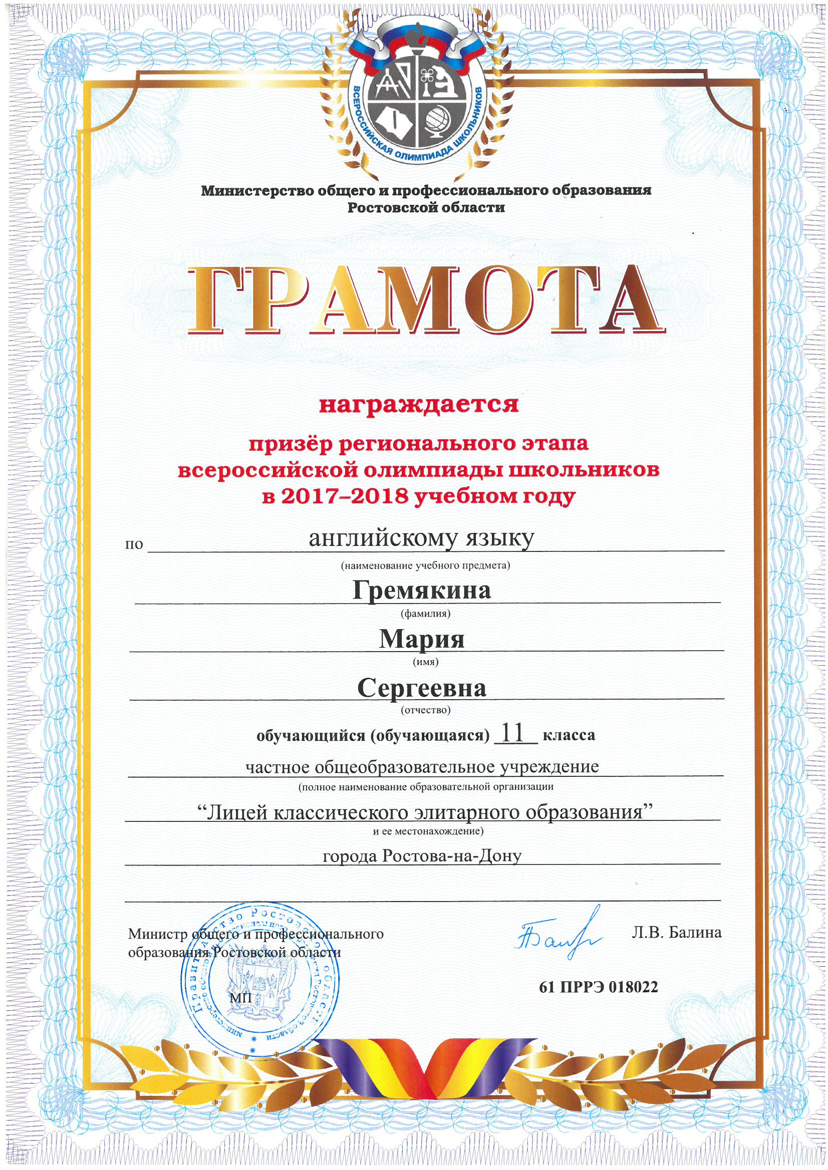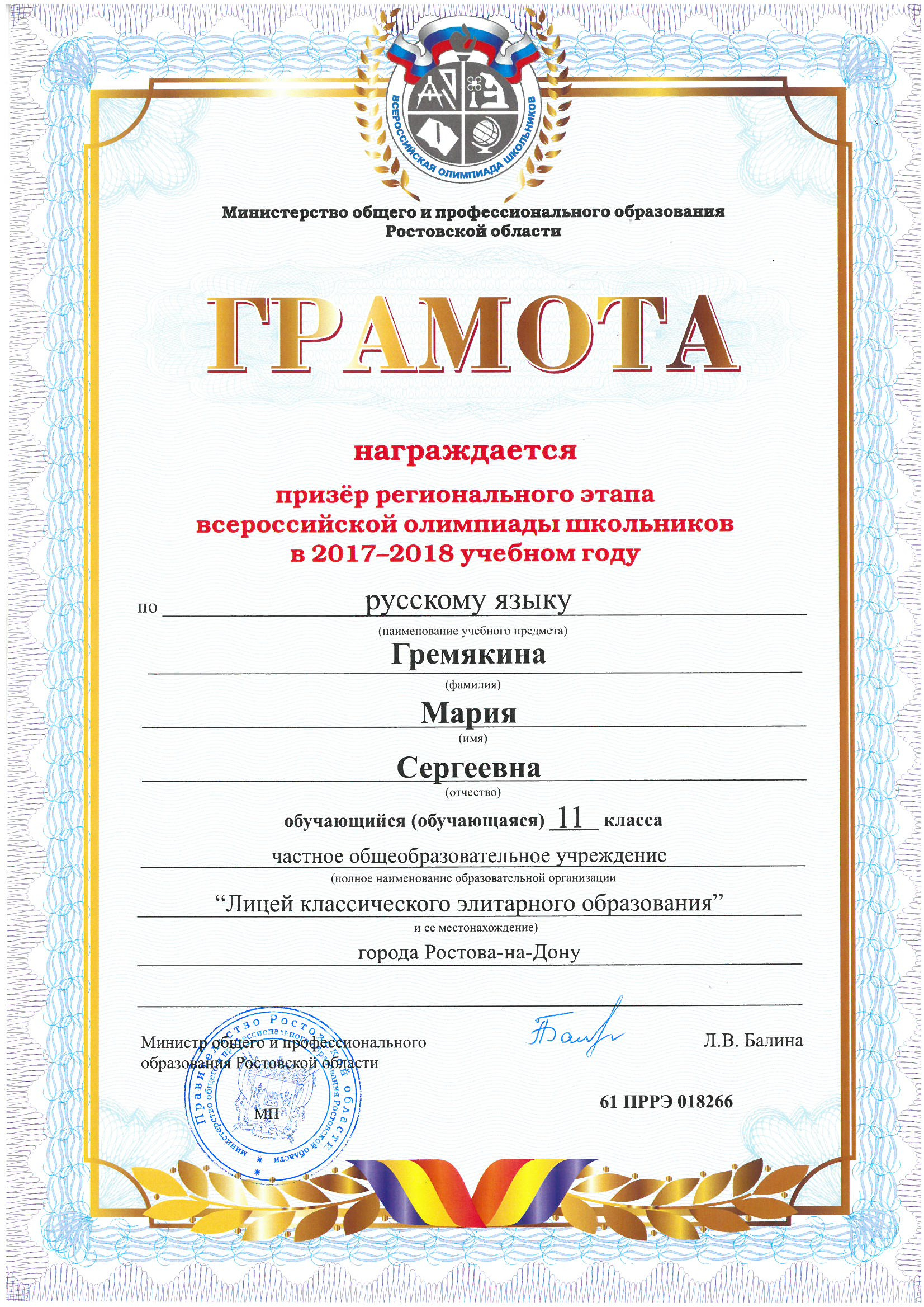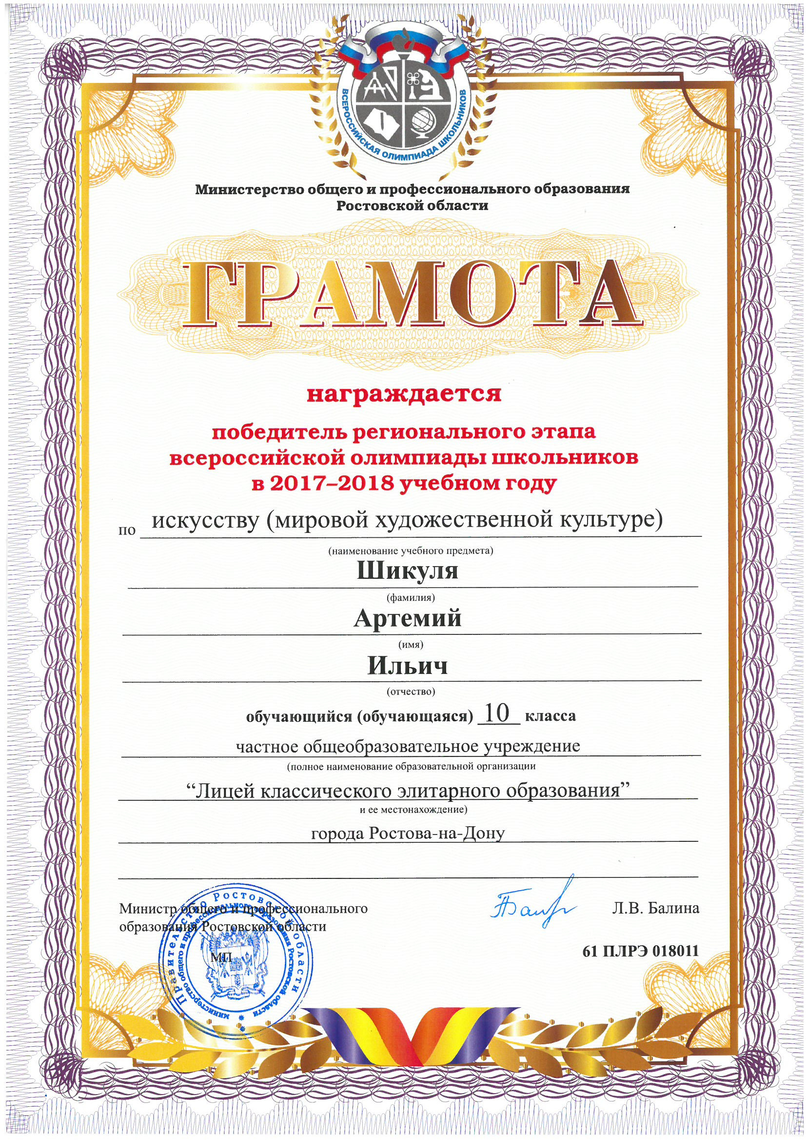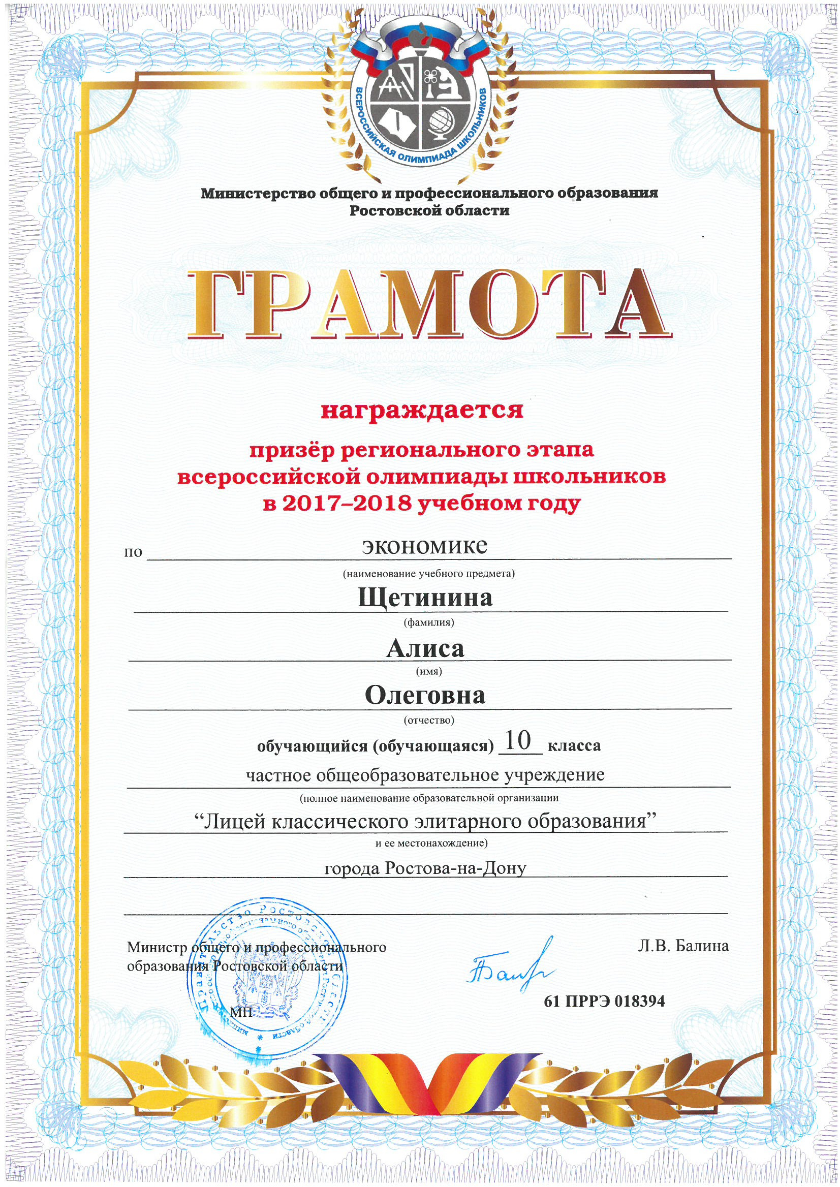Ученики нашего Лицея ежегодно становятся победителями и призерами вузовских (перечневых), городских, областных, всероссийских и международных олимпиад школьников.