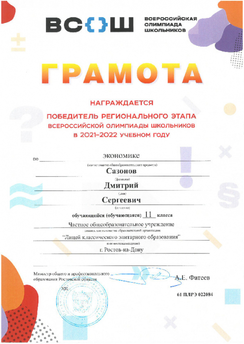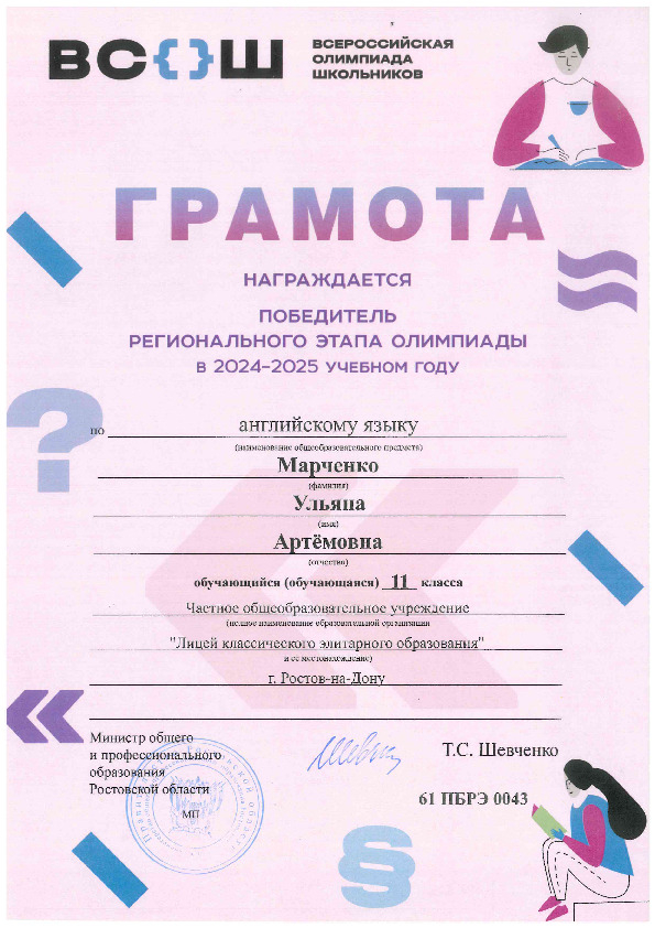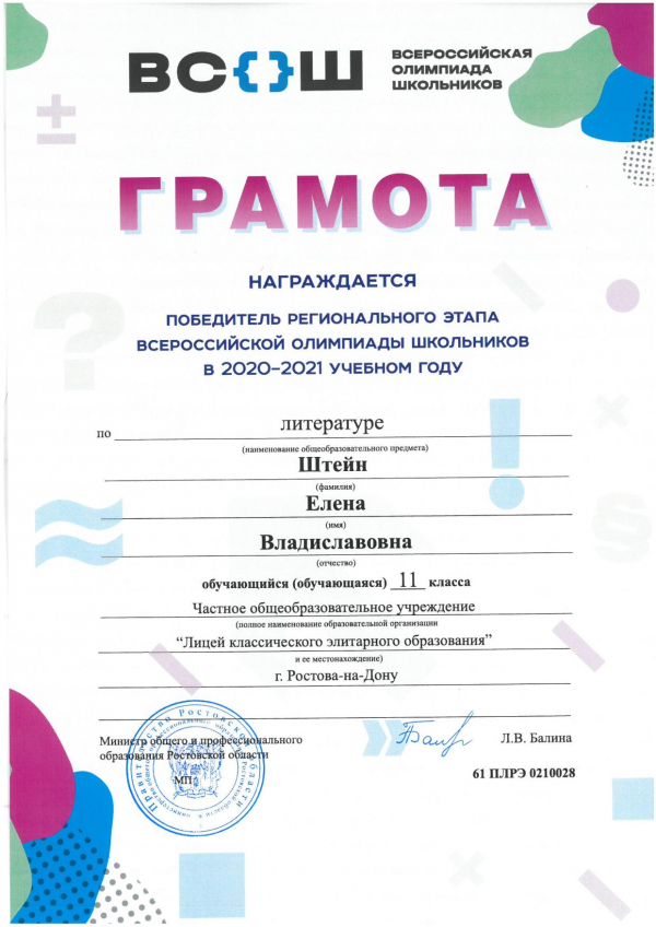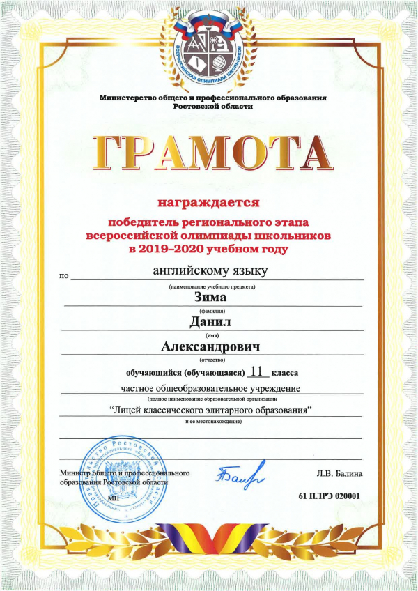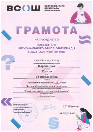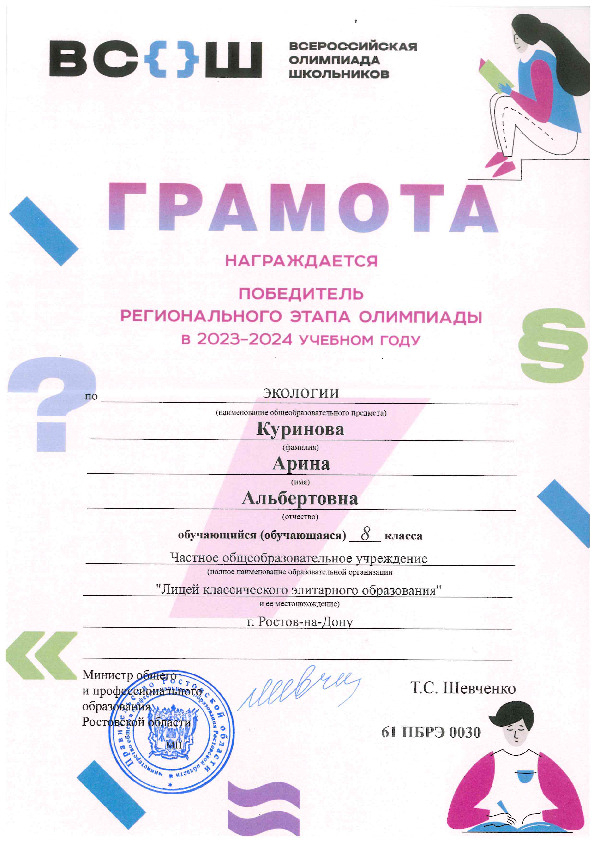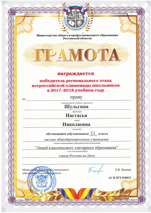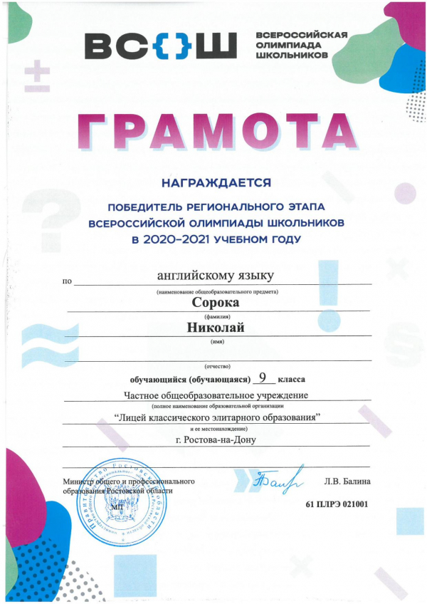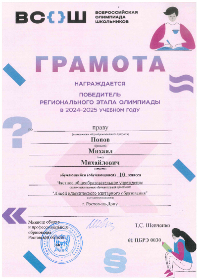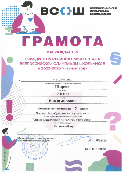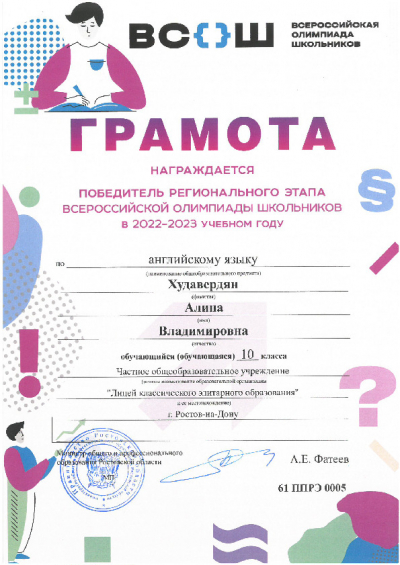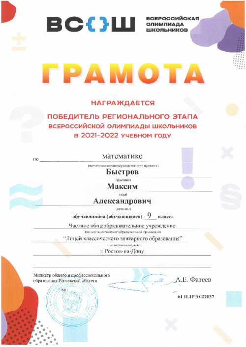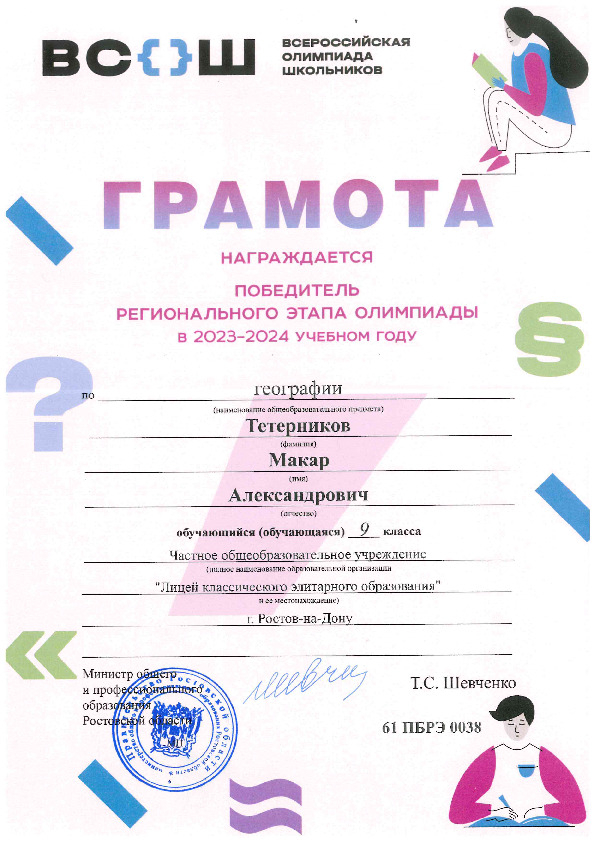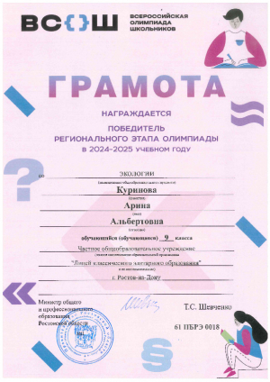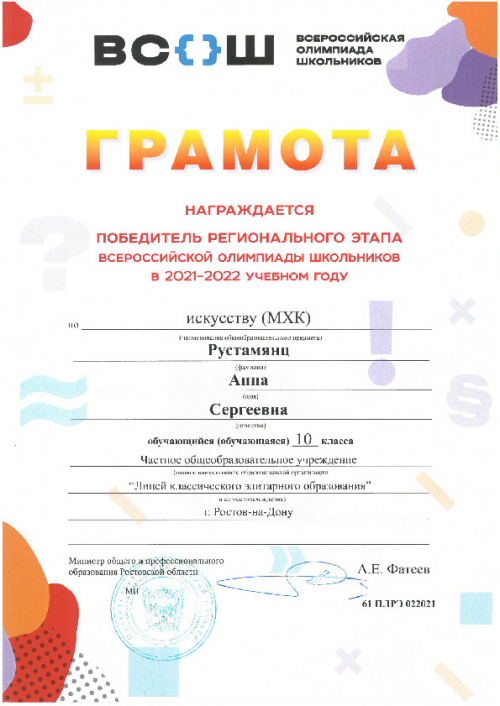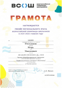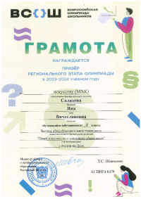 Победители Регионального этапа Всероссийской олимпиады школьников