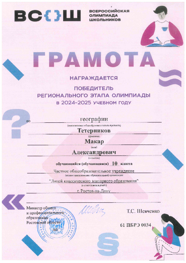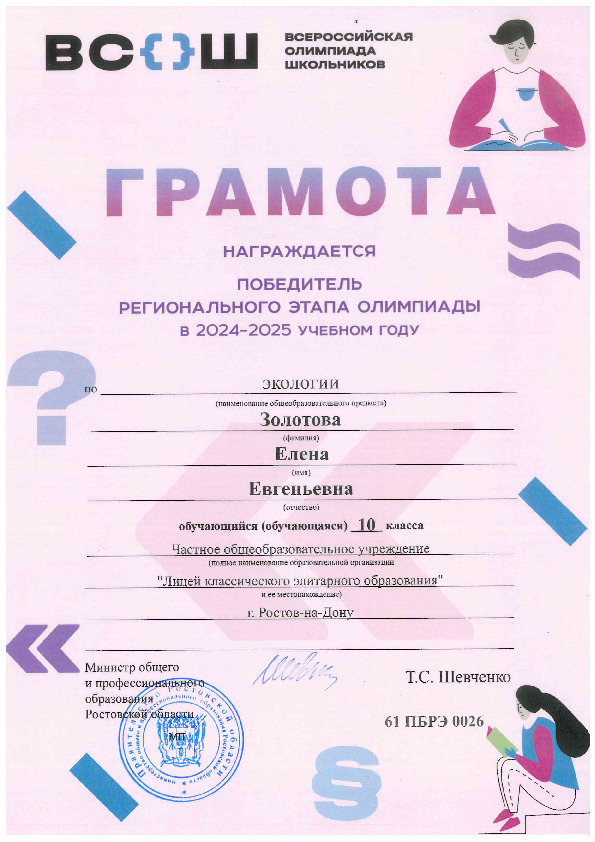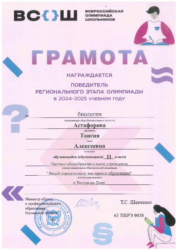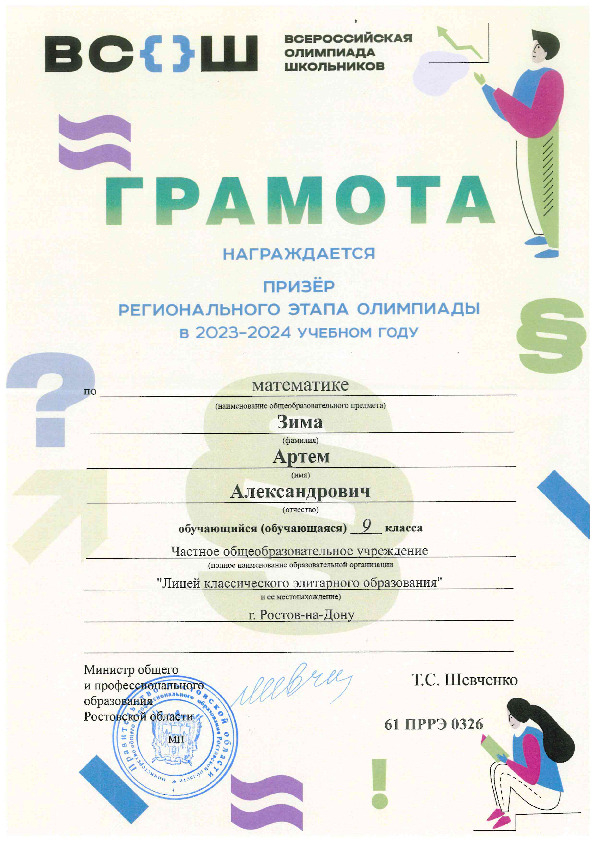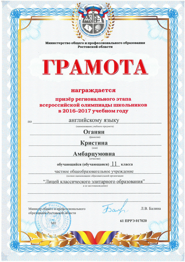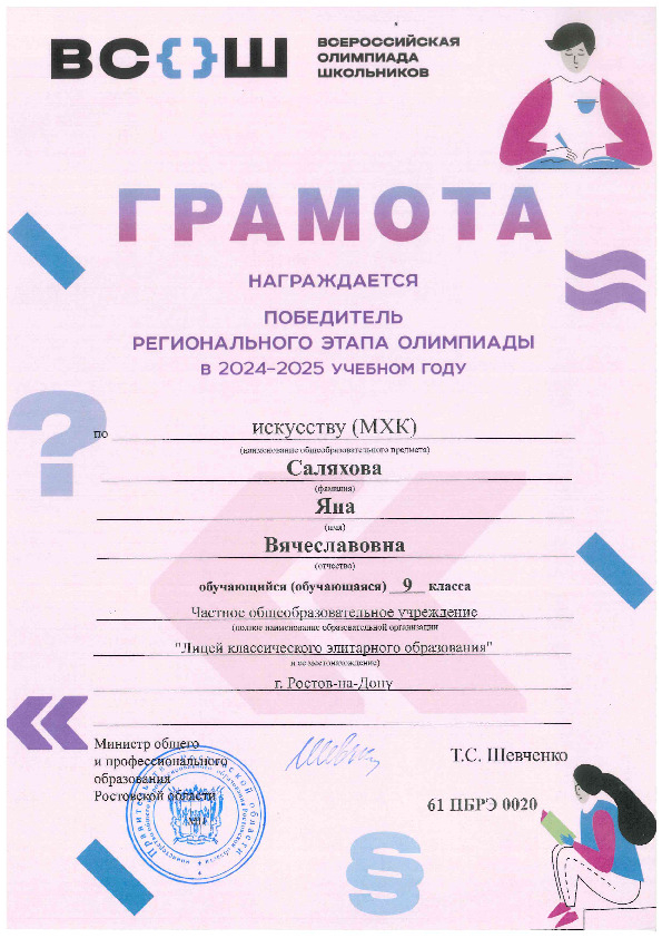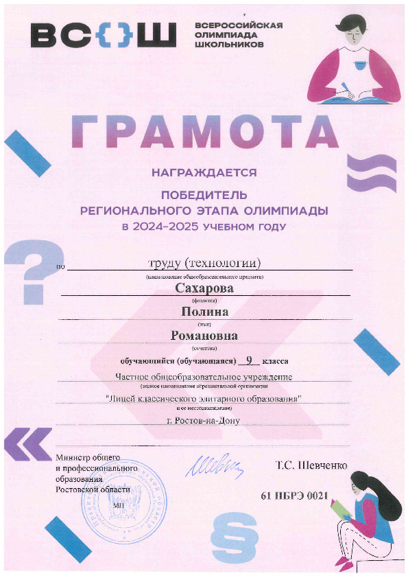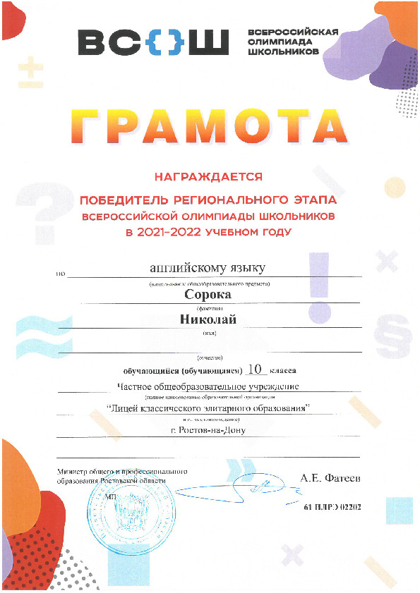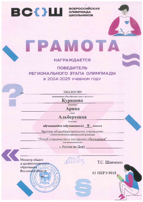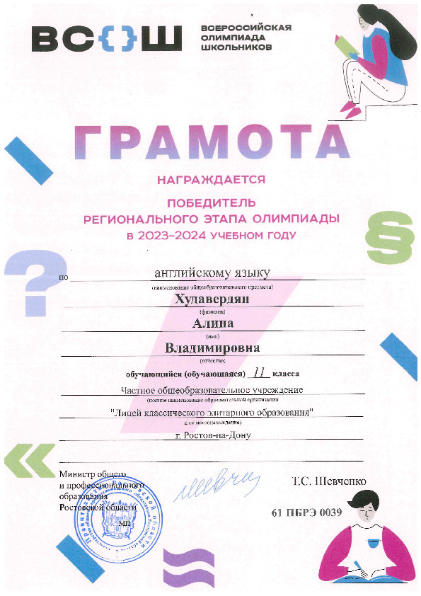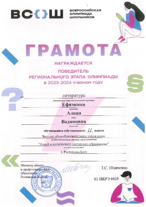 Победители Регионального этапа Всероссийской олимпиады школьников