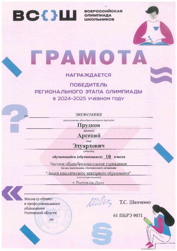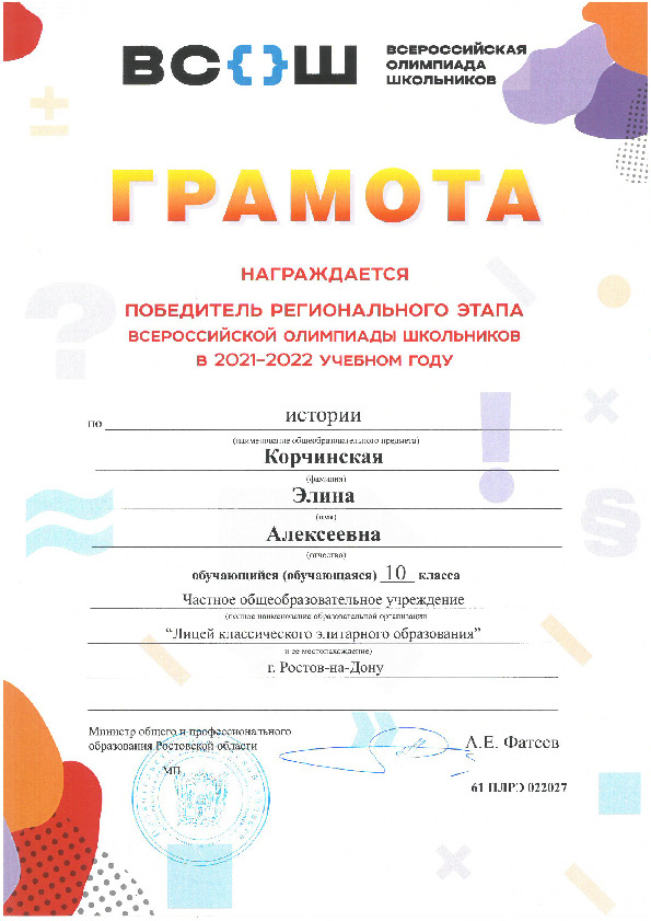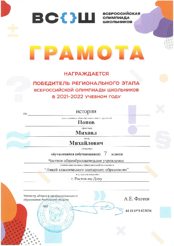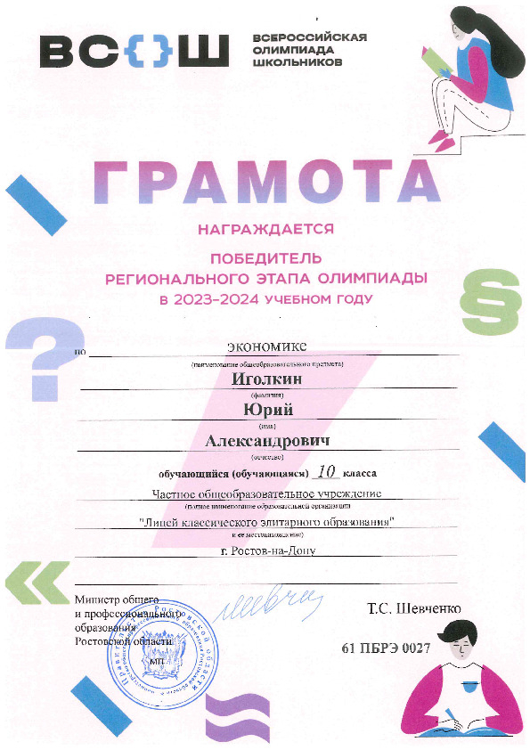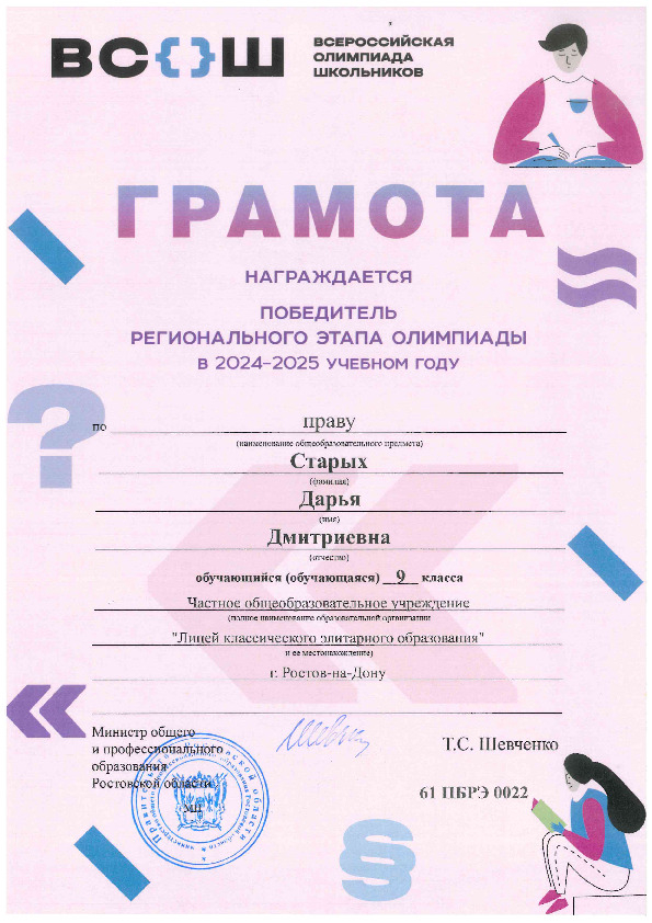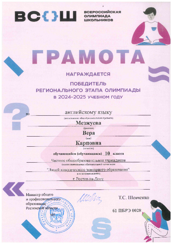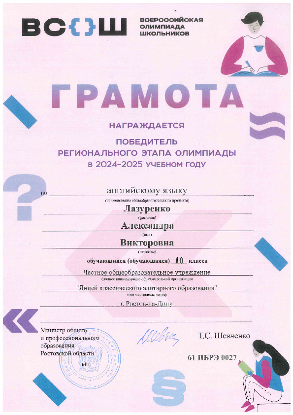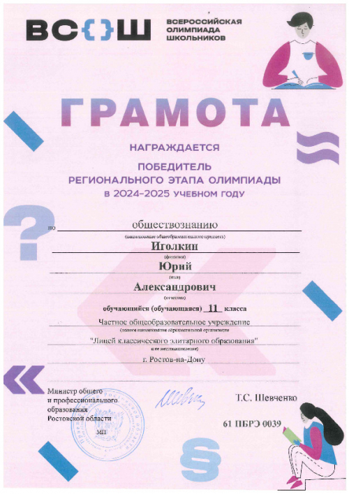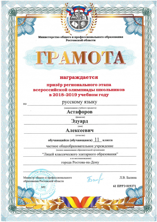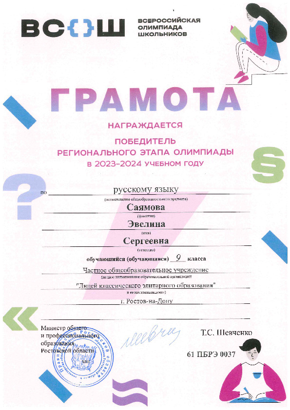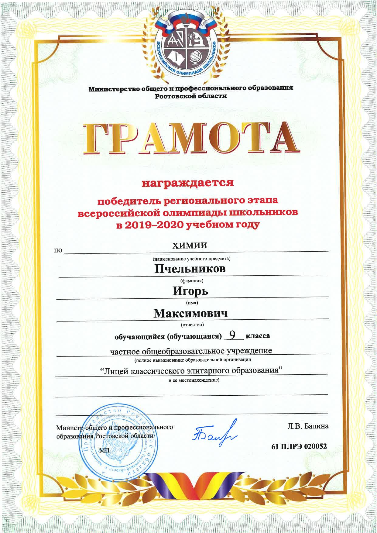Победители Регионального этапа Всероссийской олимпиады школьников