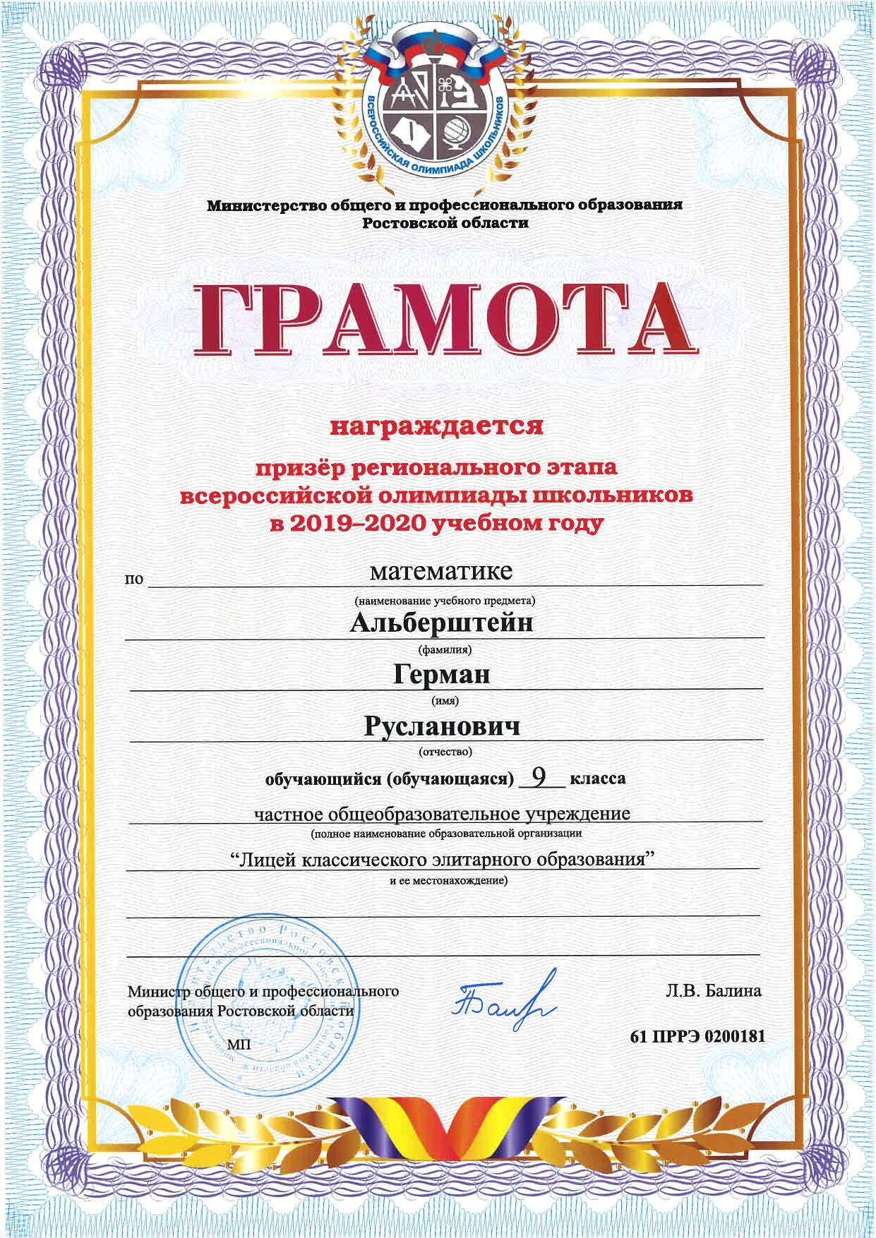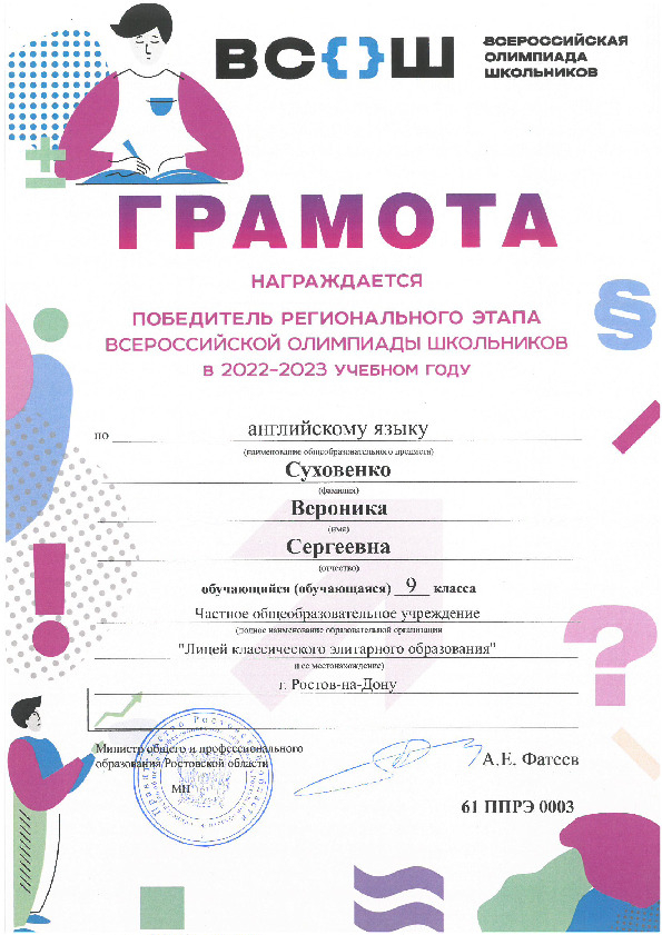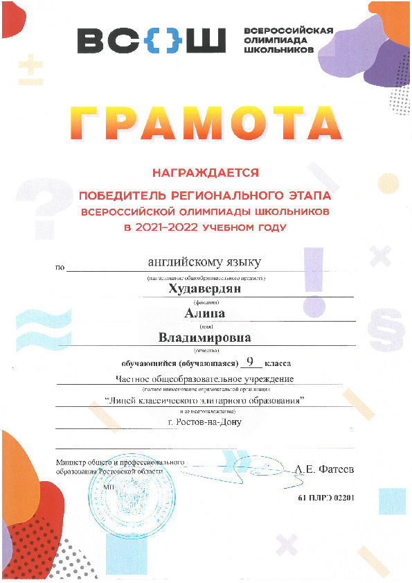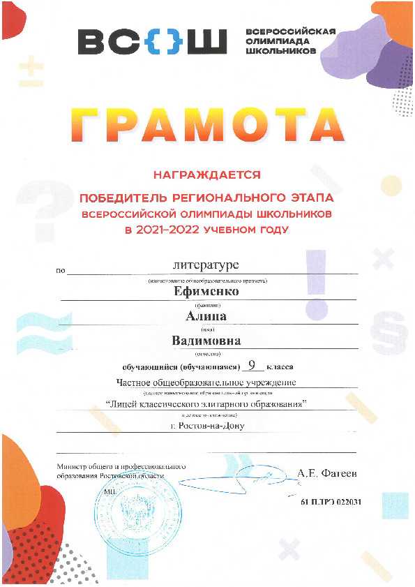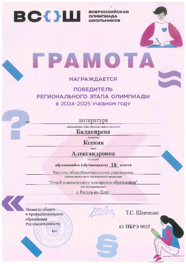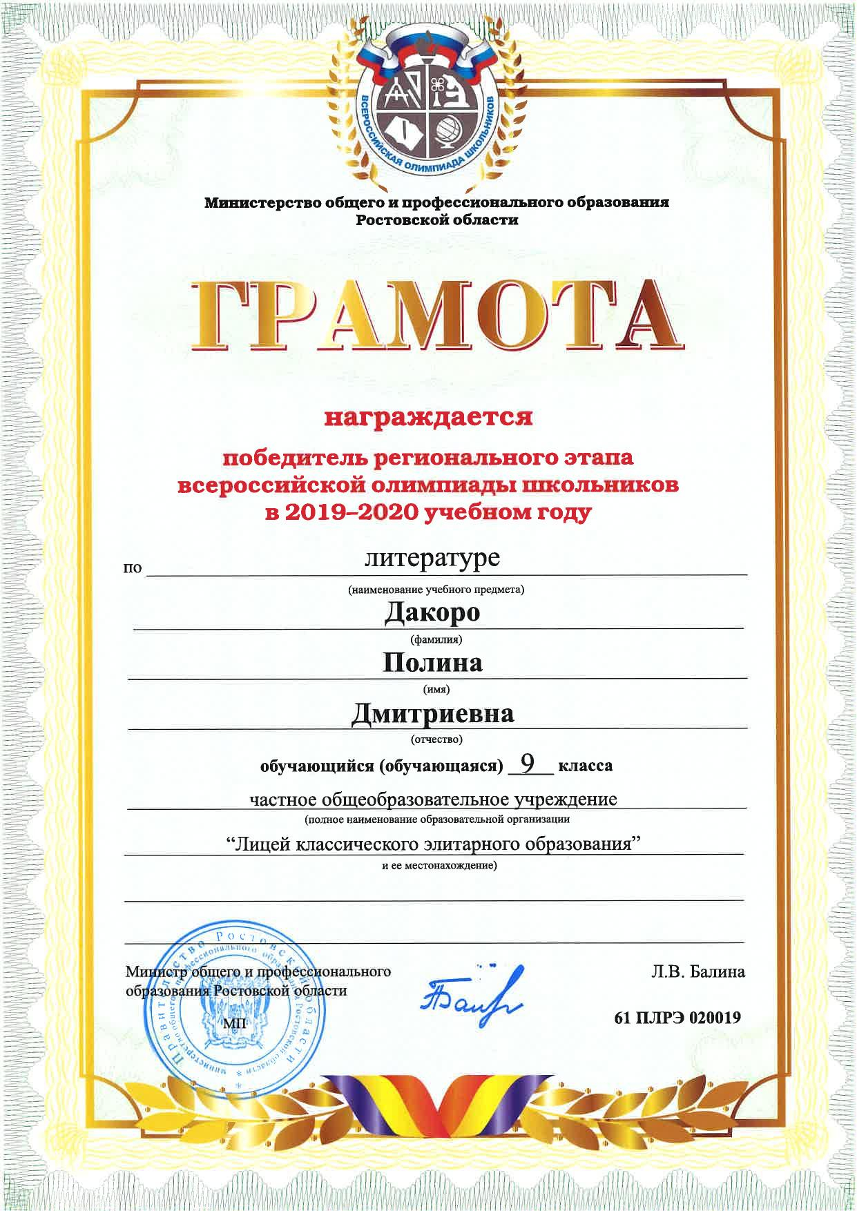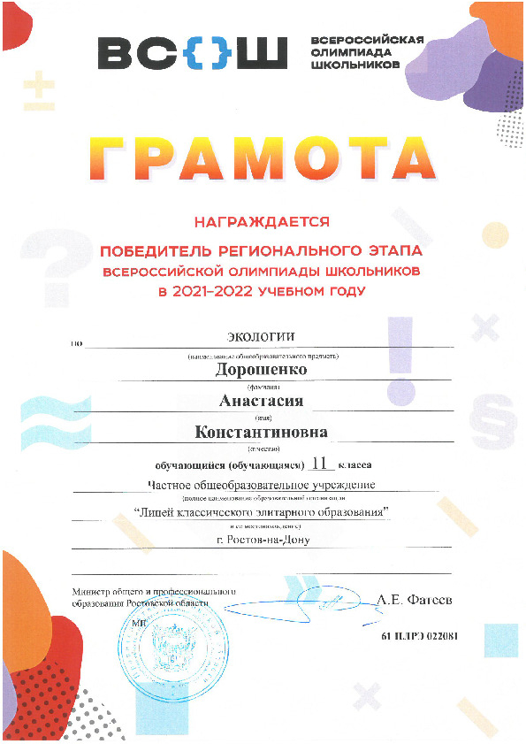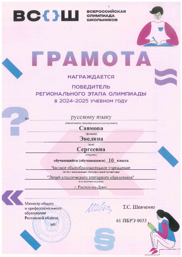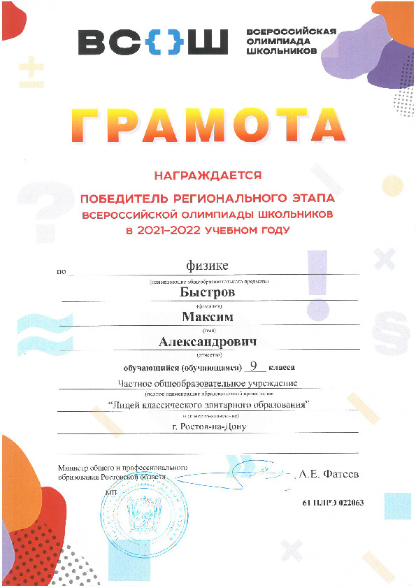 Победители Регионального этапа Всероссийской олимпиады школьников