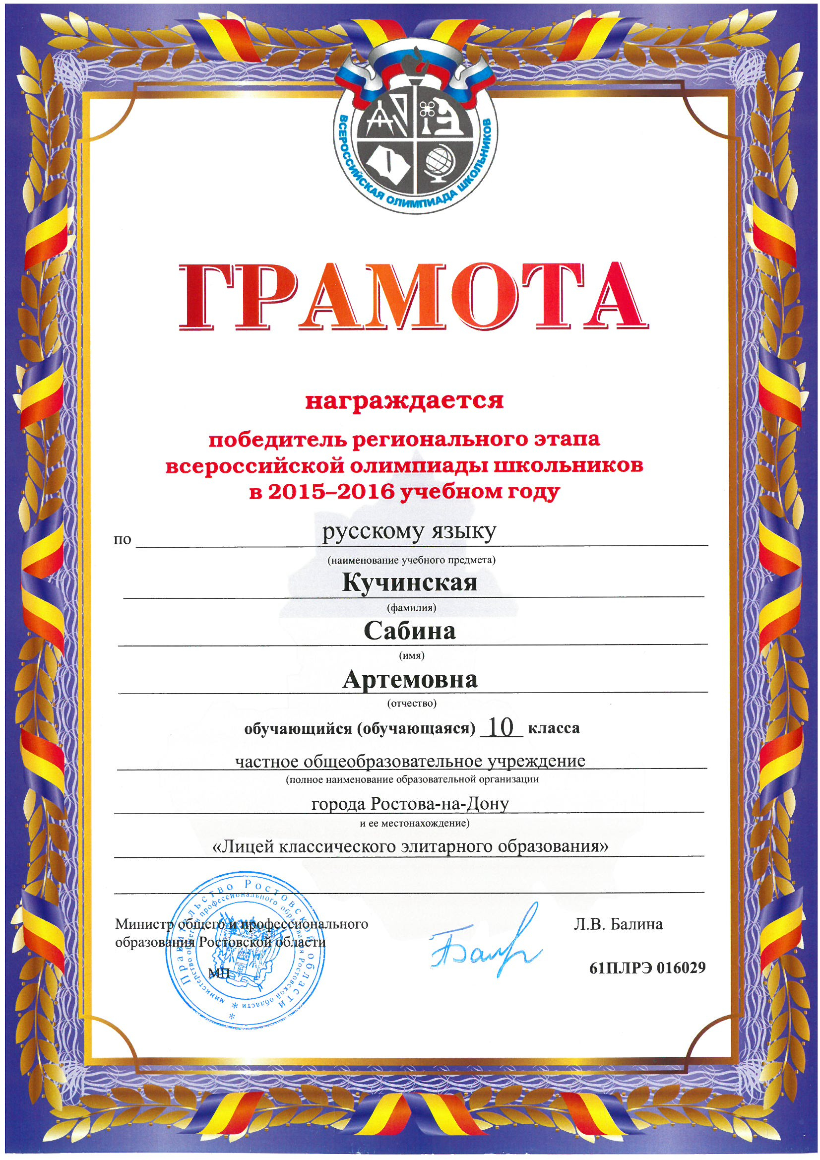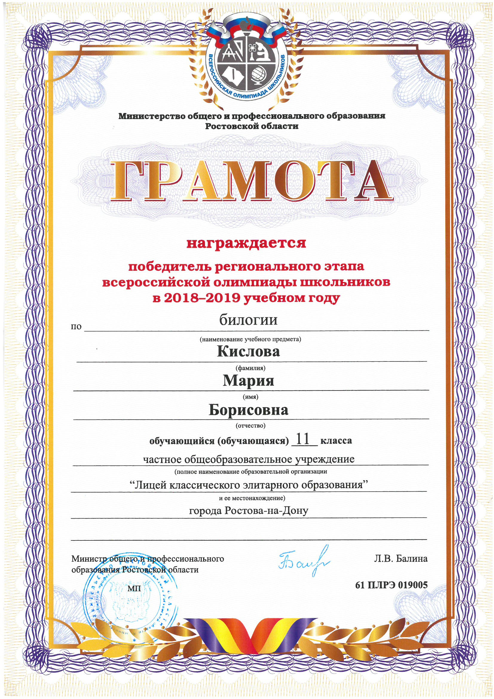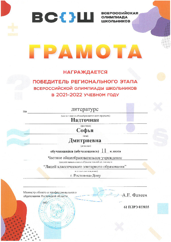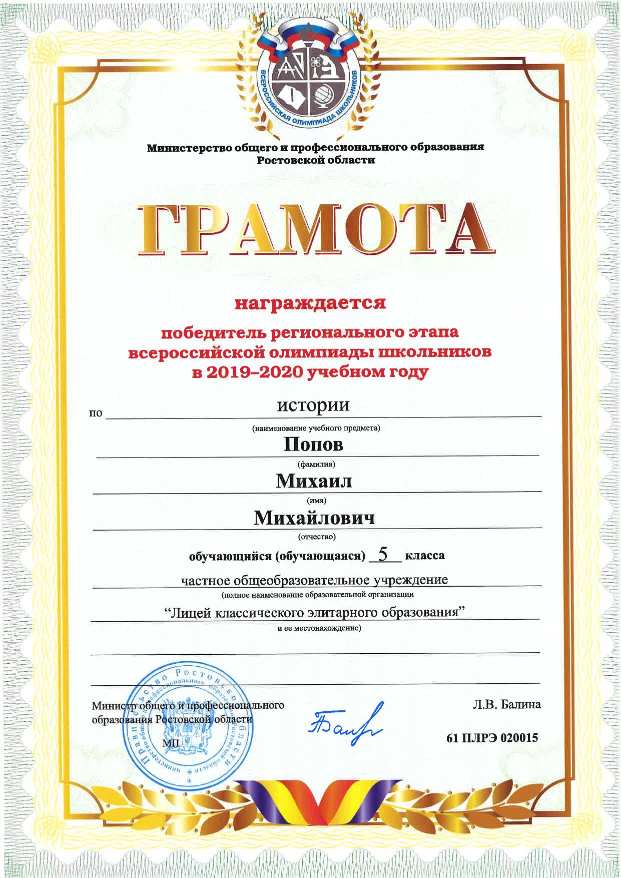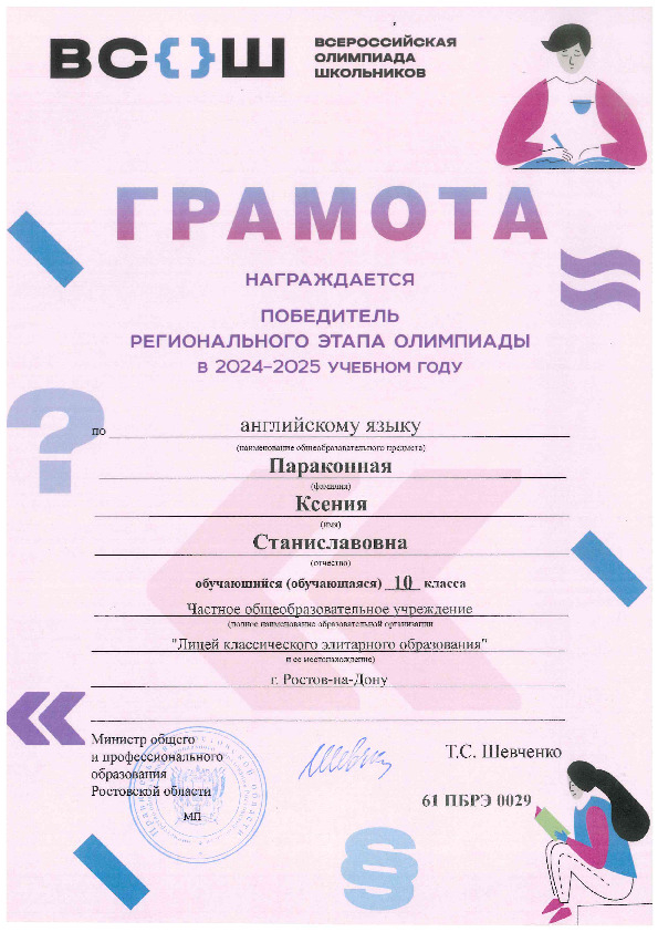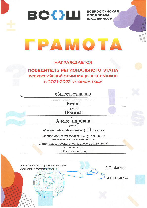Победители Регионального этапа Всероссийской олимпиады школьников