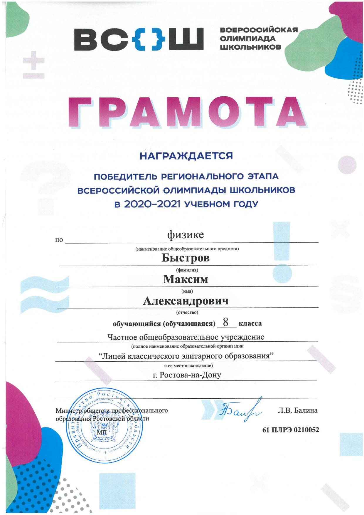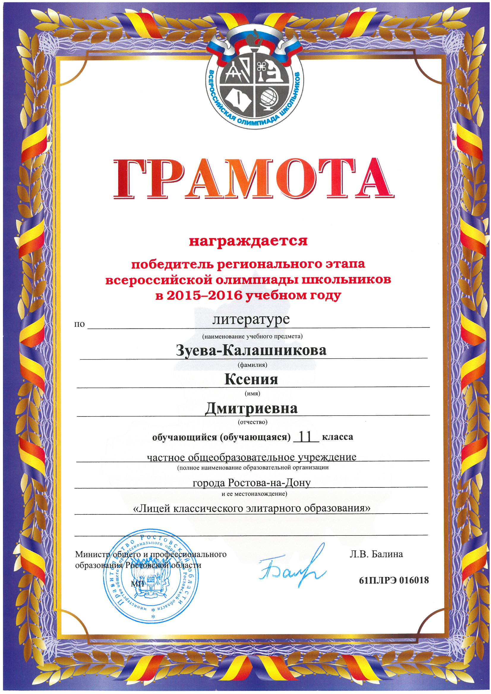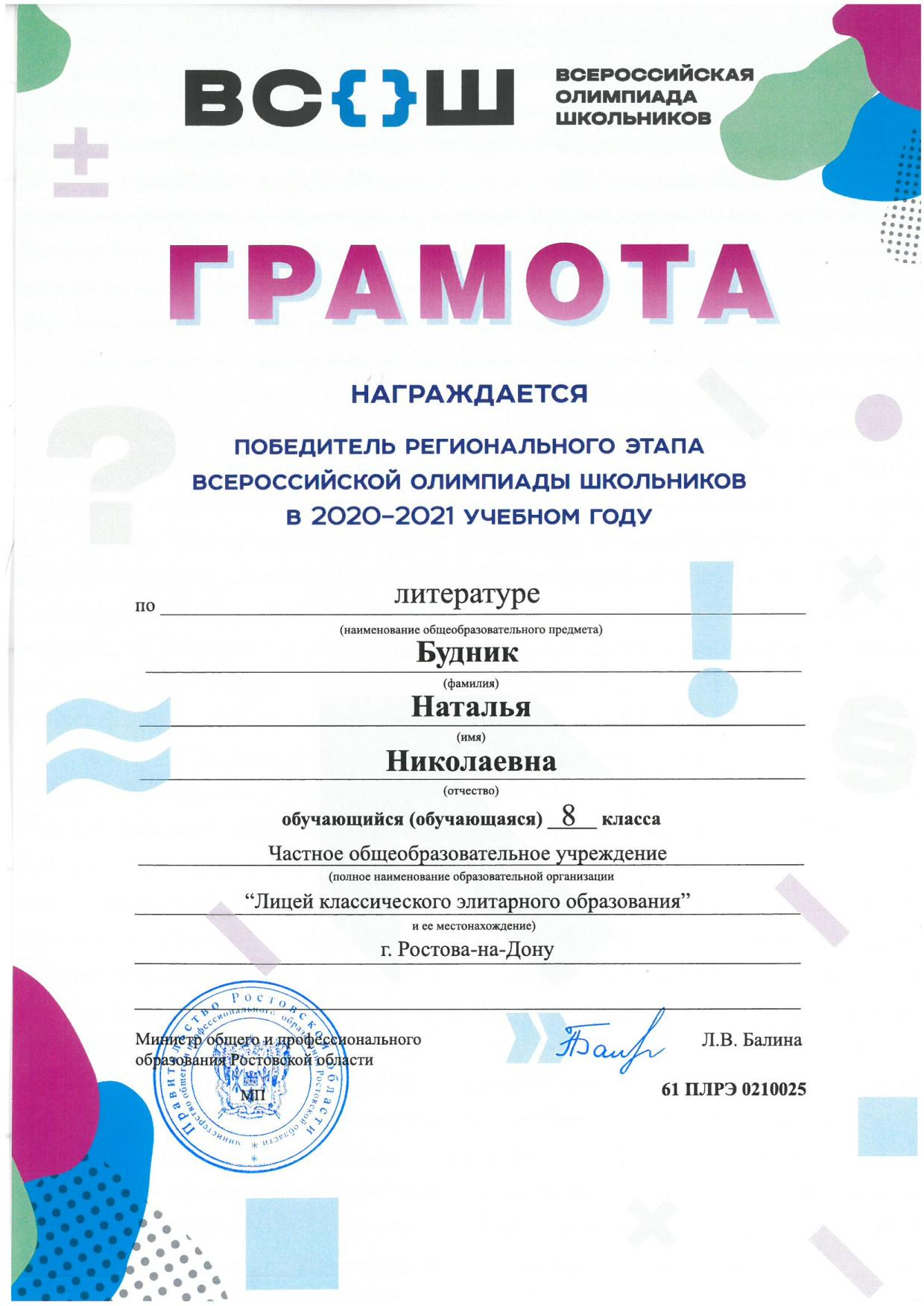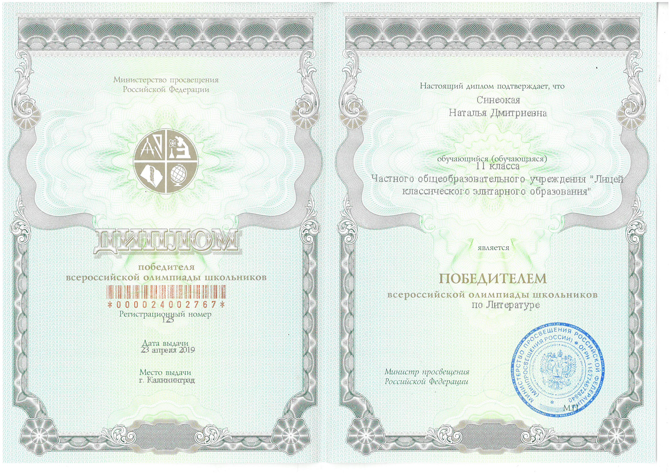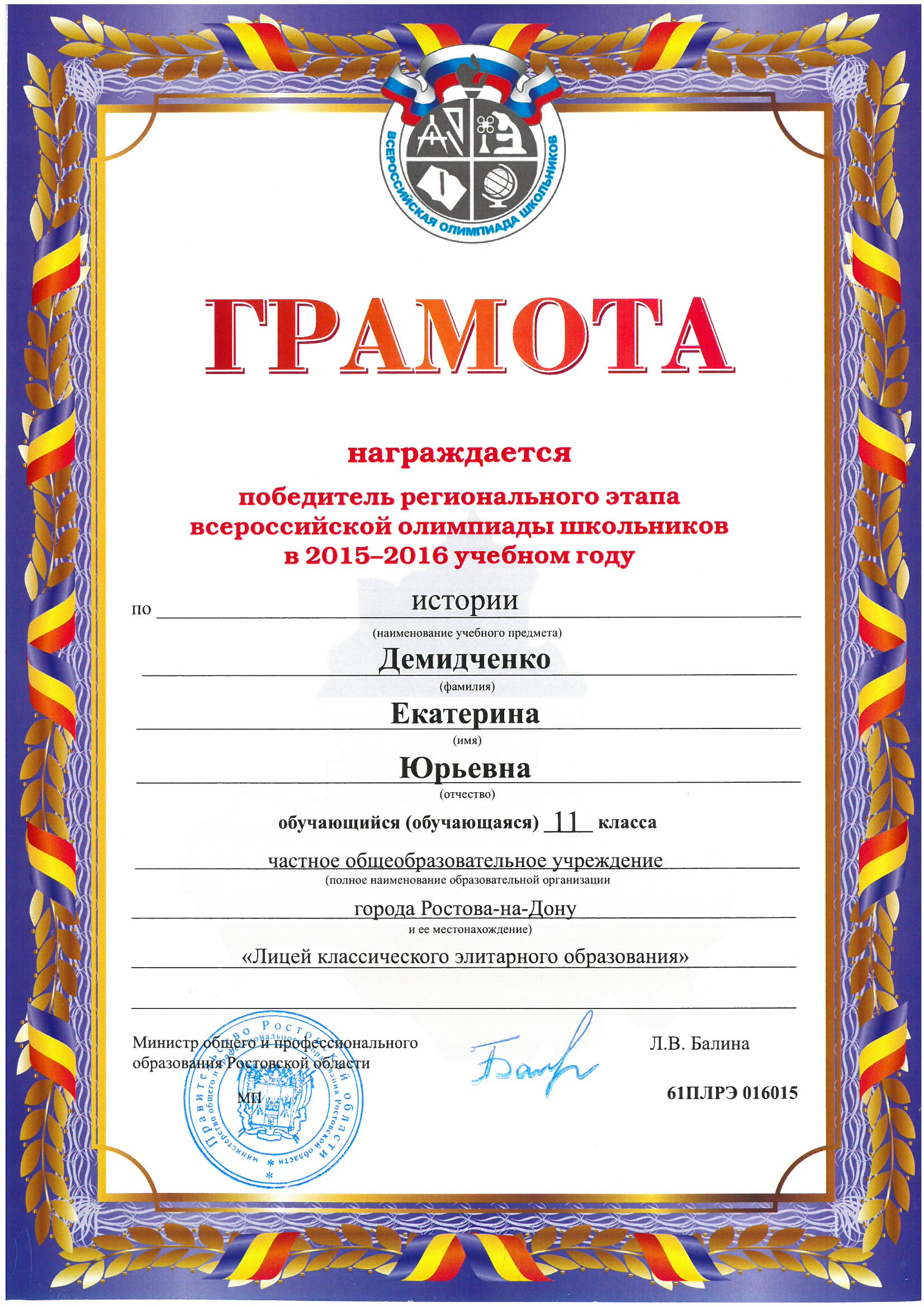 Победители Регионального этапа Всероссийской олимпиады школьников