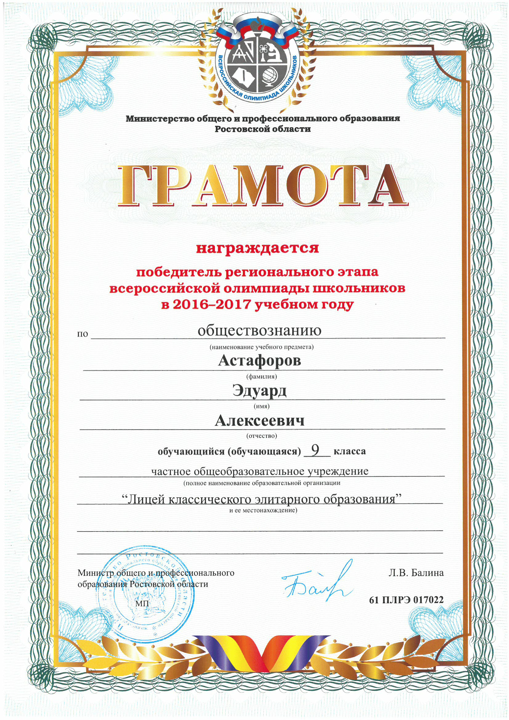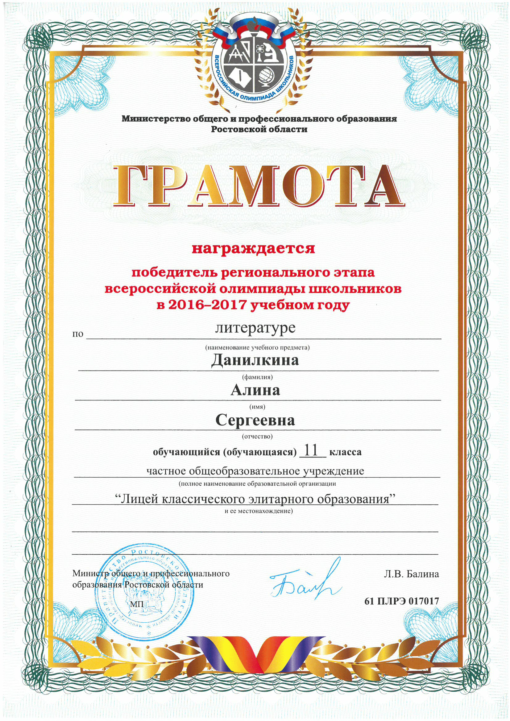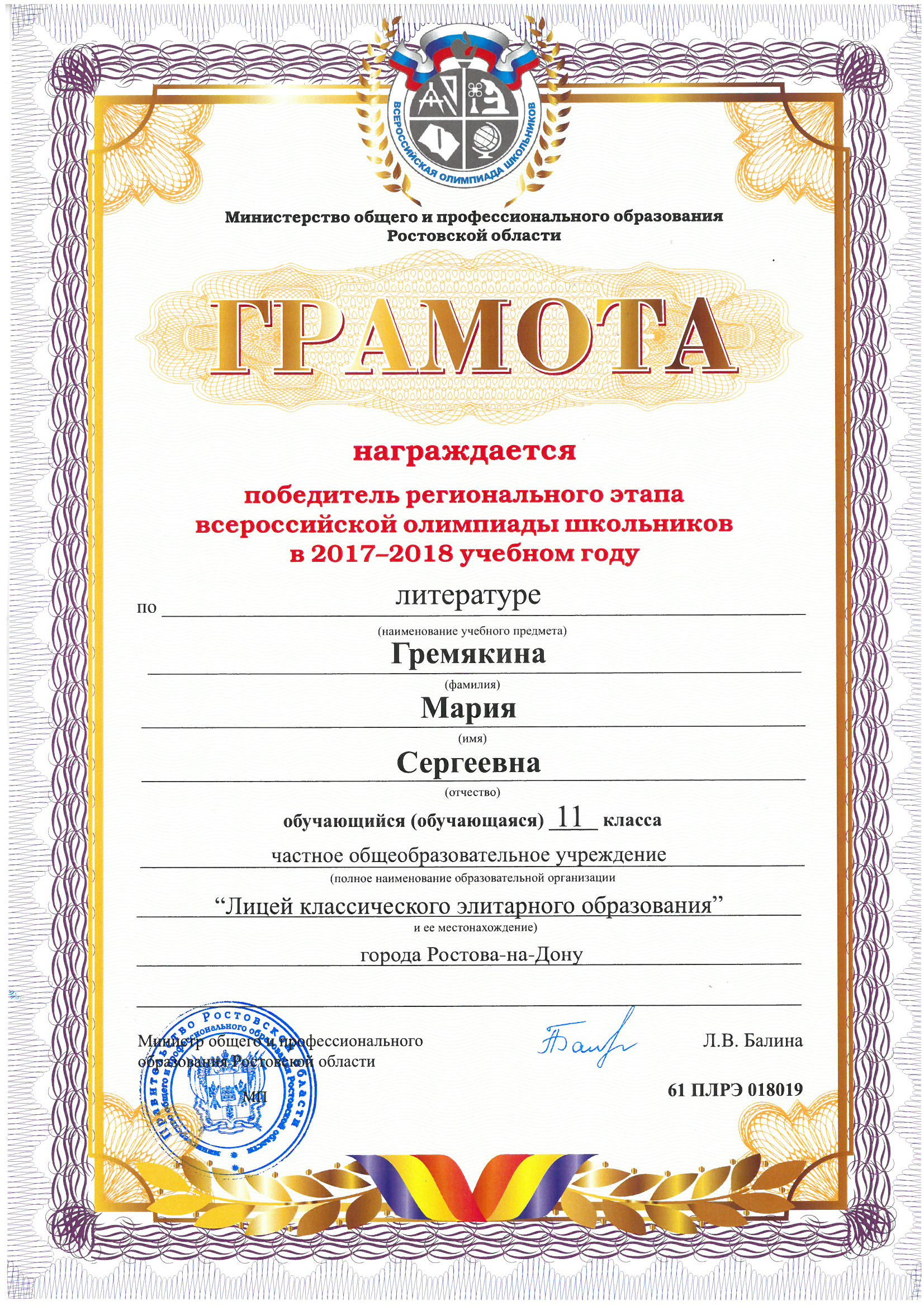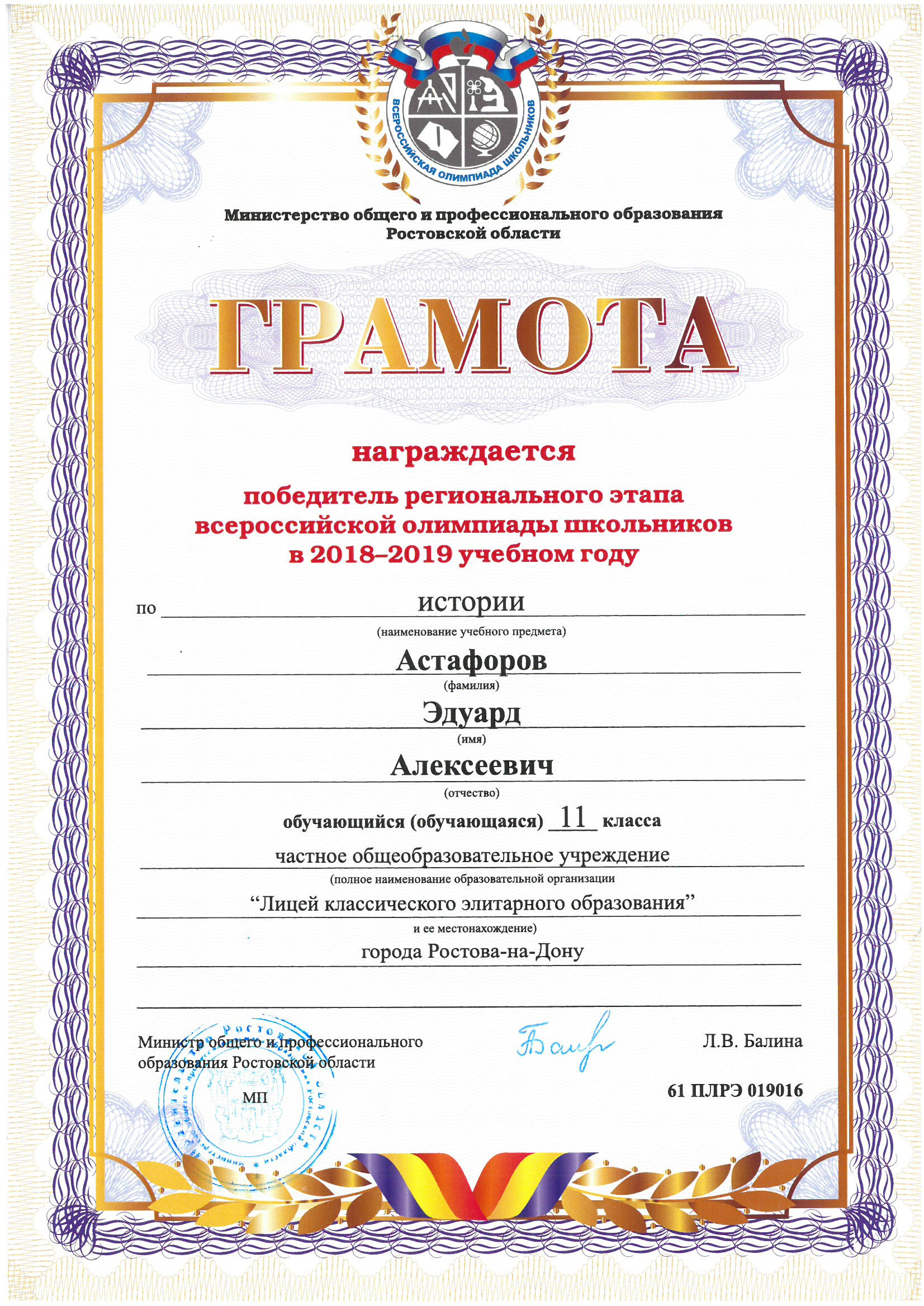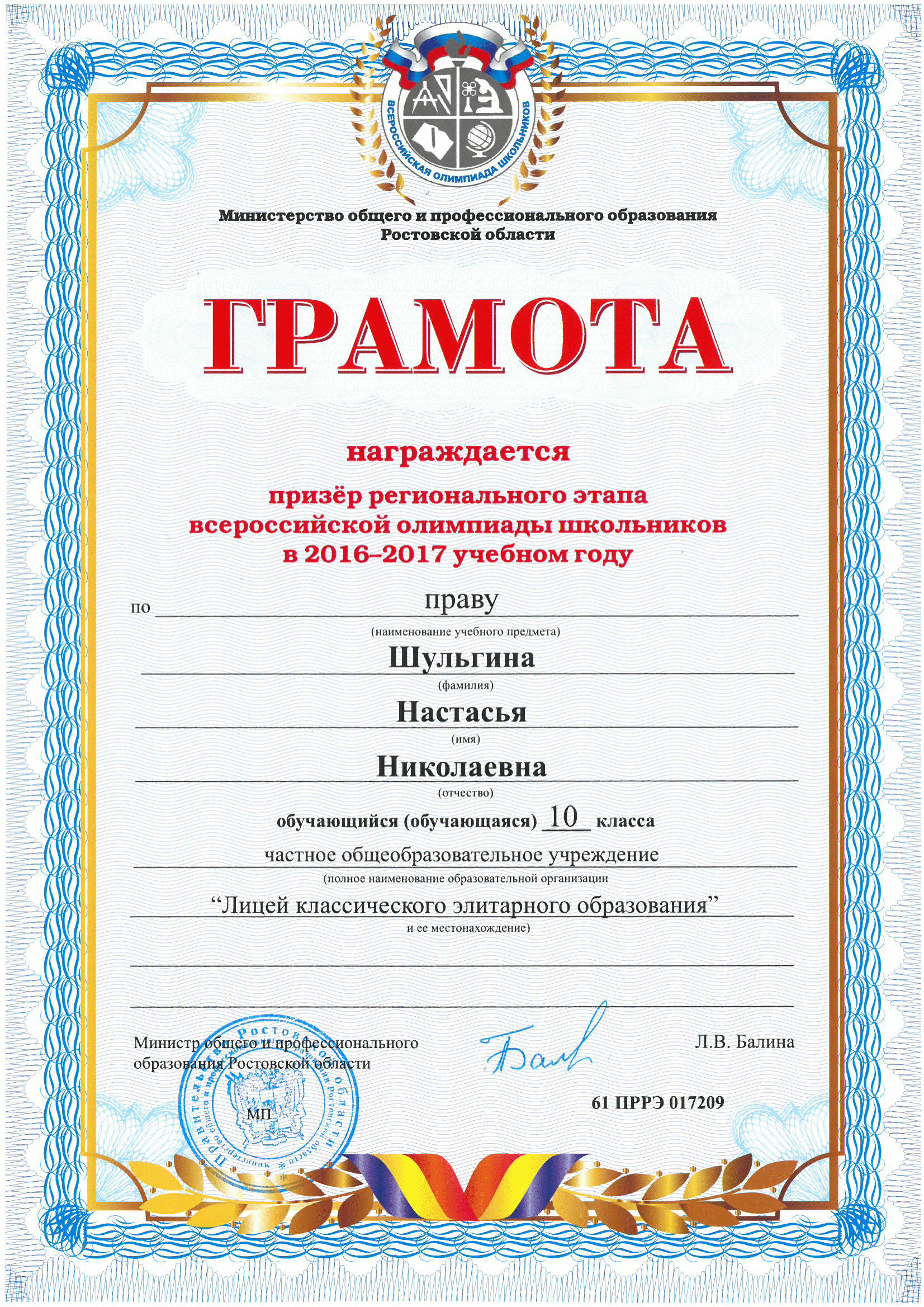Победители Регионального этапа Всероссийской олимпиады школьников