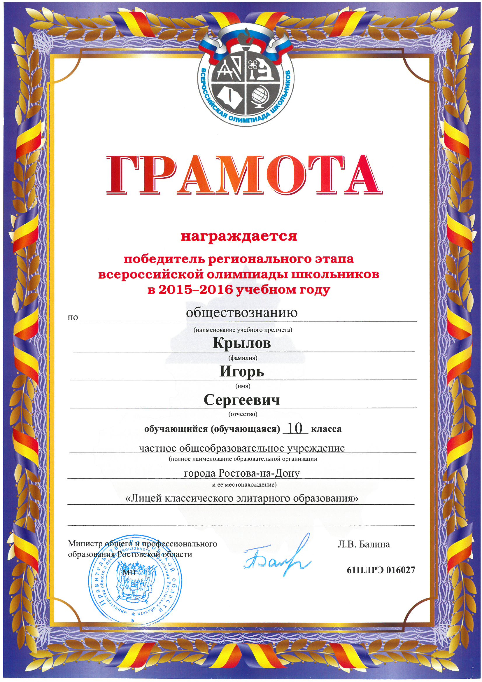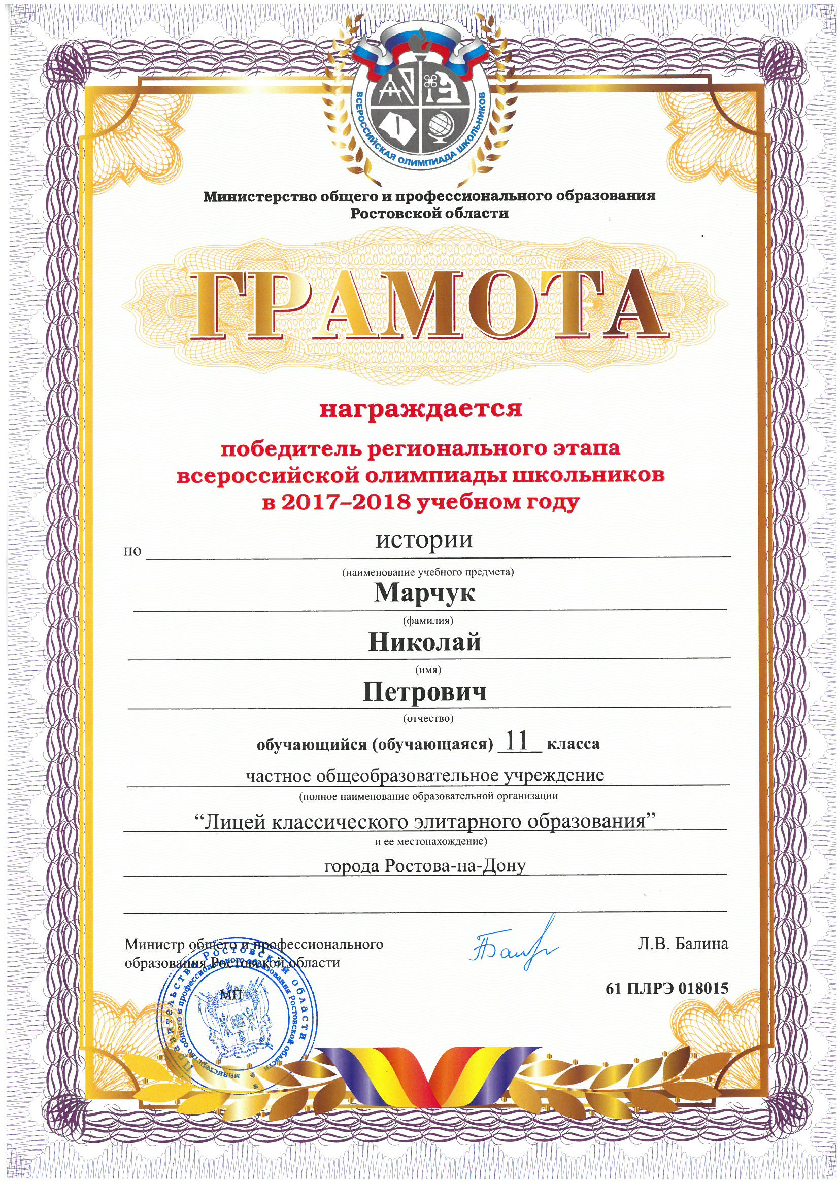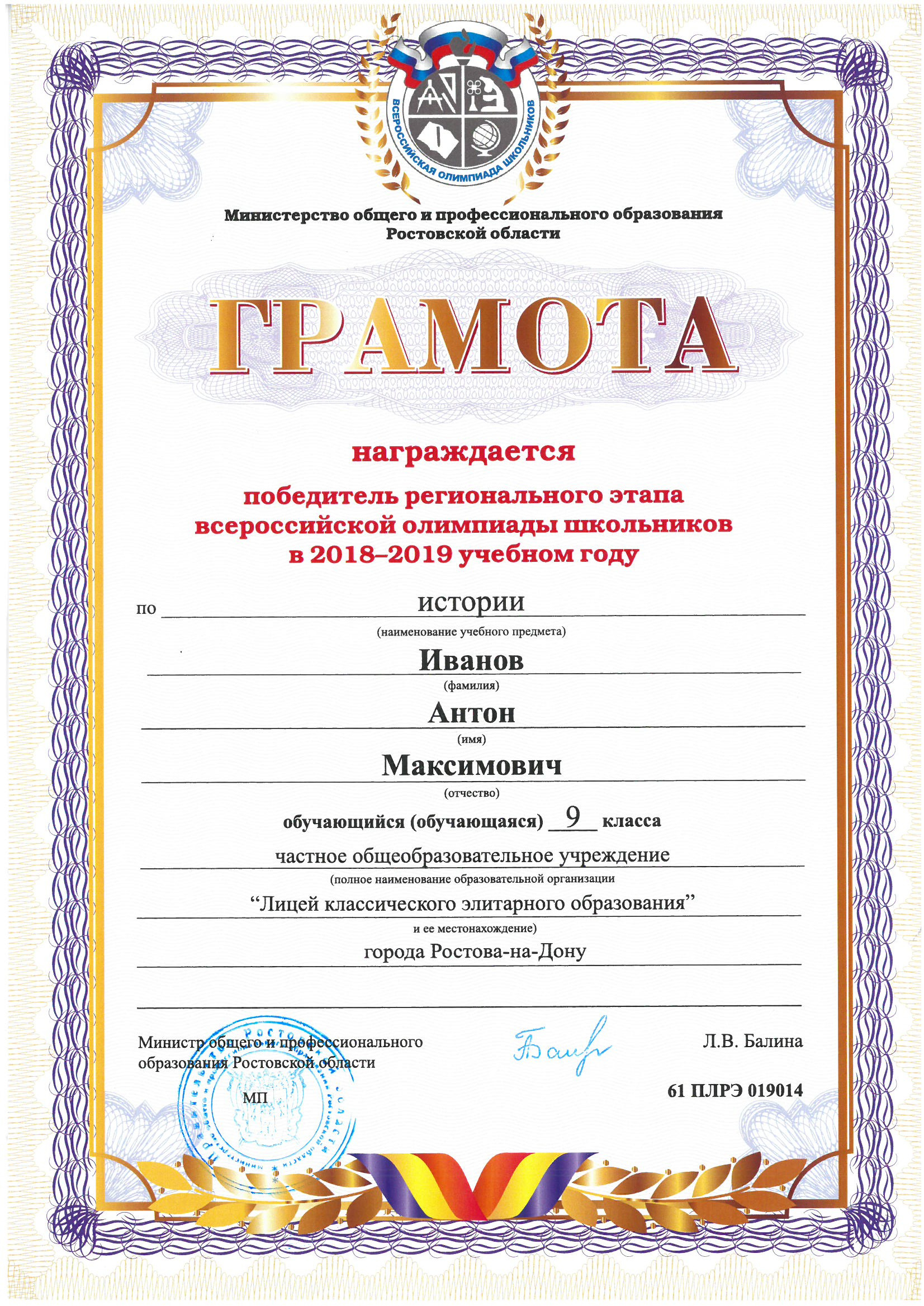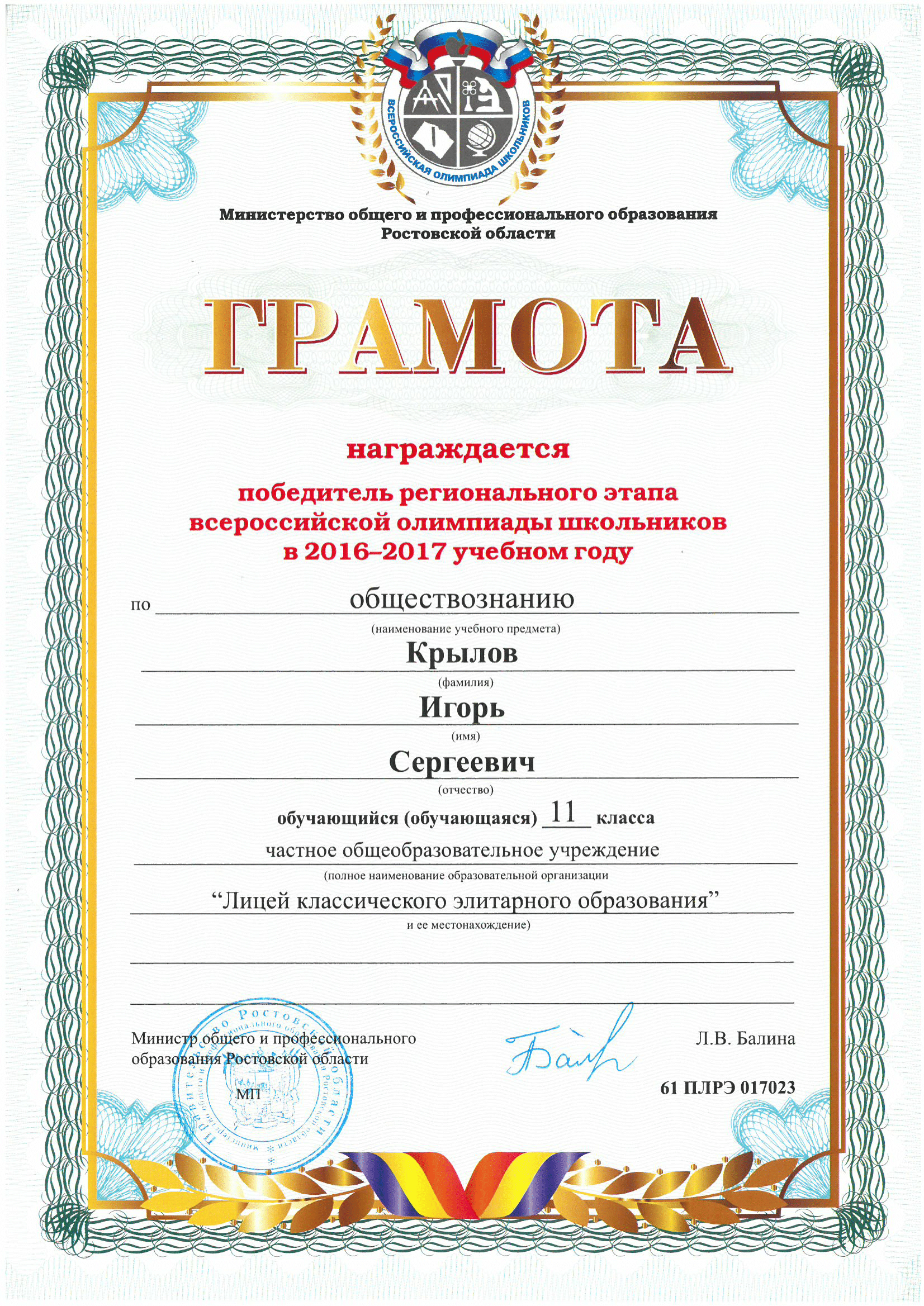 Победители Регионального этапа Всероссийской олимпиады школьников