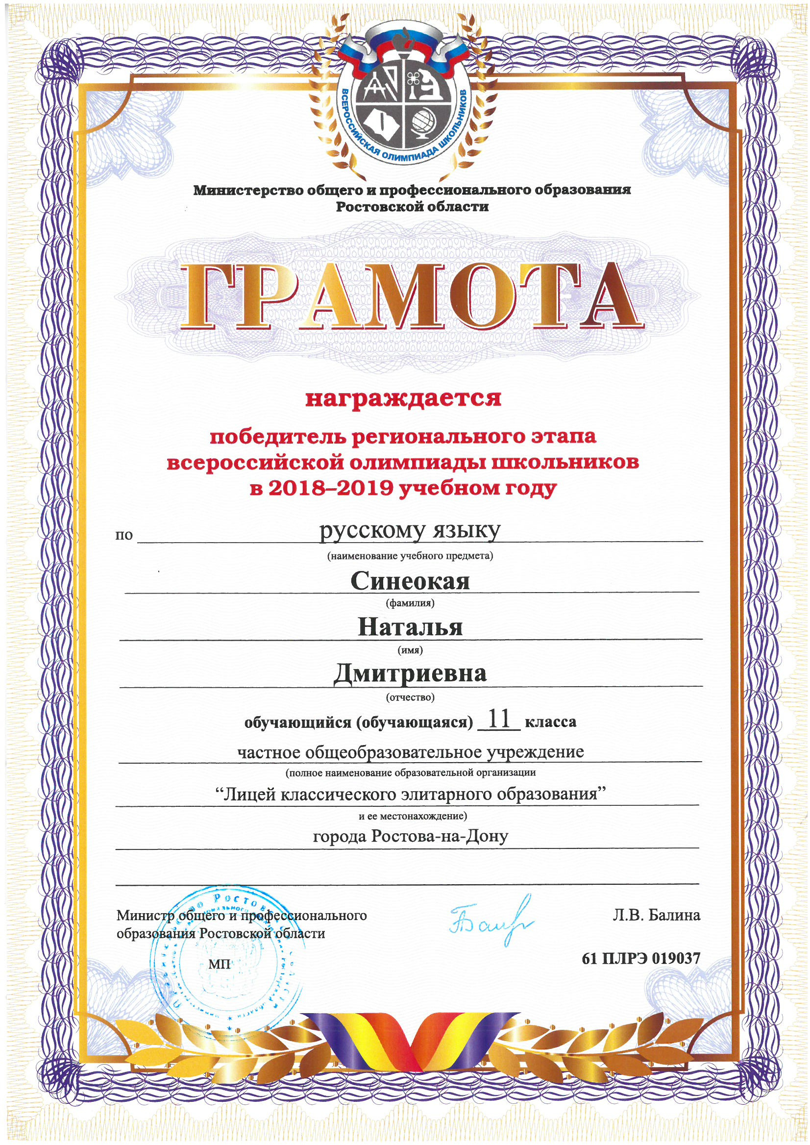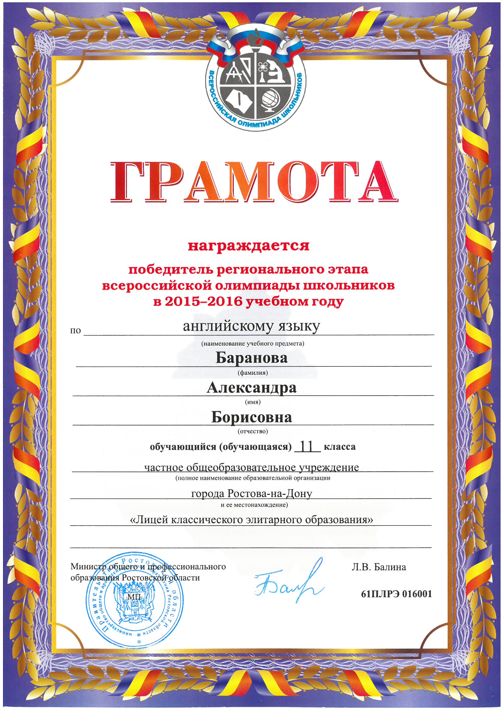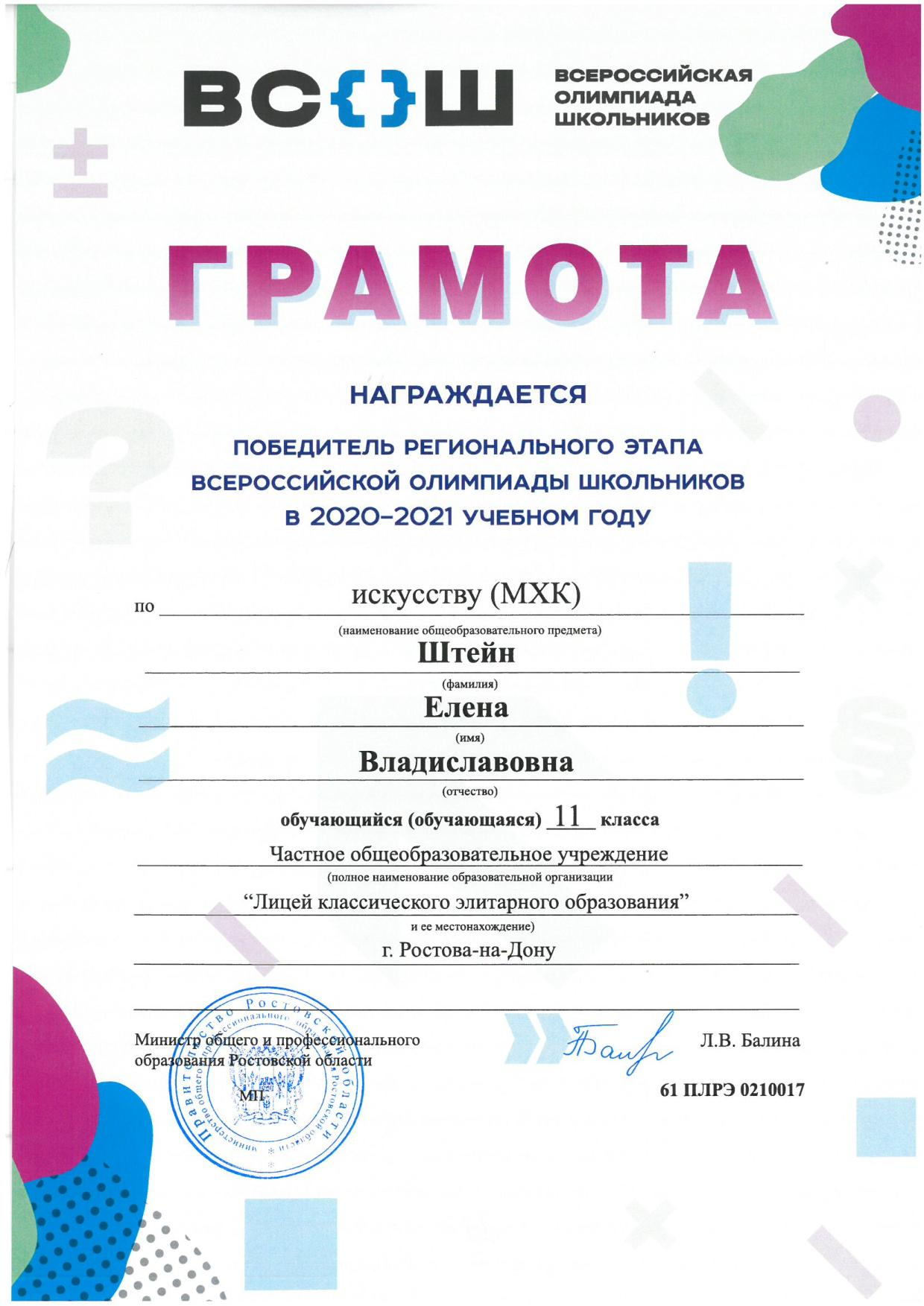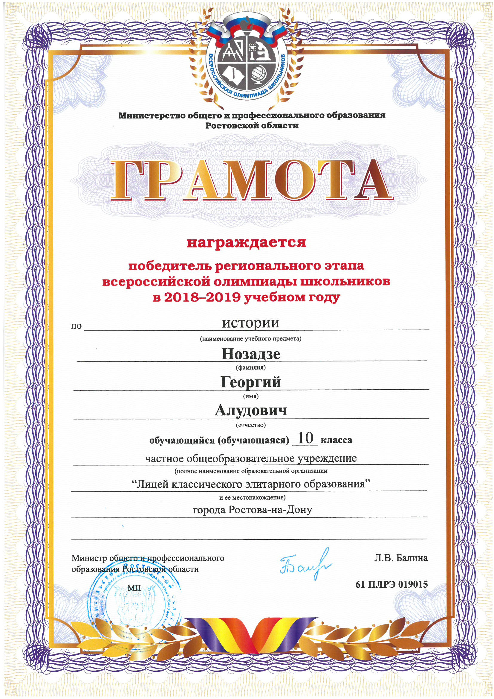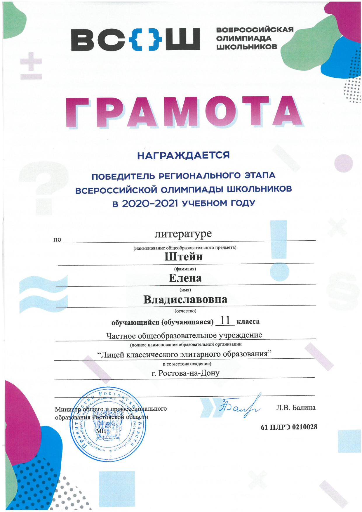 Победители Регионального этапа Всероссийской олимпиады школьников