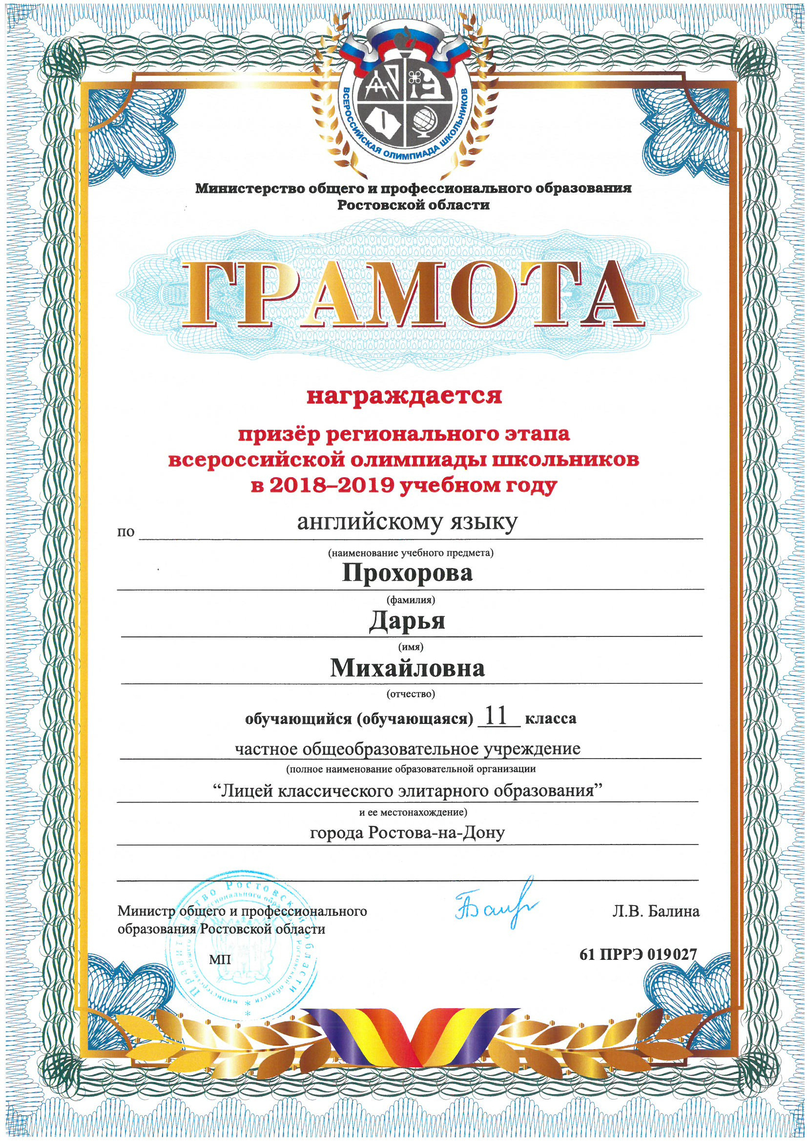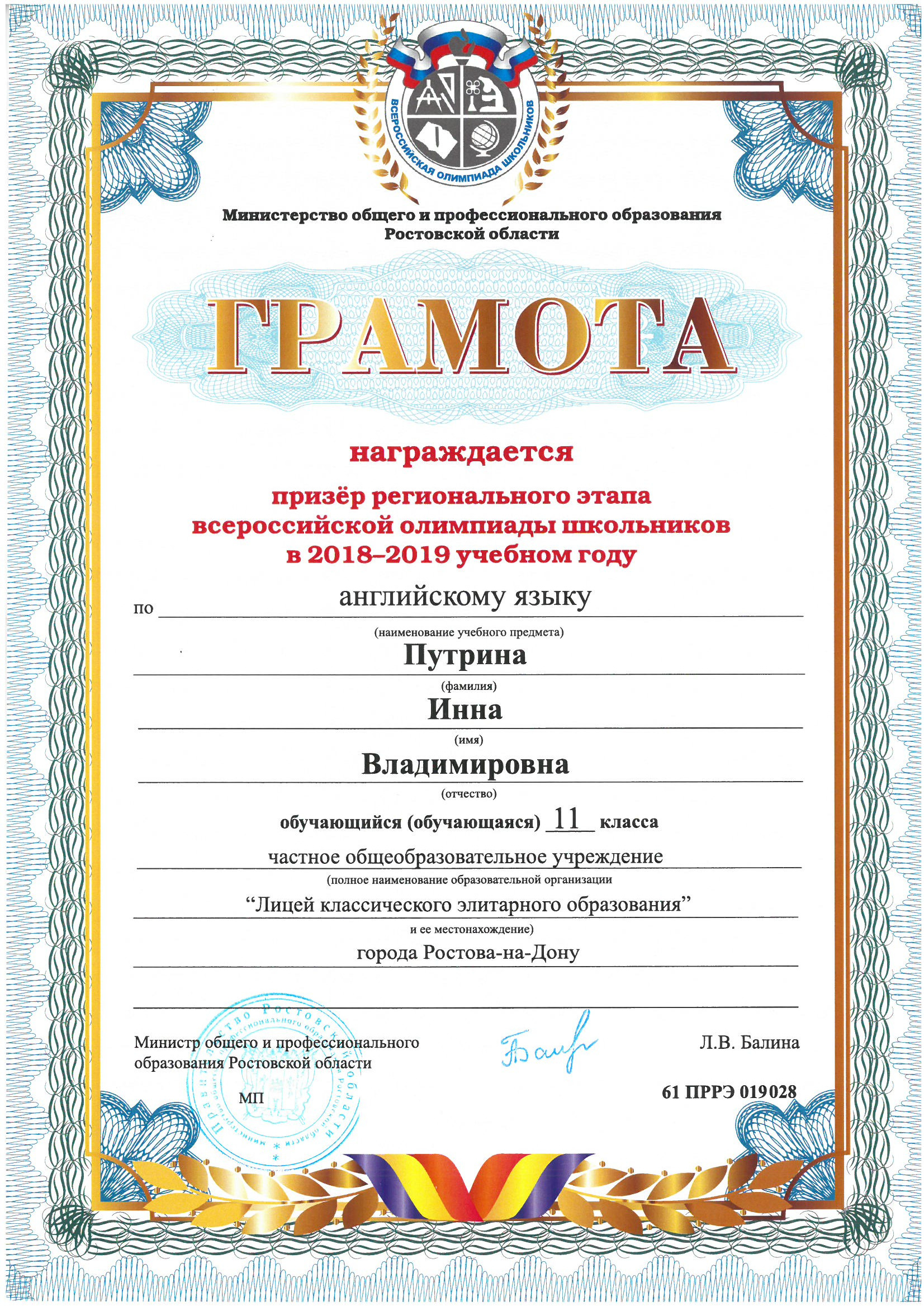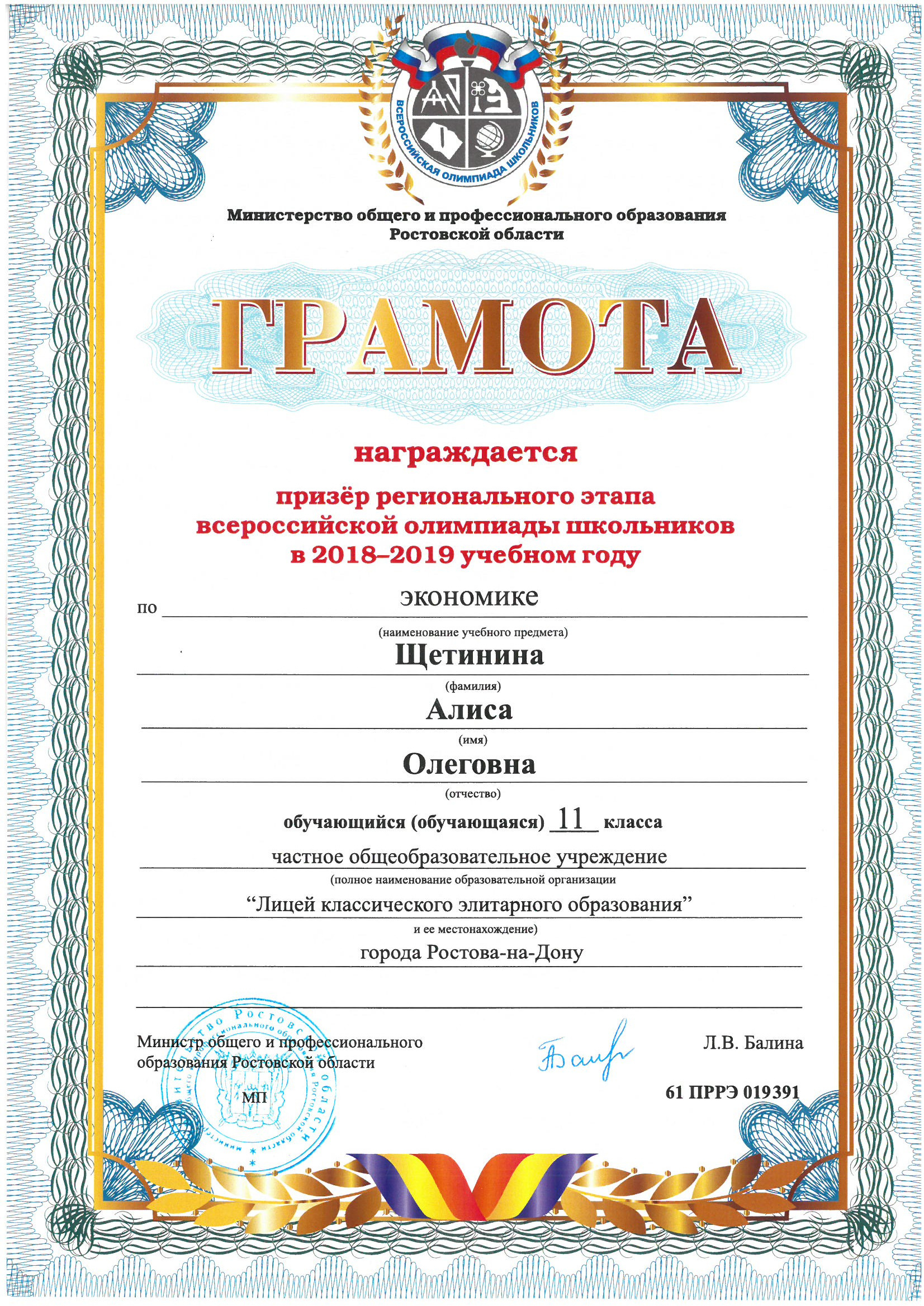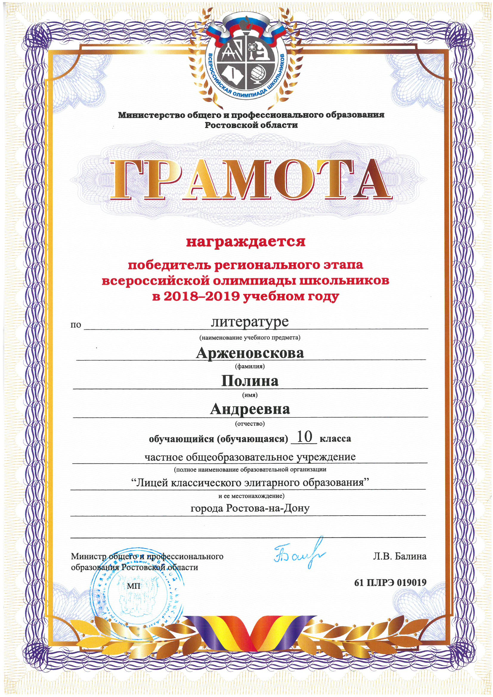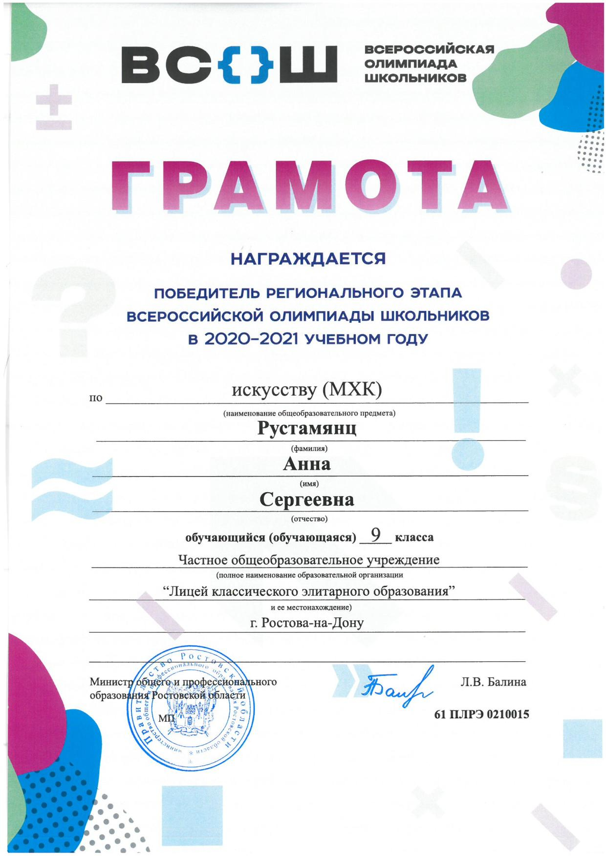 Победители Регионального этапа Всероссийской олимпиады школьников