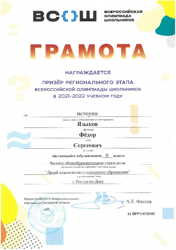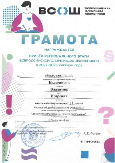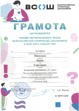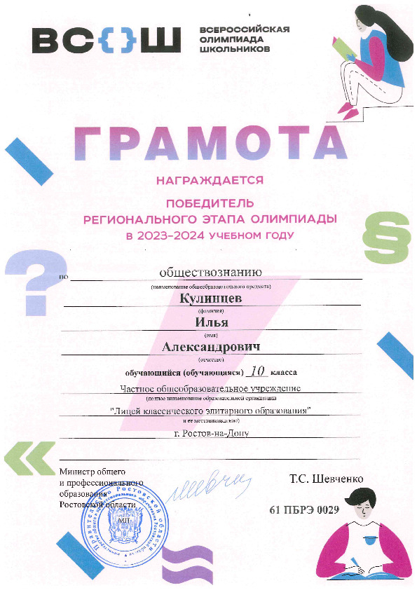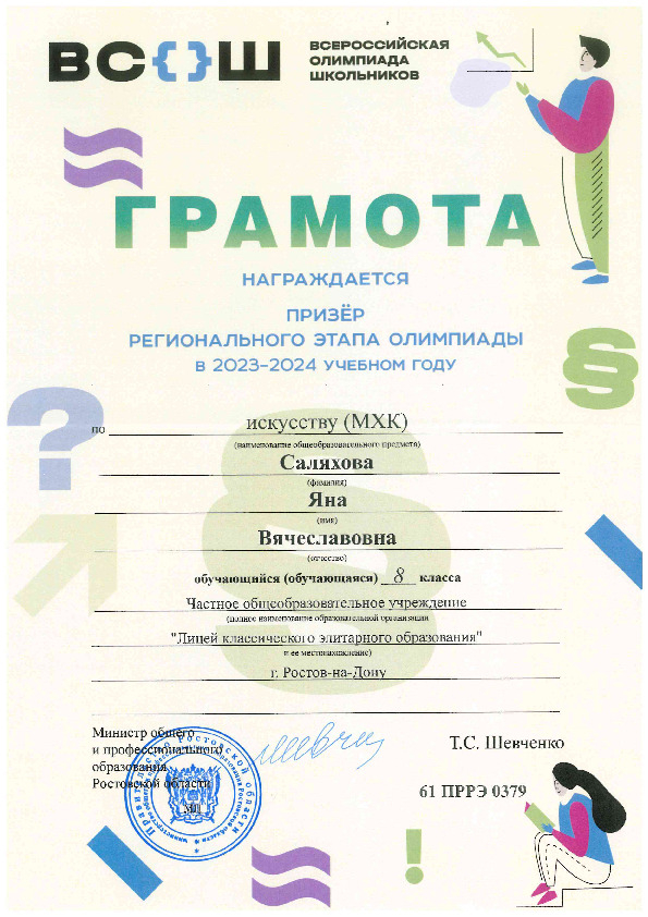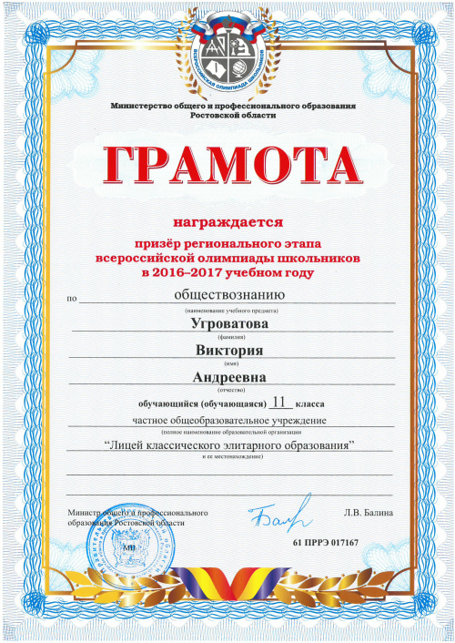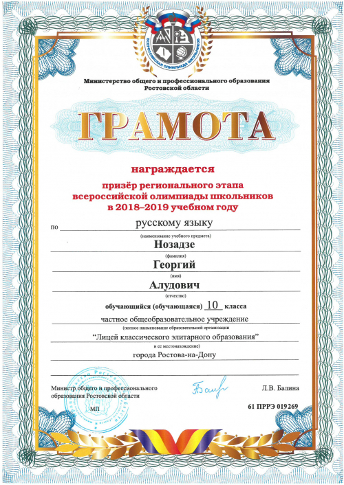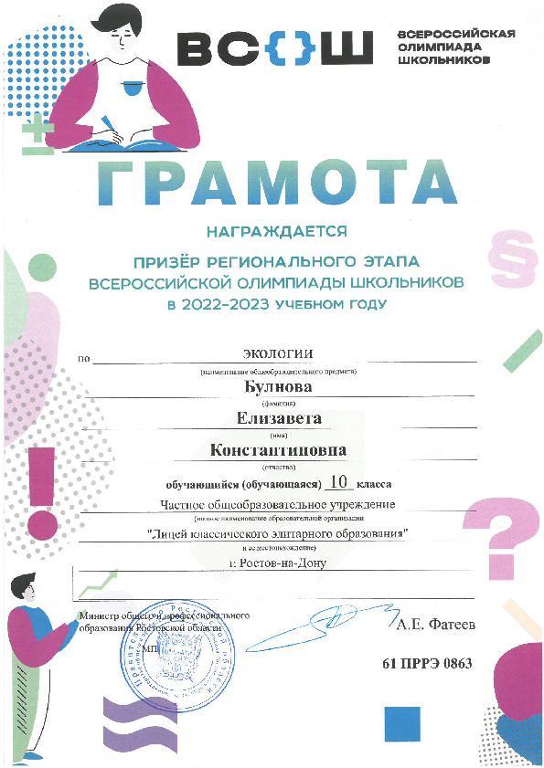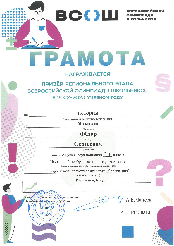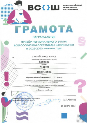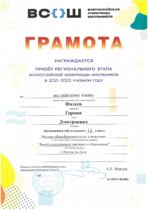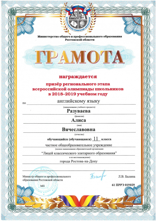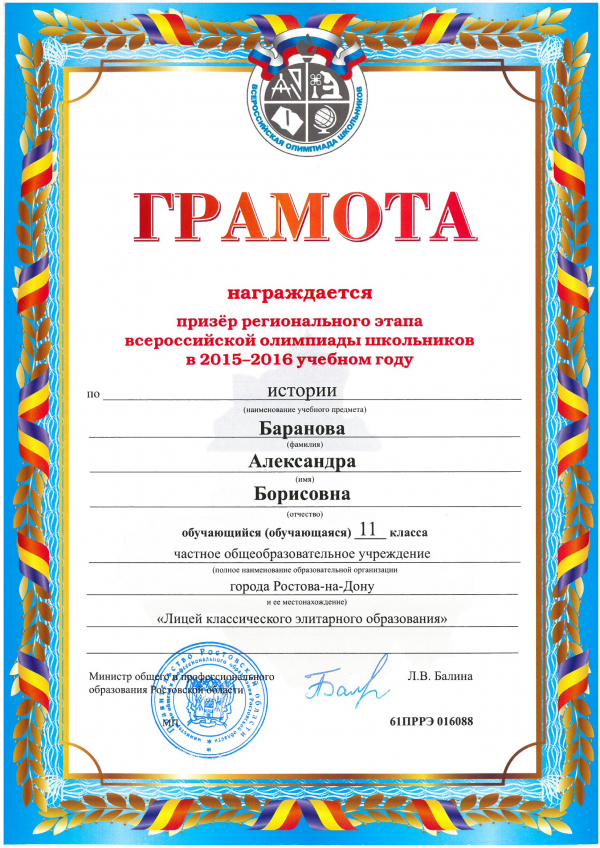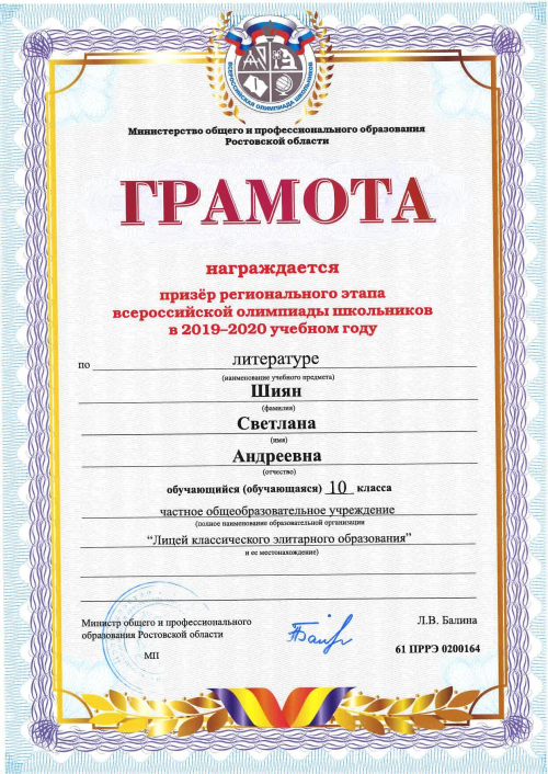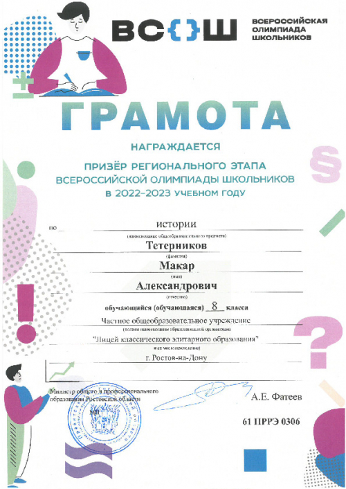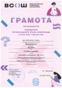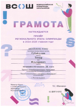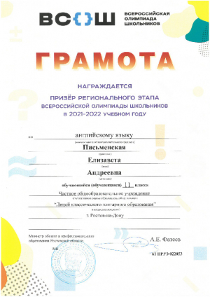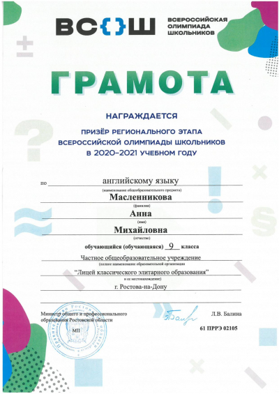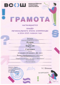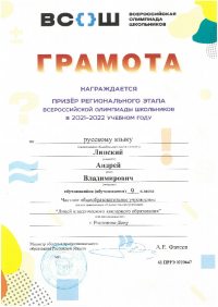 Призёры Регионального этапа Всероссийской олимпиады школьников