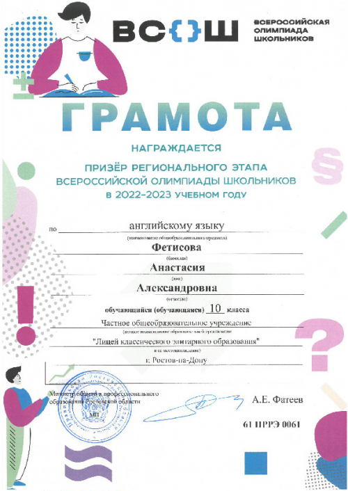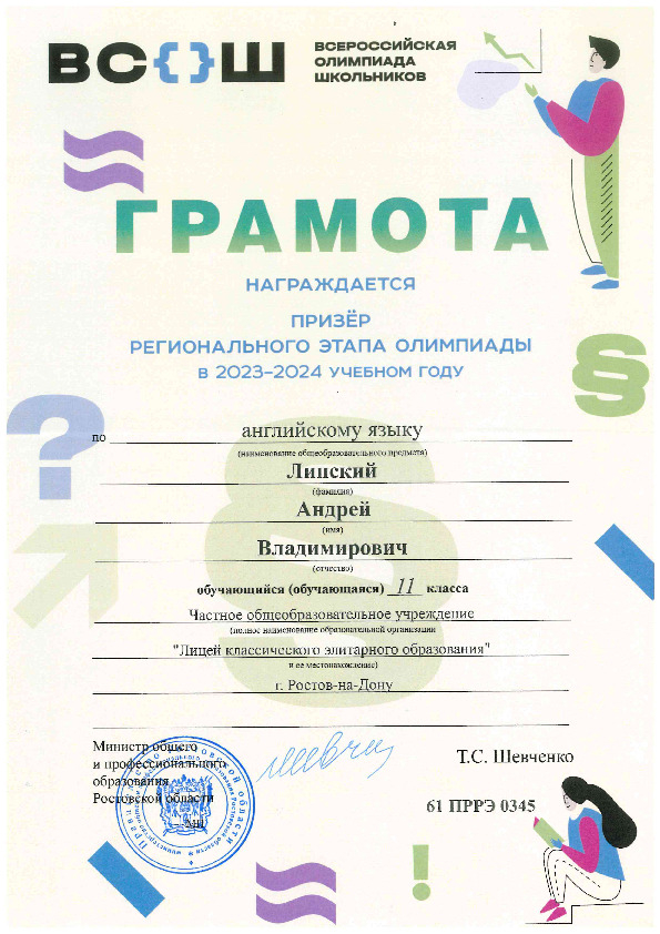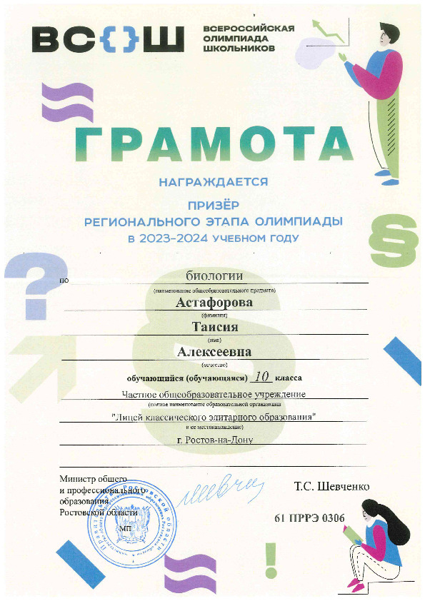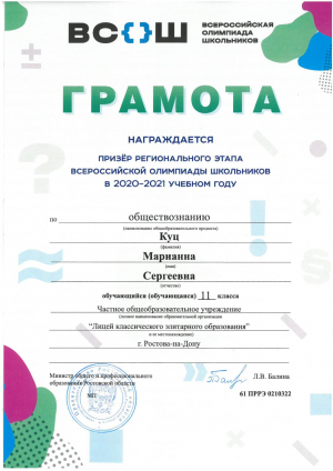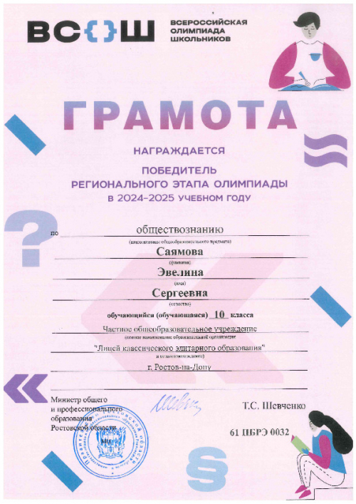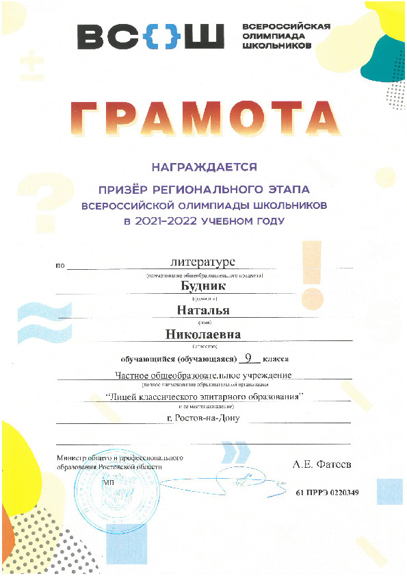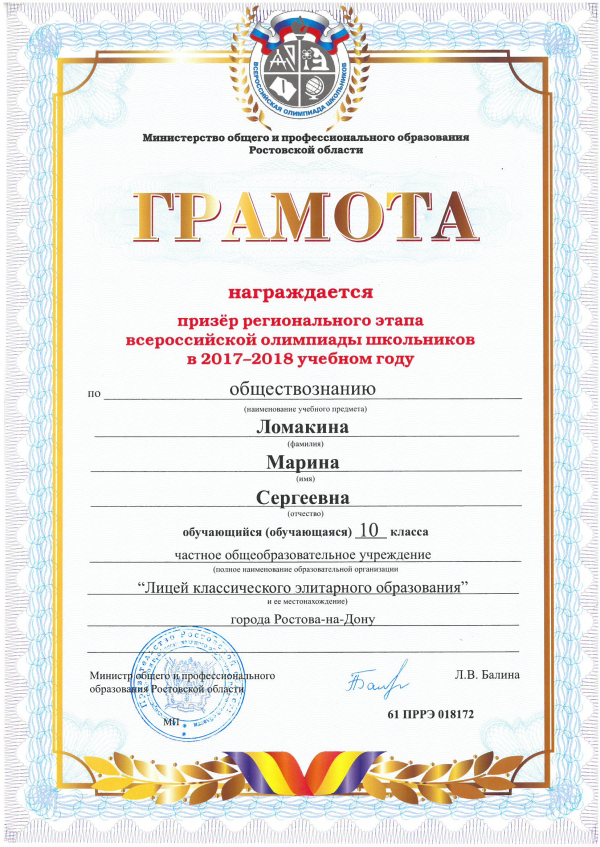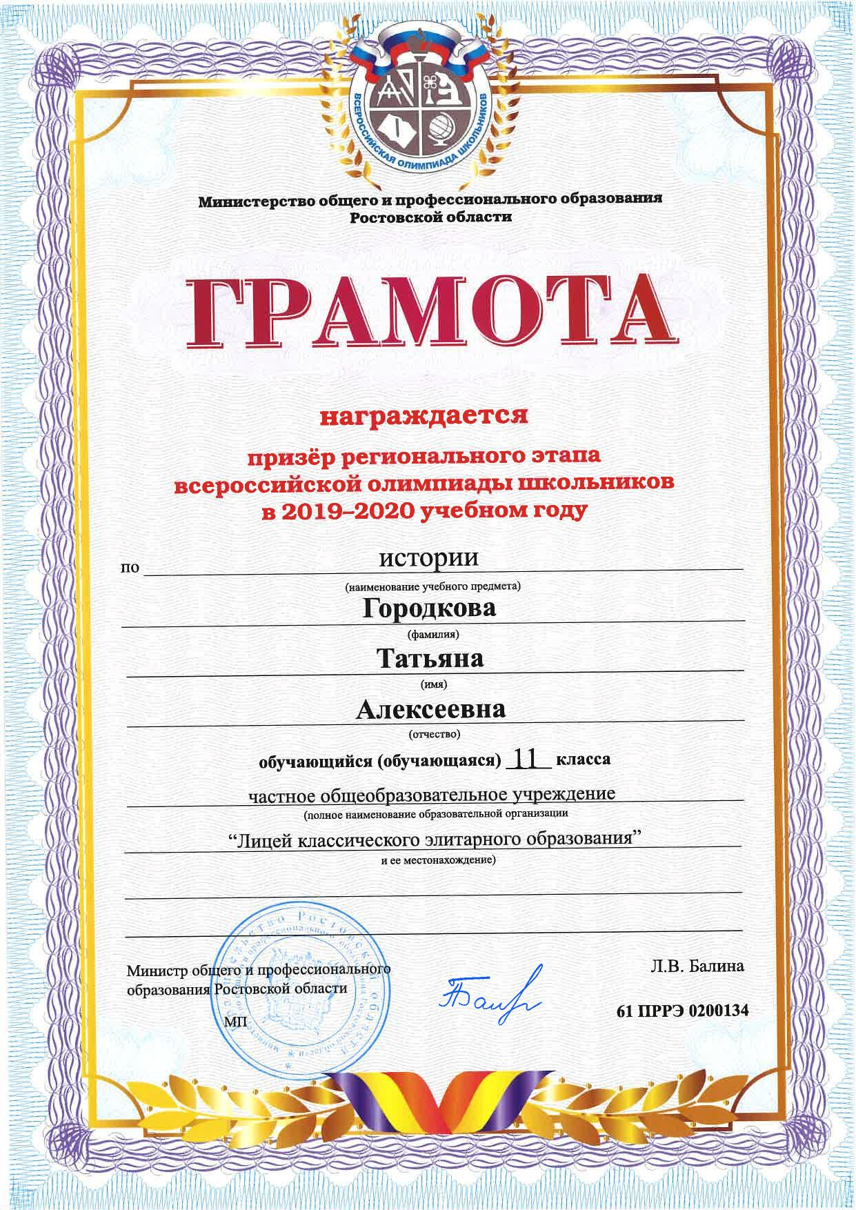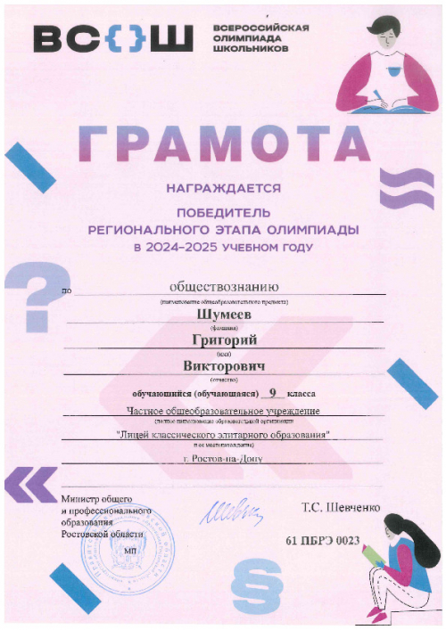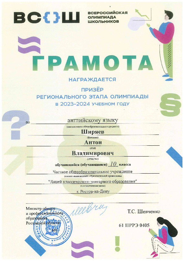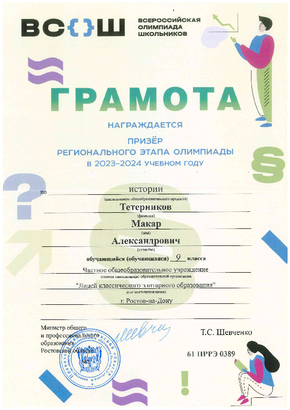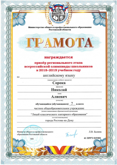 Призёры Регионального этапа Всероссийской олимпиады школьников
