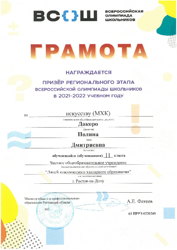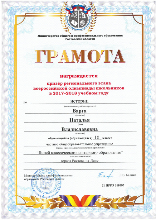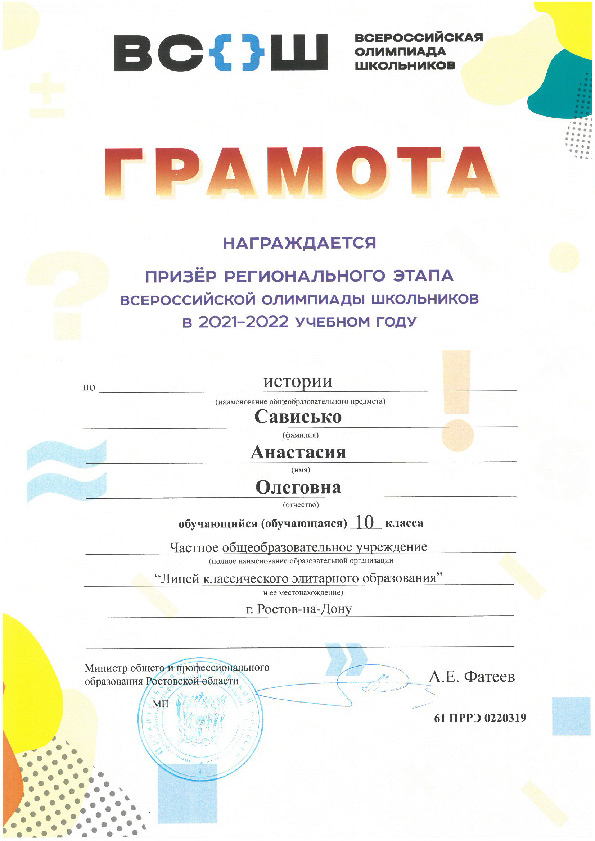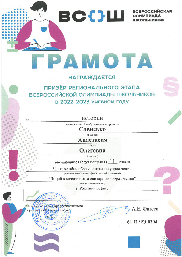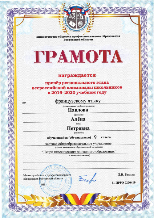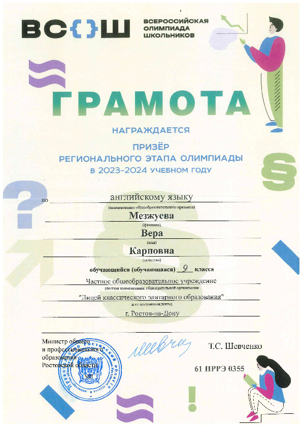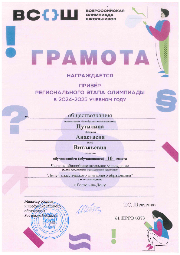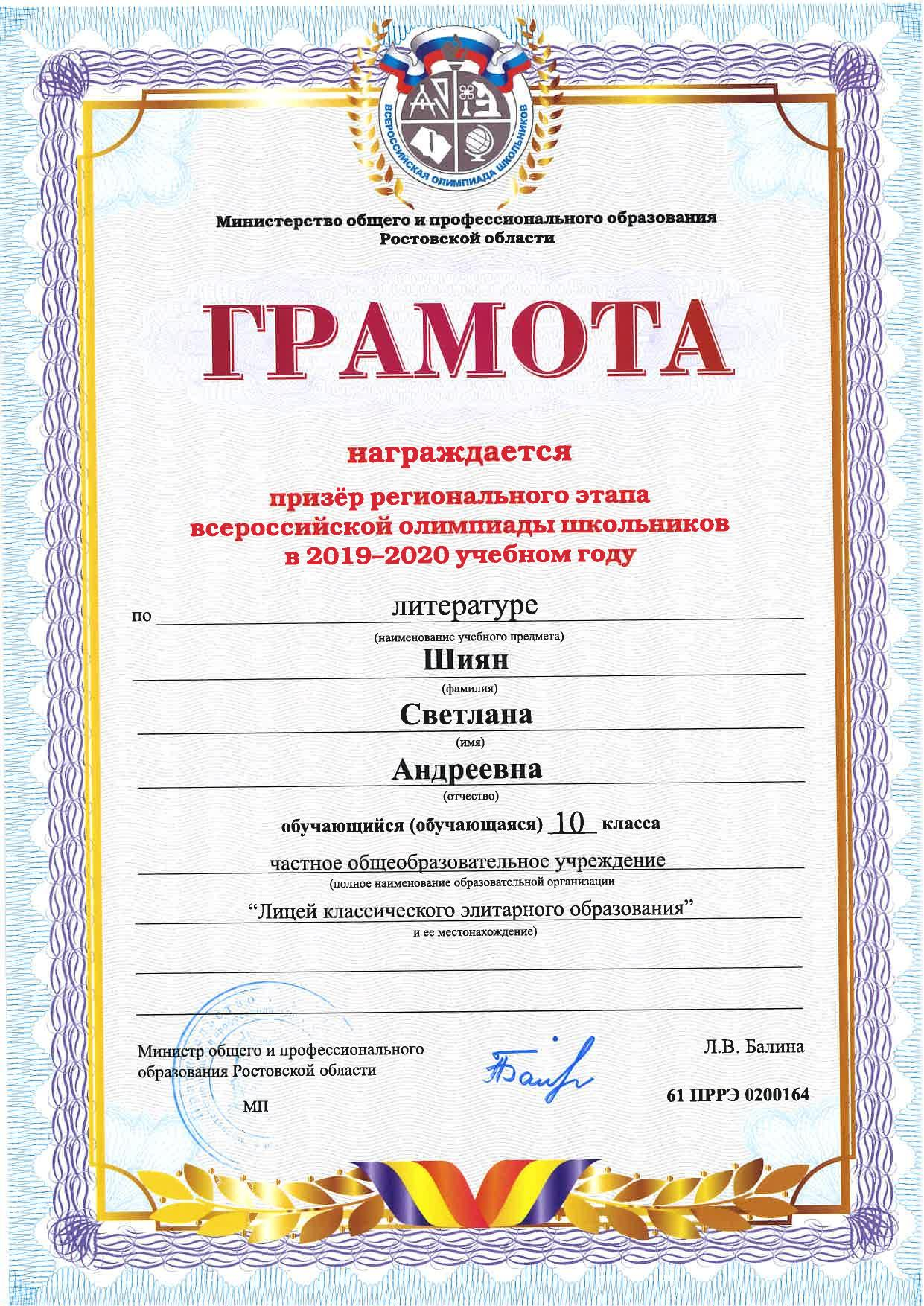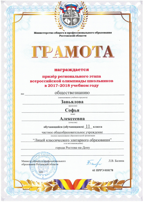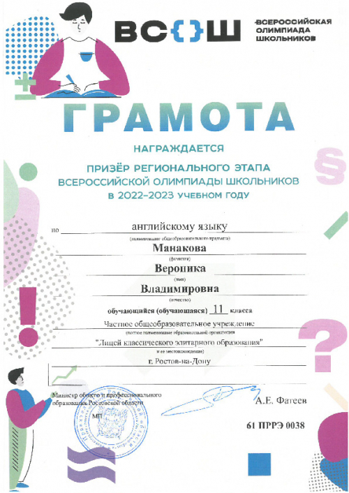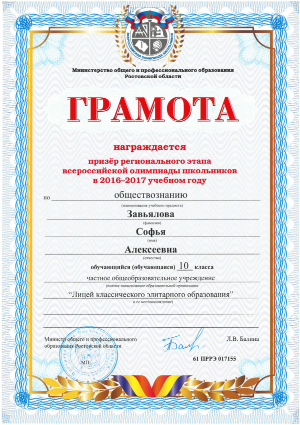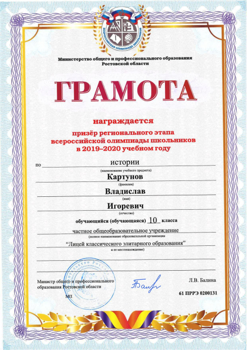 Призёры Регионального этапа Всероссийской олимпиады школьников