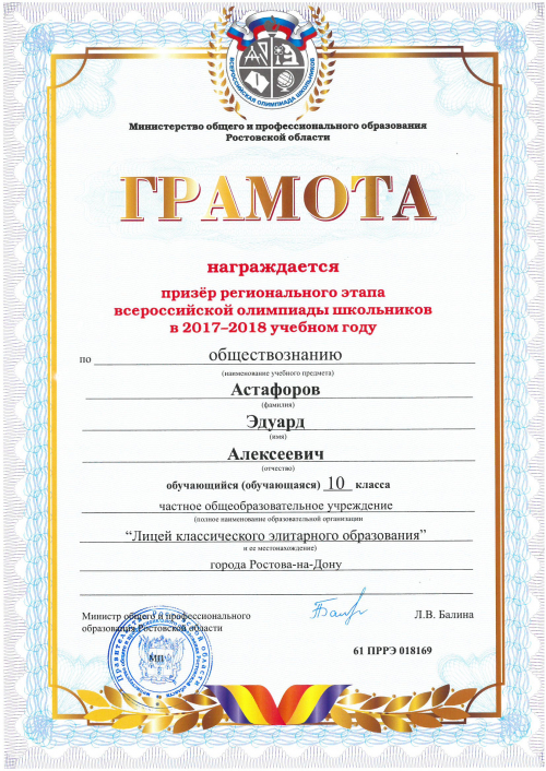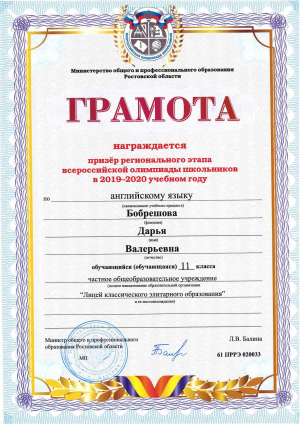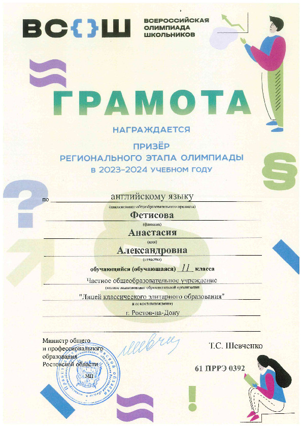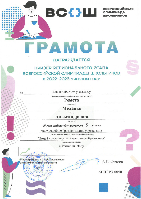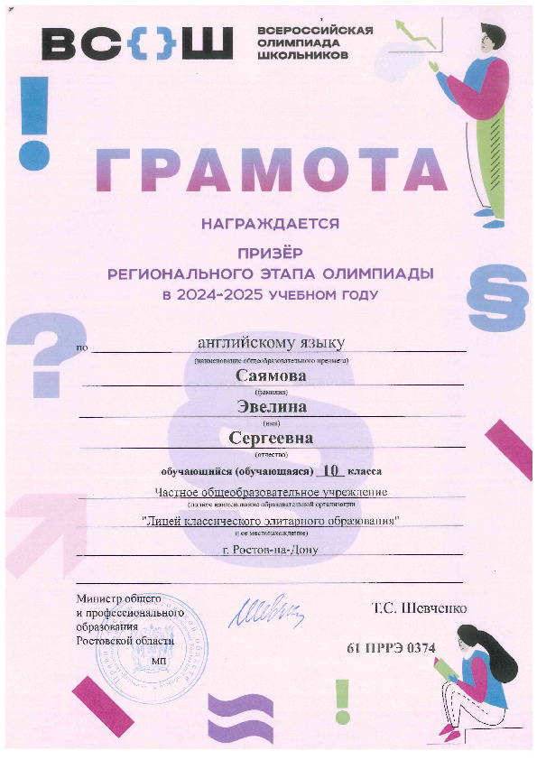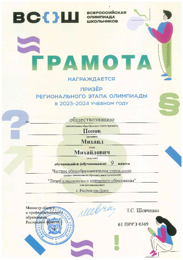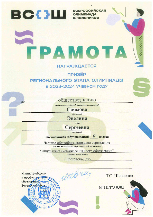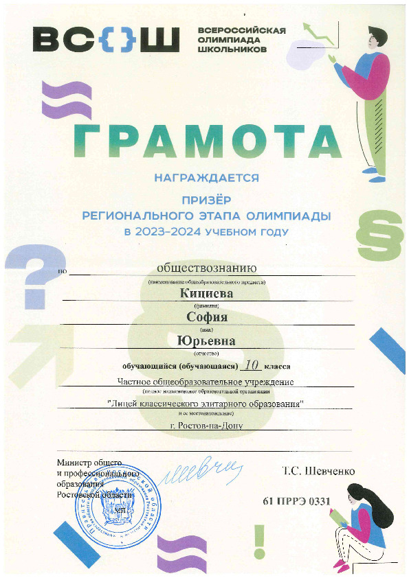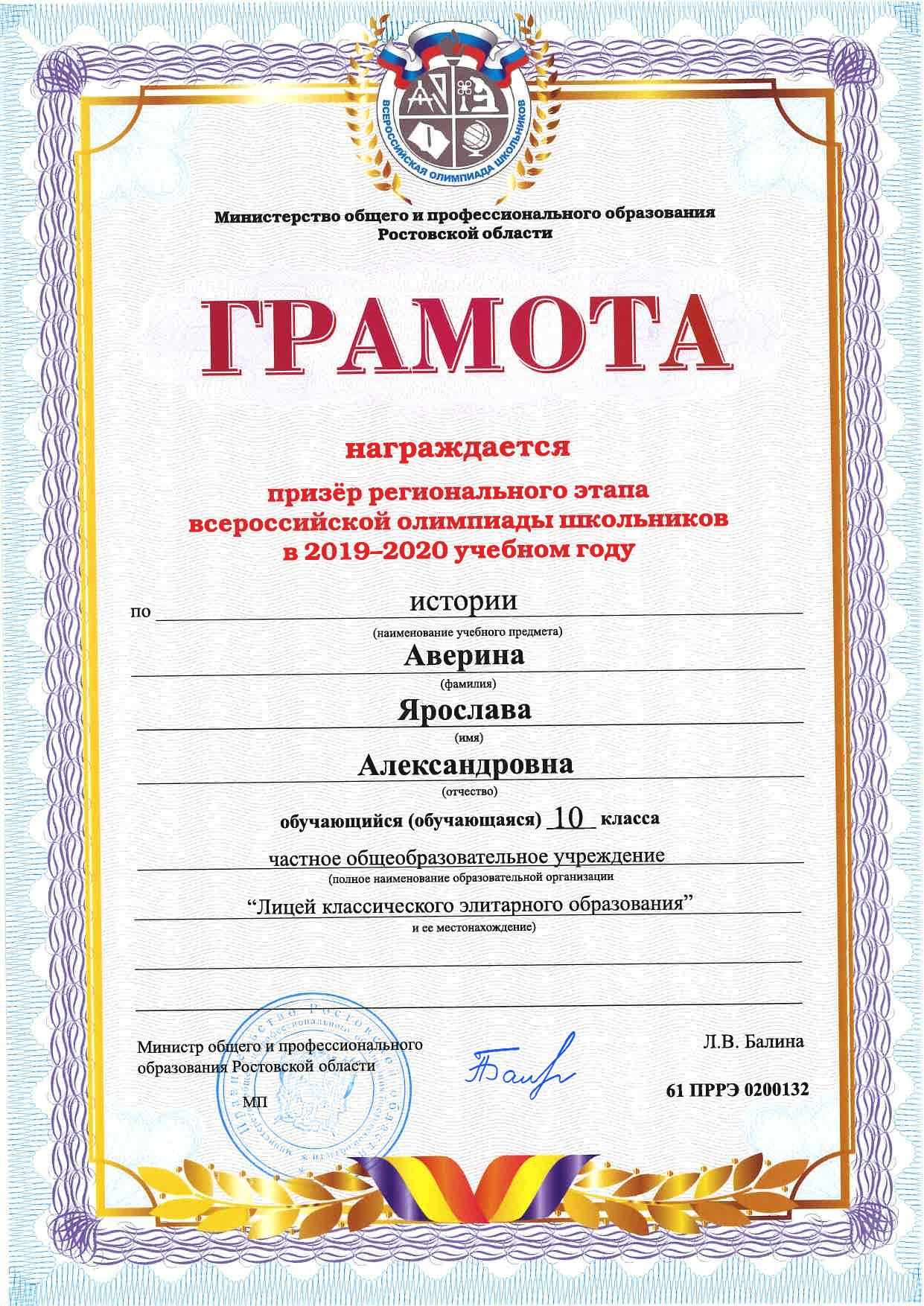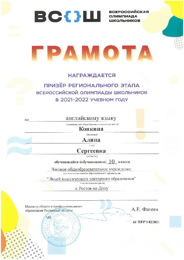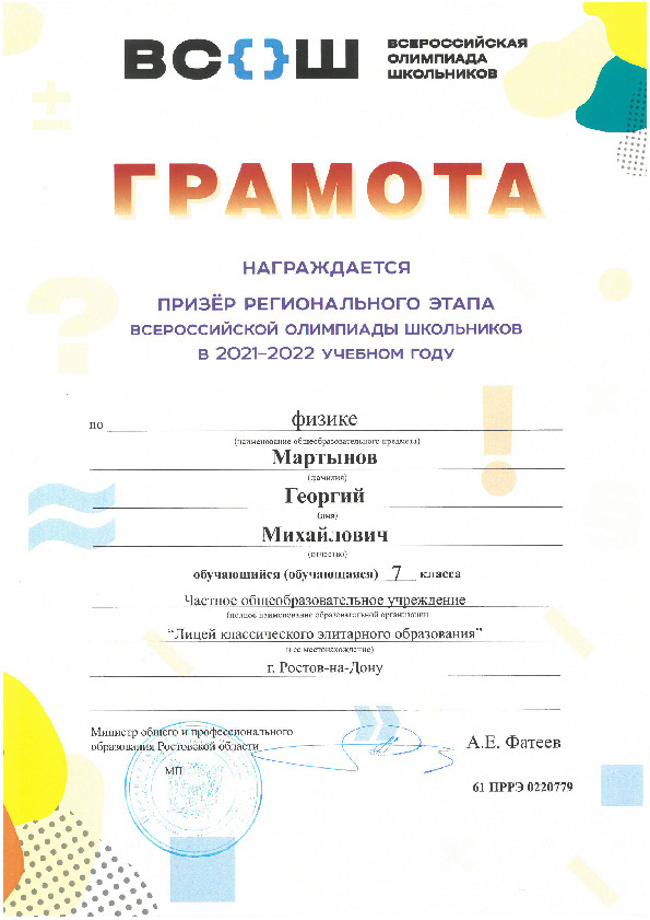Призёры Регионального этапа Всероссийской олимпиады школьников