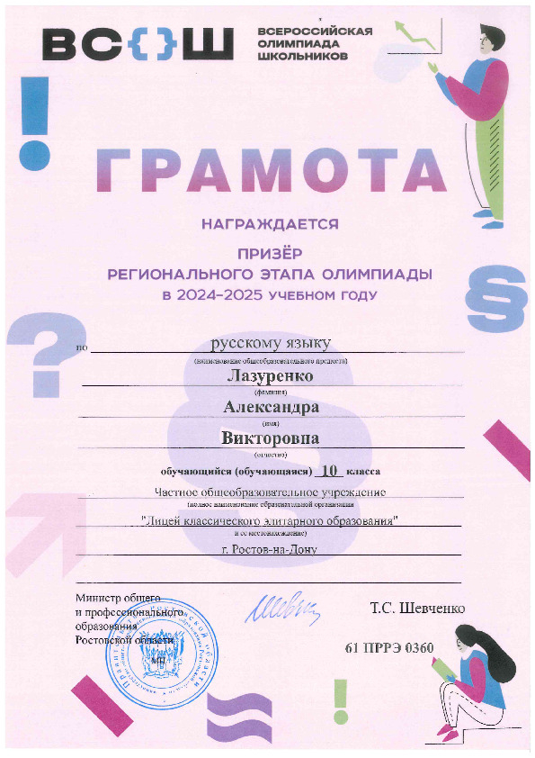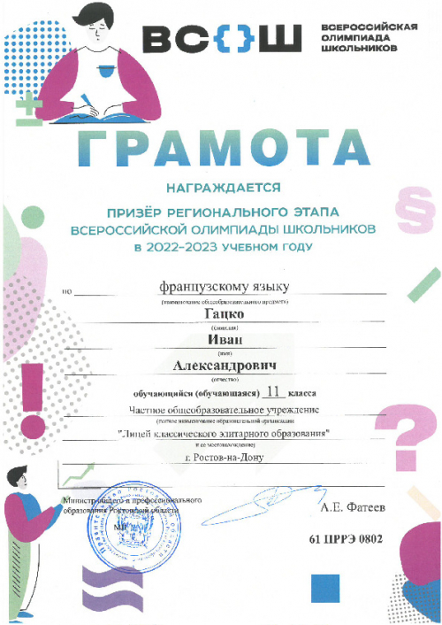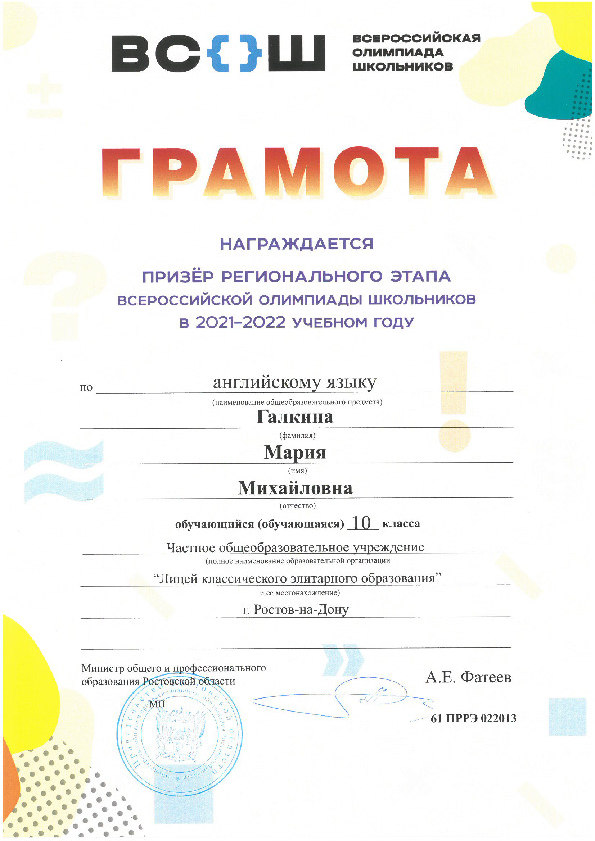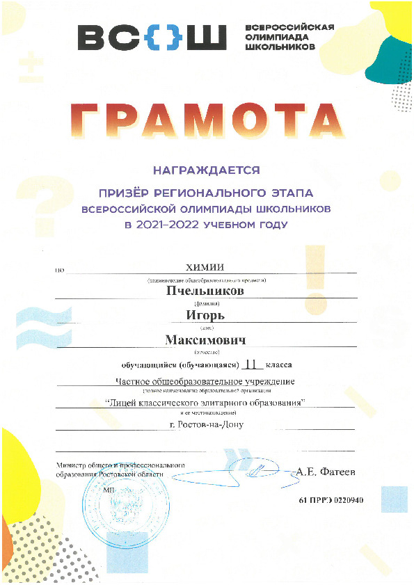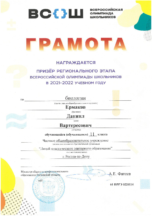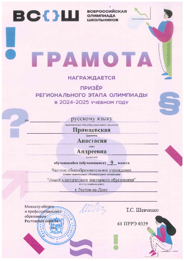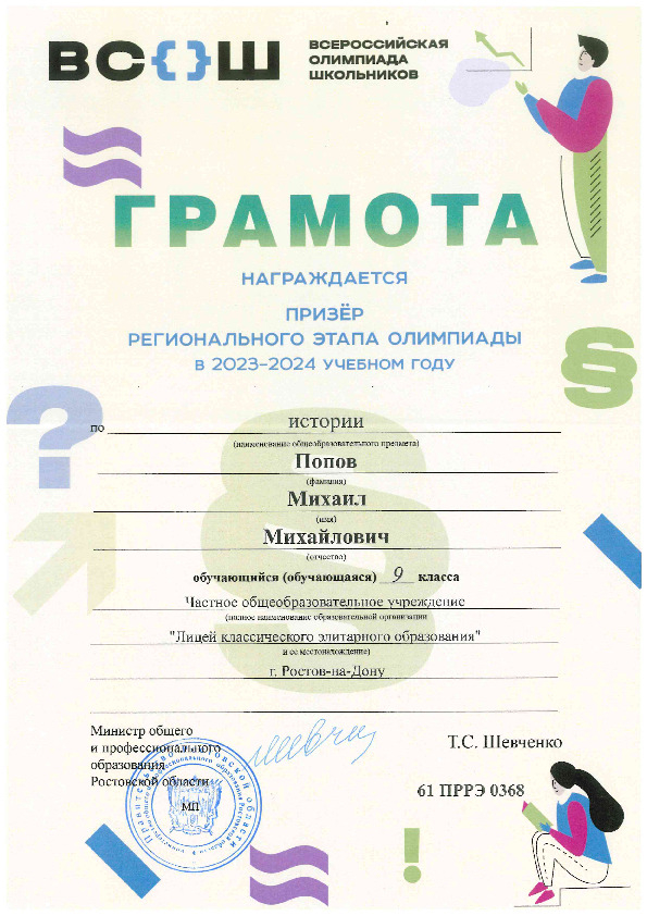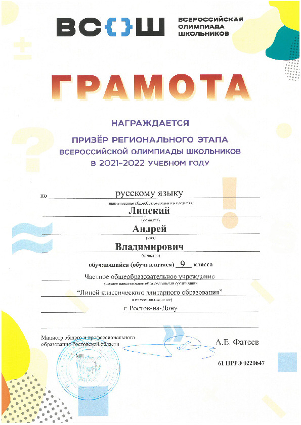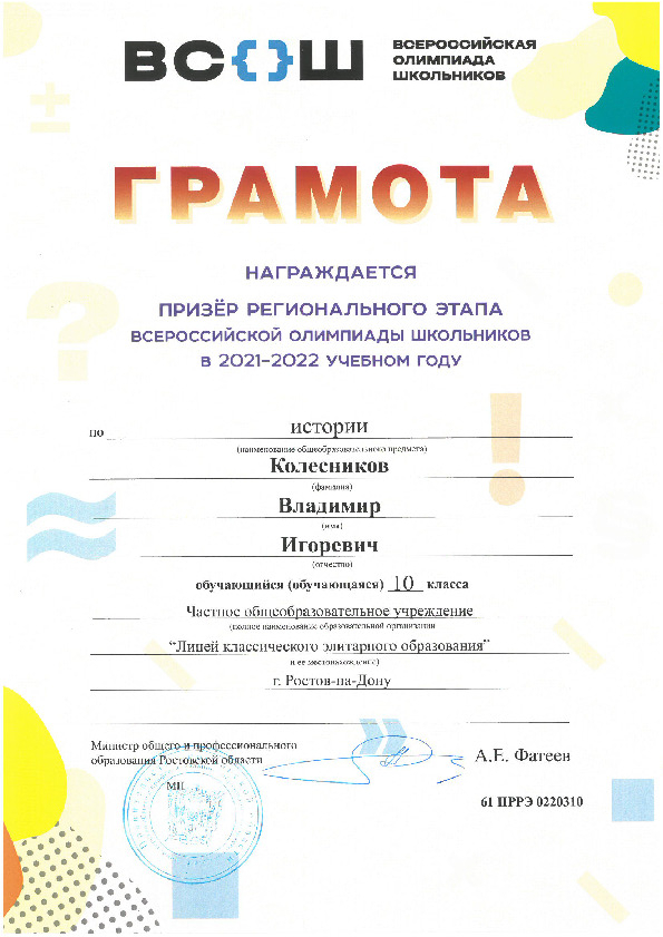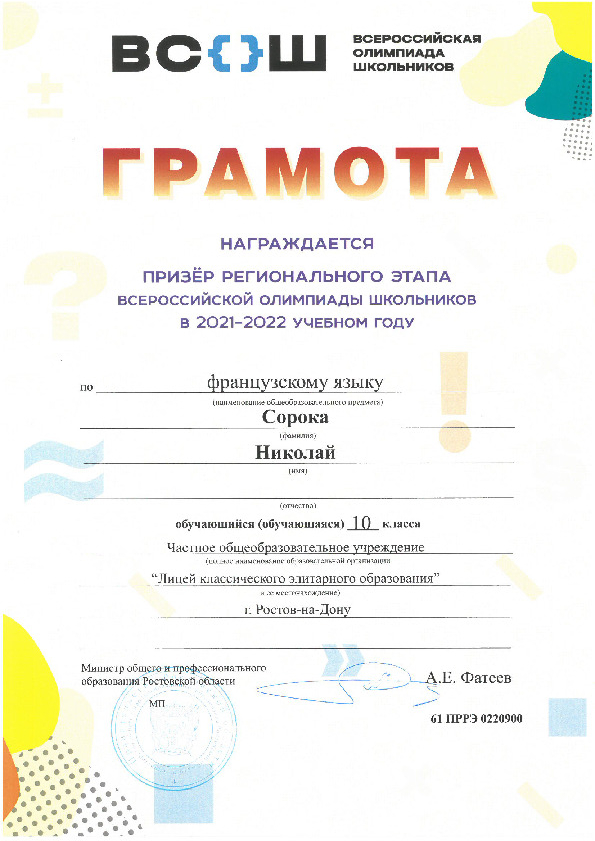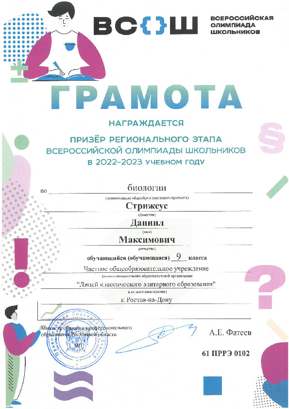 Призёры Регионального этапа Всероссийской олимпиады школьников