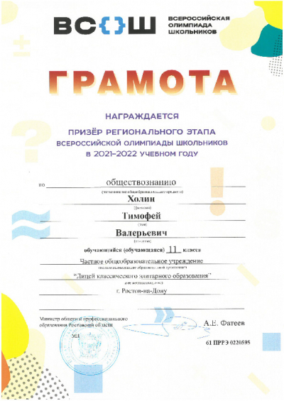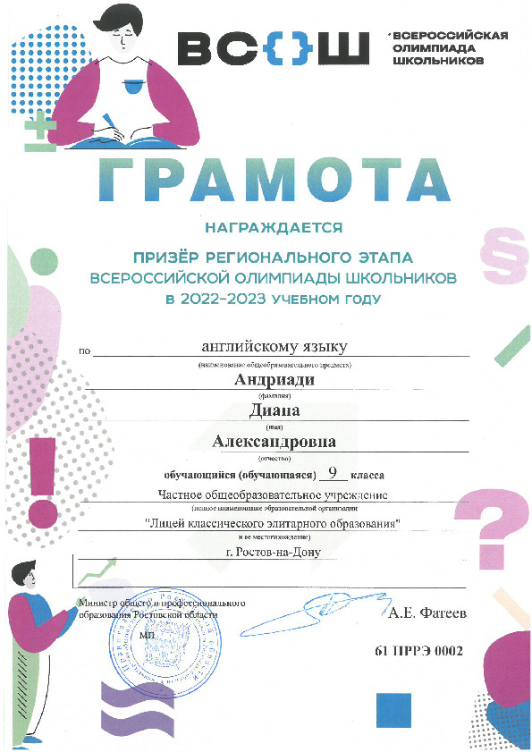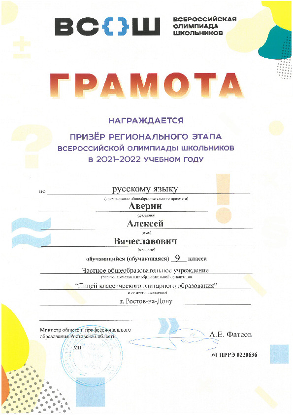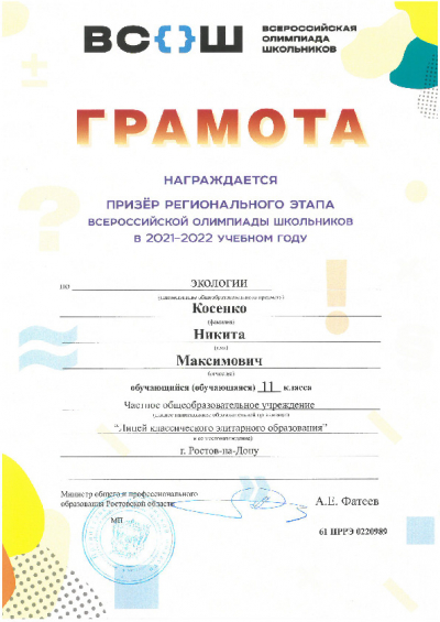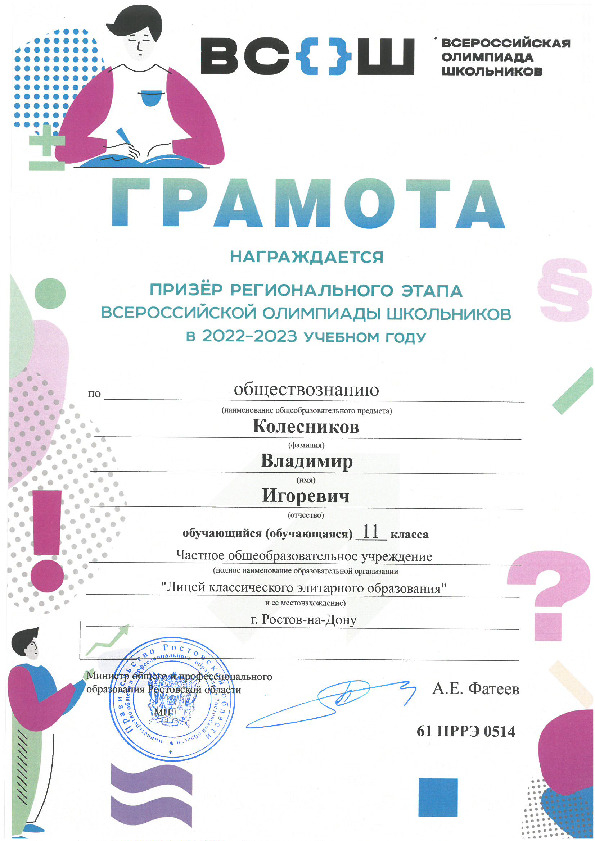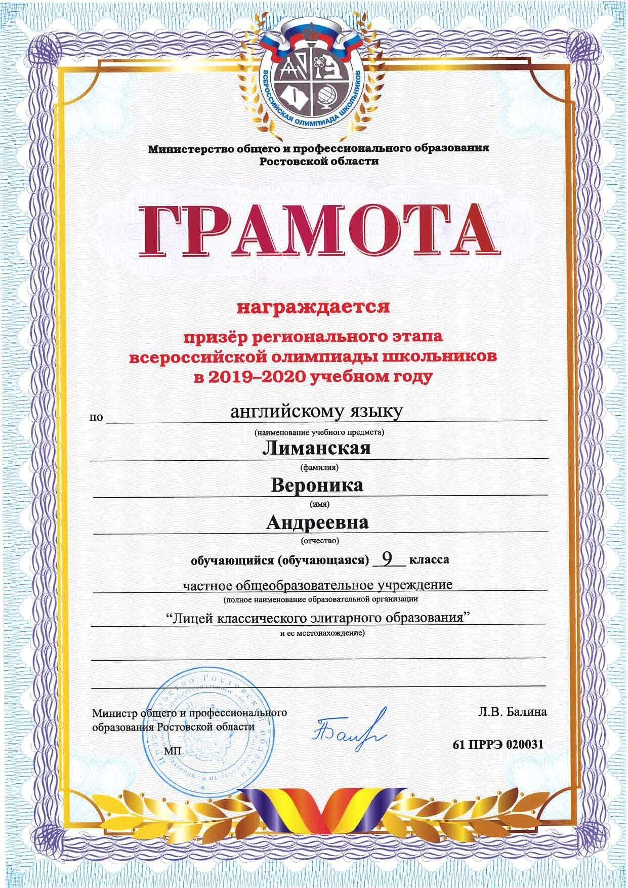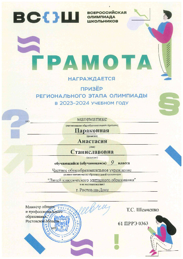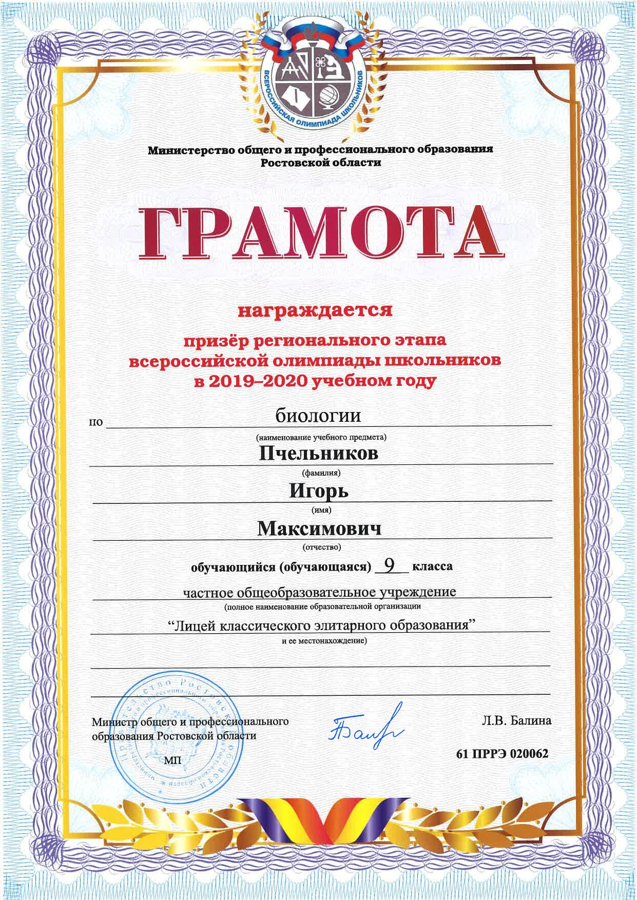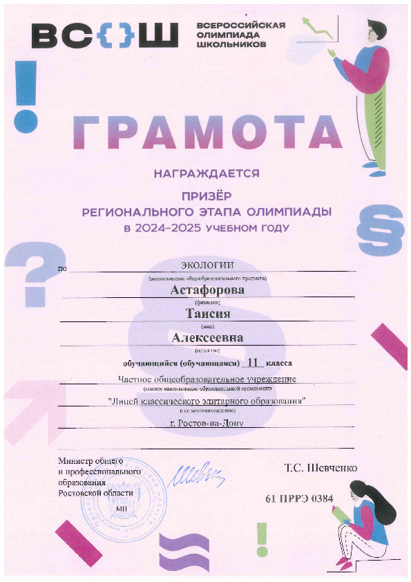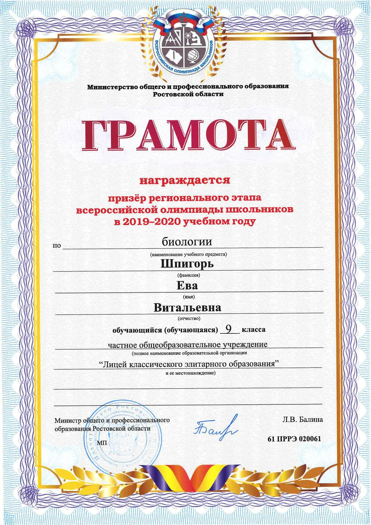 Призёры Регионального этапа Всероссийской олимпиады школьников