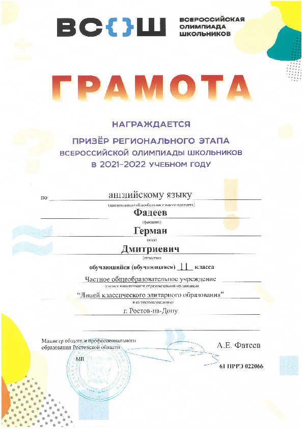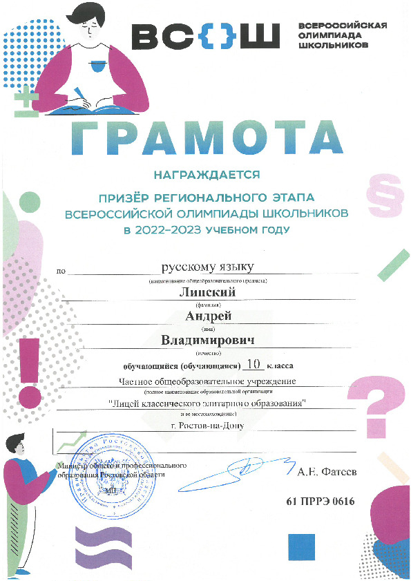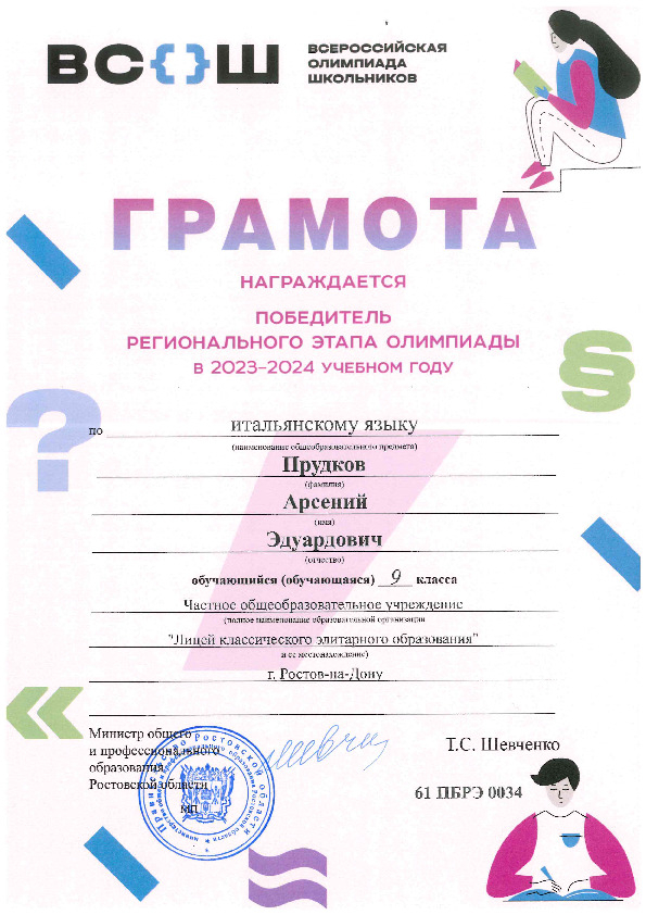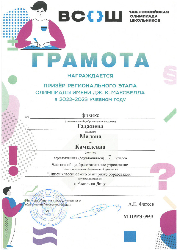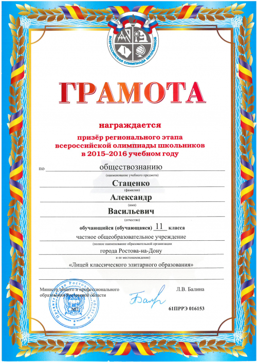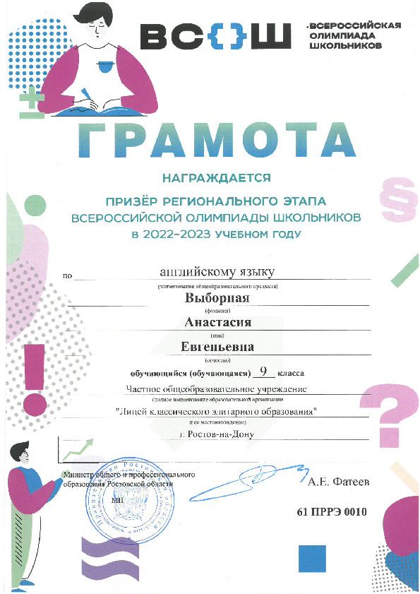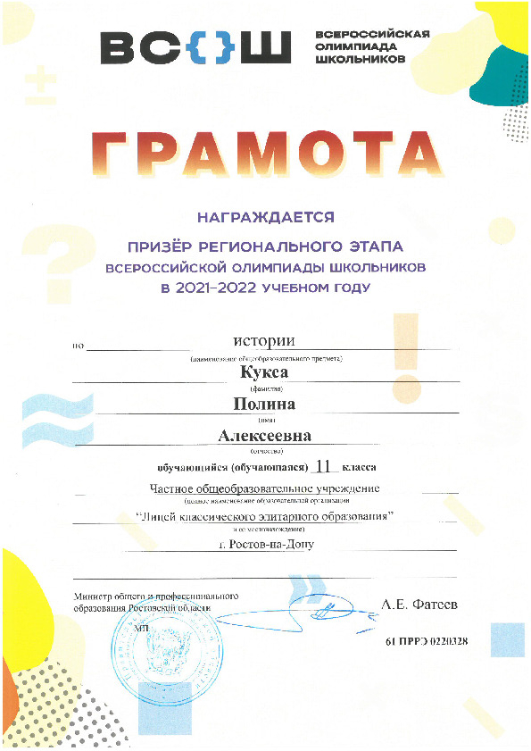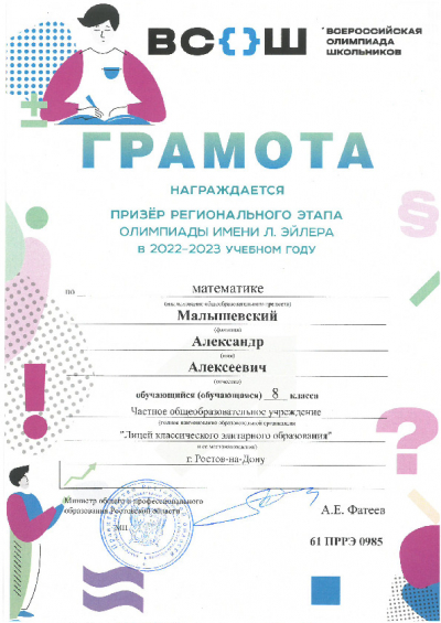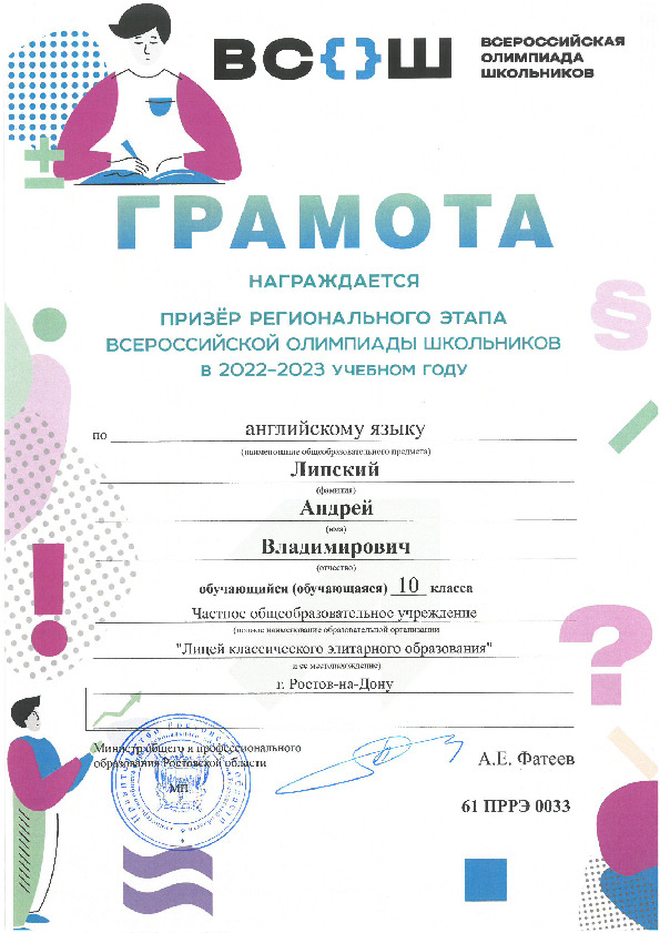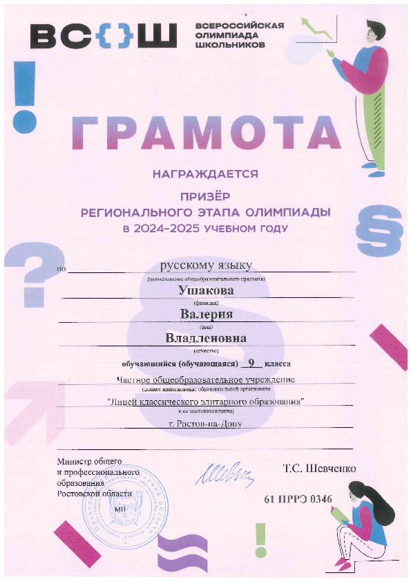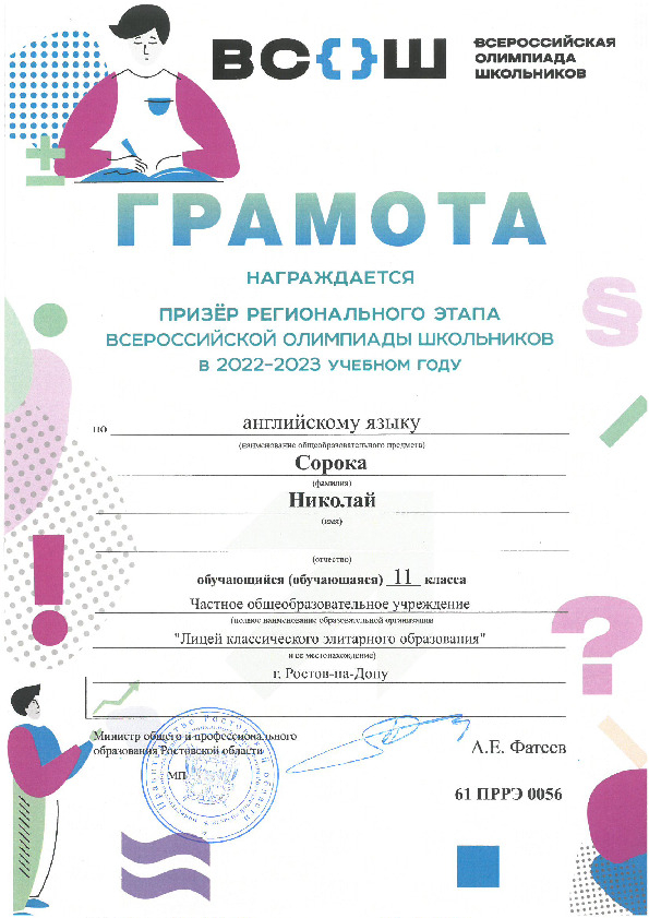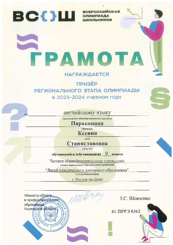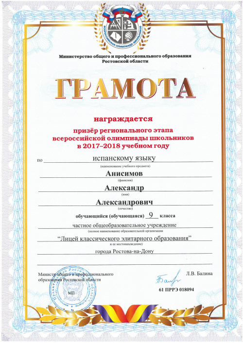 Призёры Регионального этапа Всероссийской олимпиады школьников