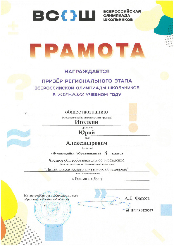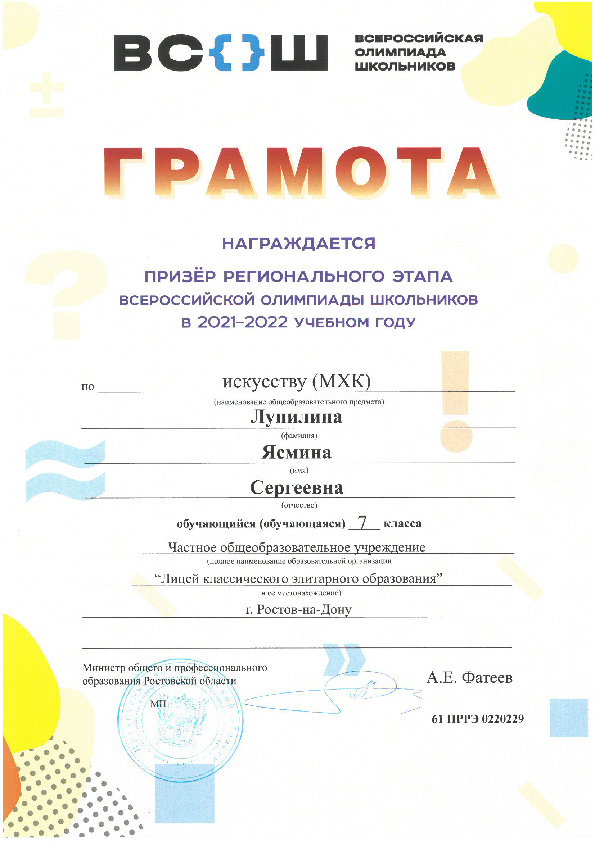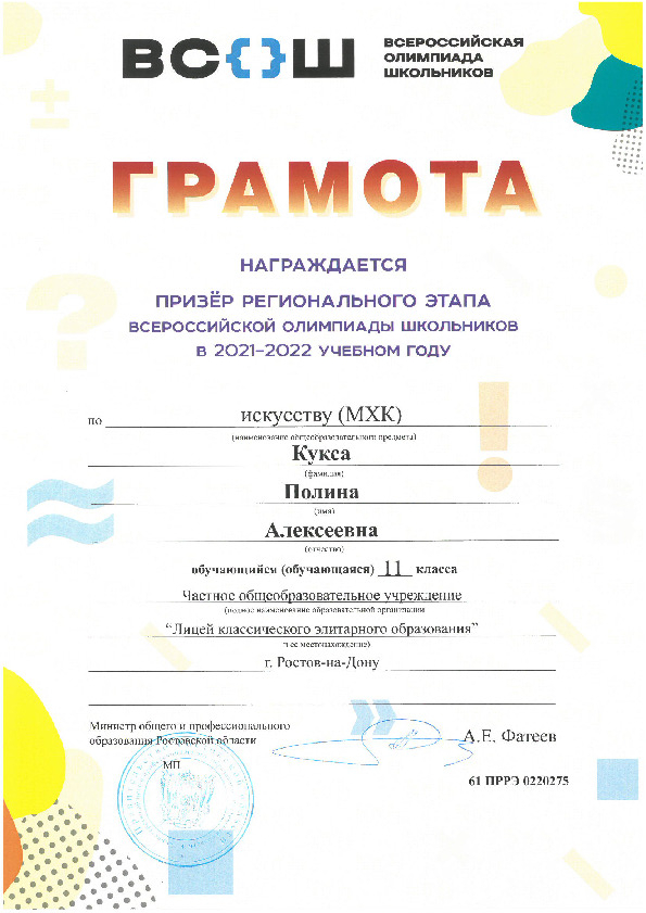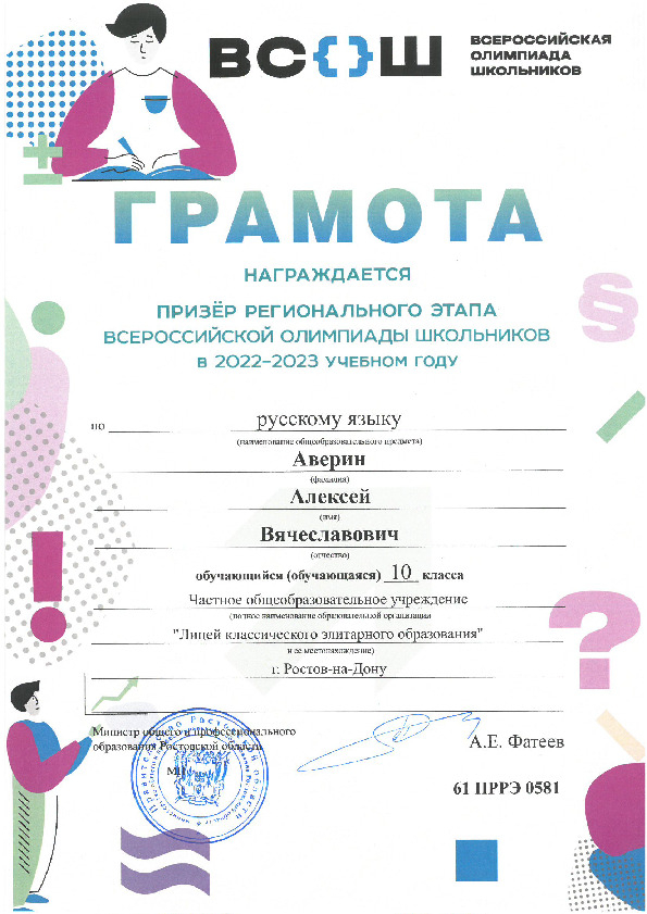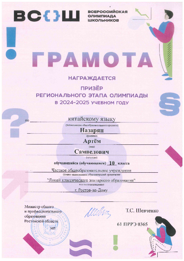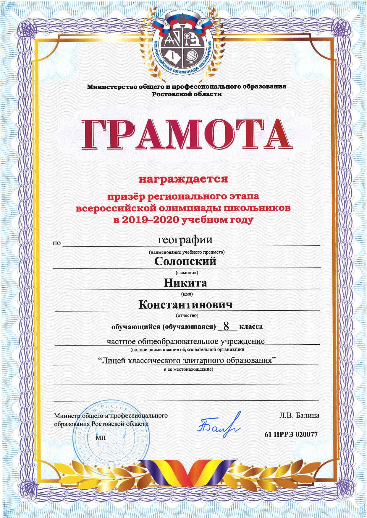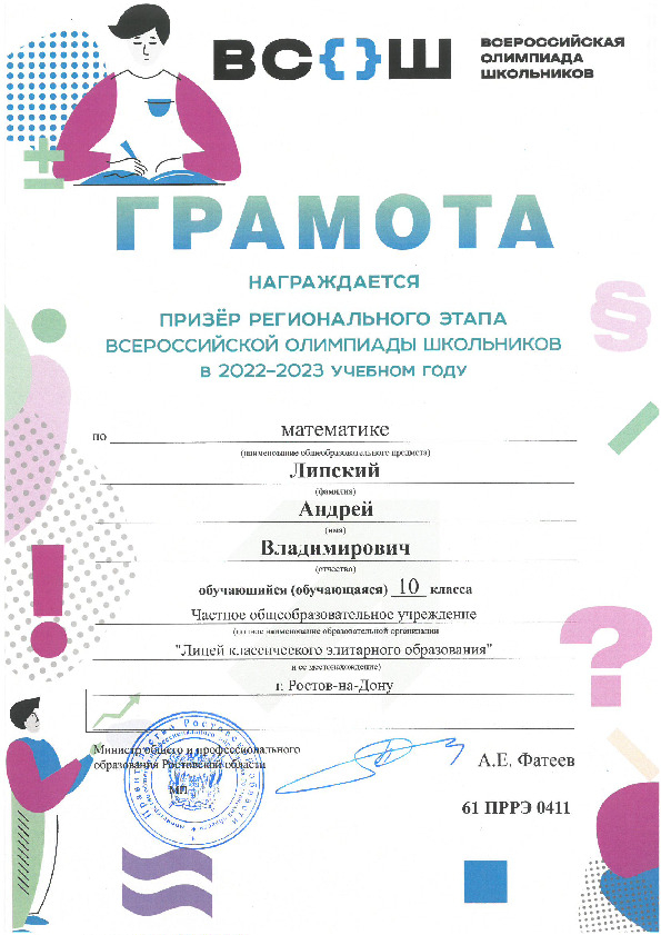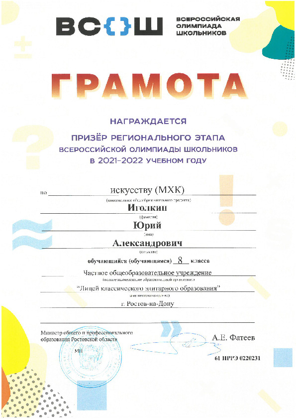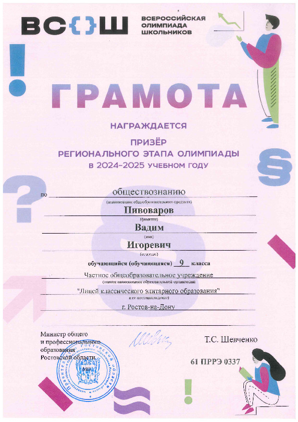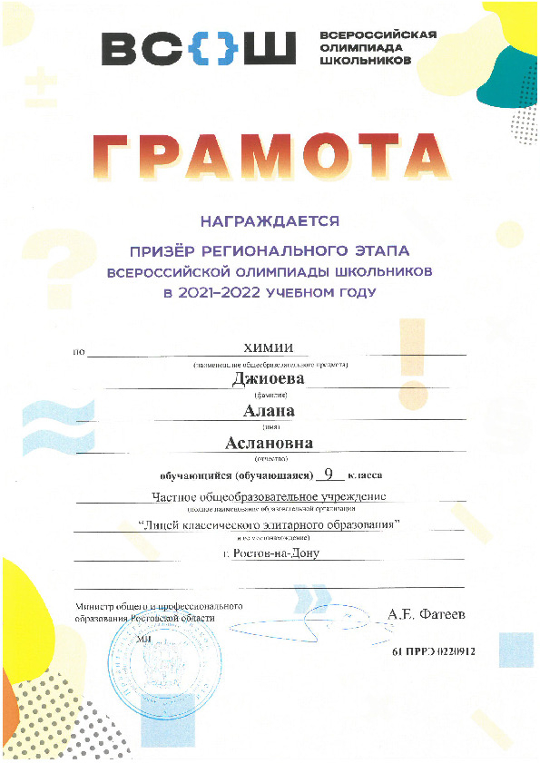 Призёры Регионального этапа Всероссийской олимпиады школьников