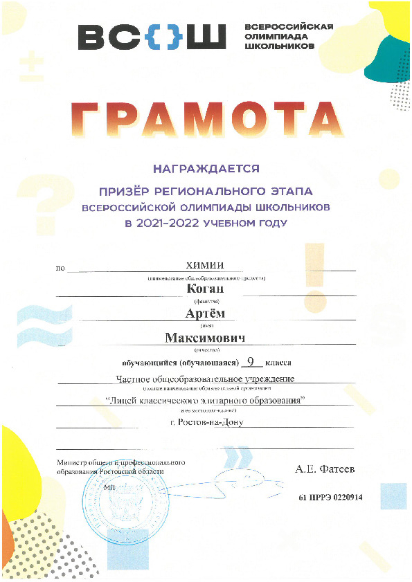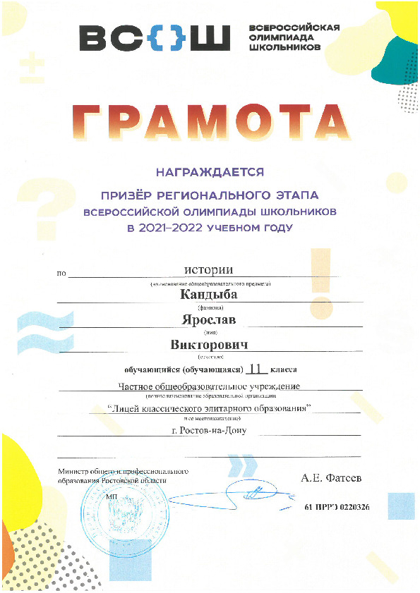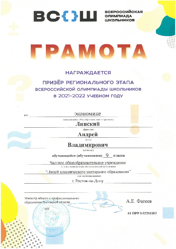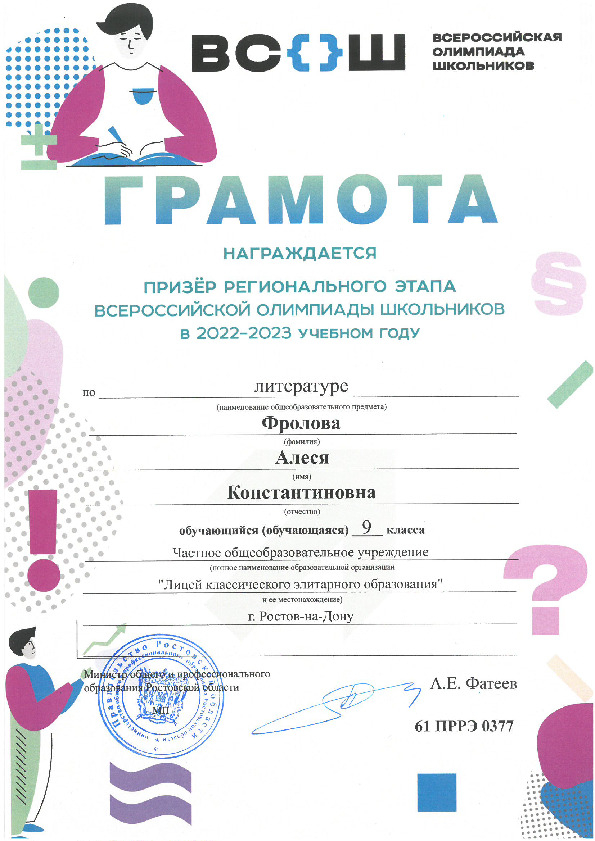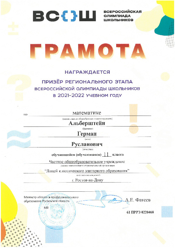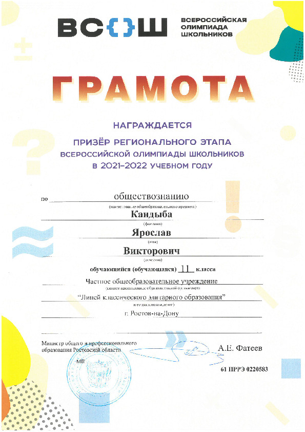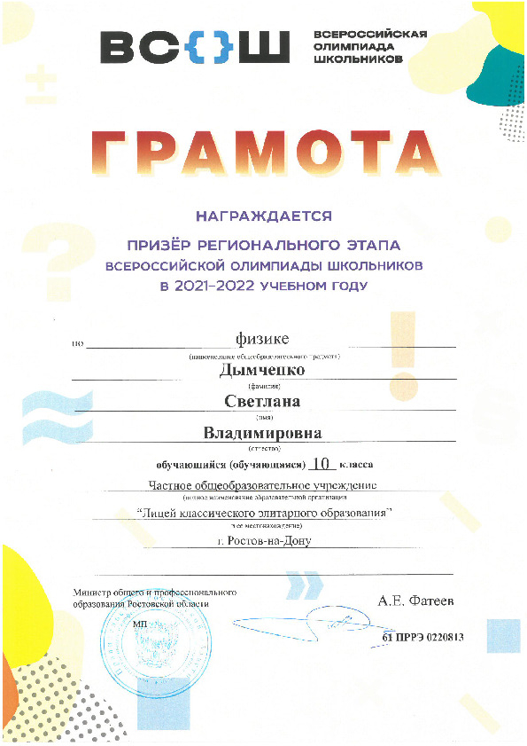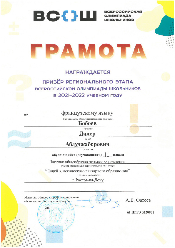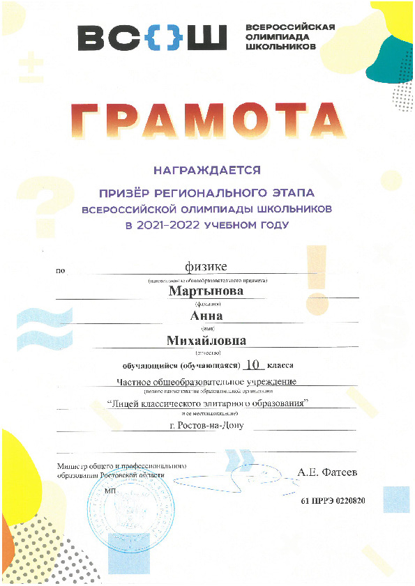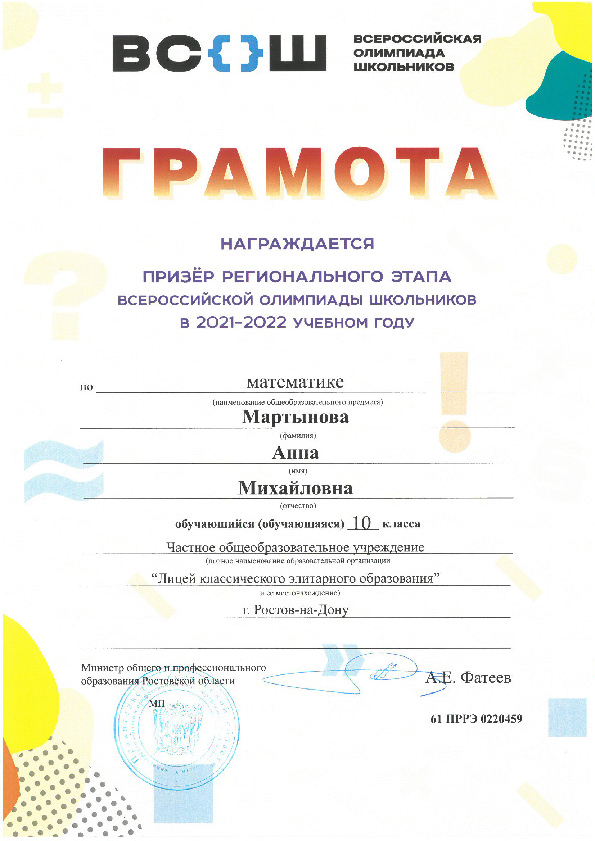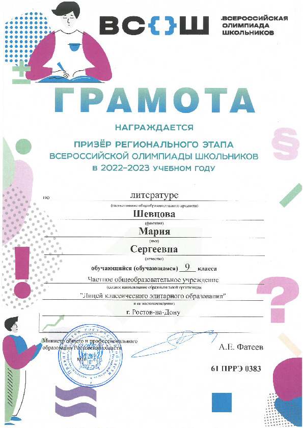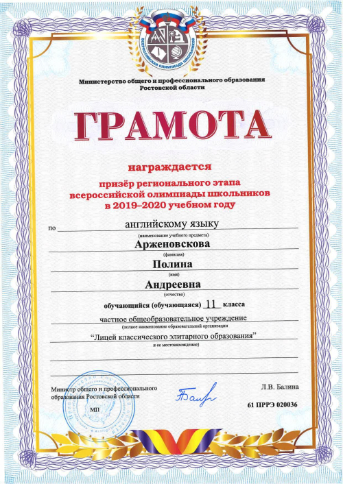 Призёры Регионального этапа Всероссийской олимпиады школьников