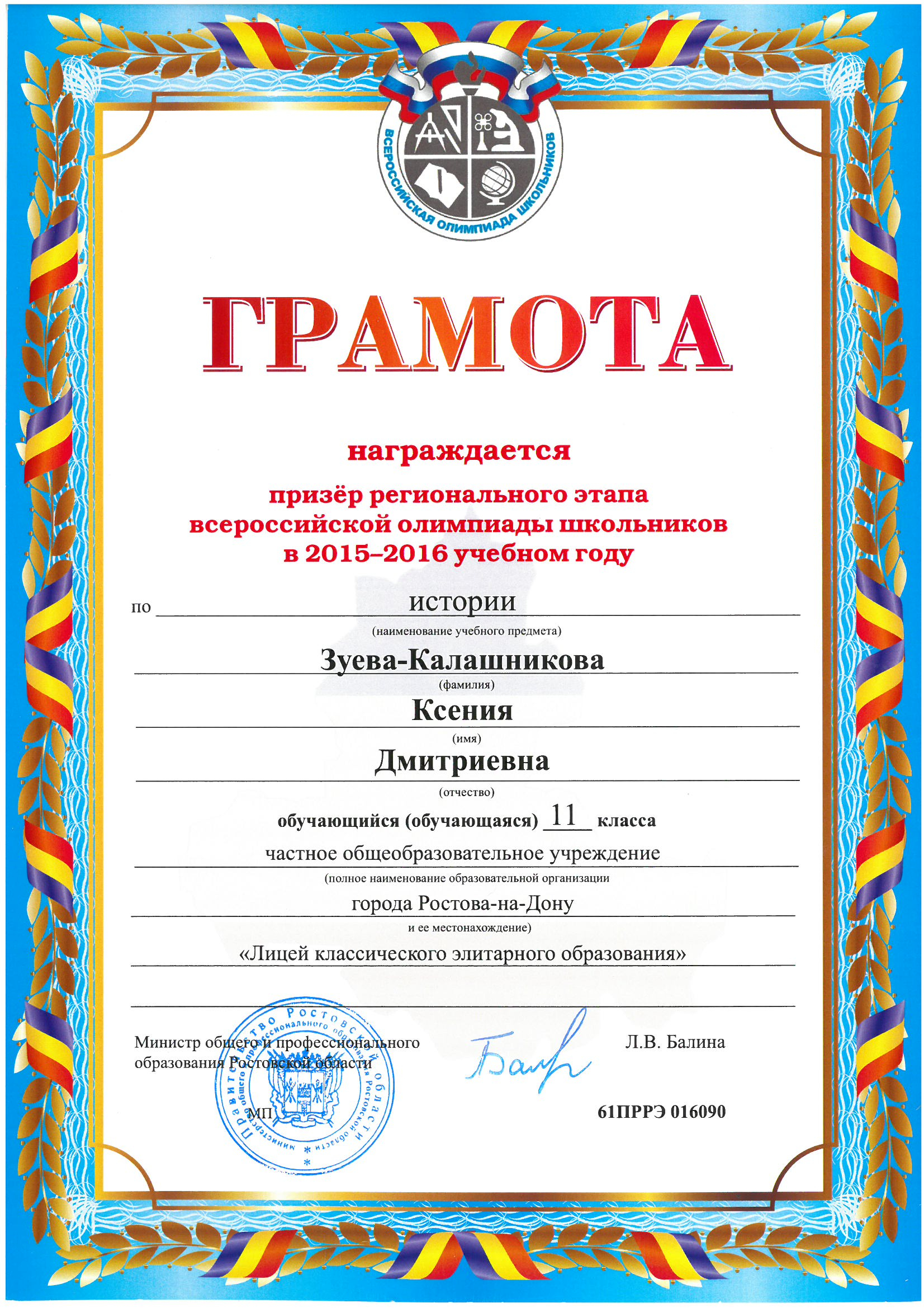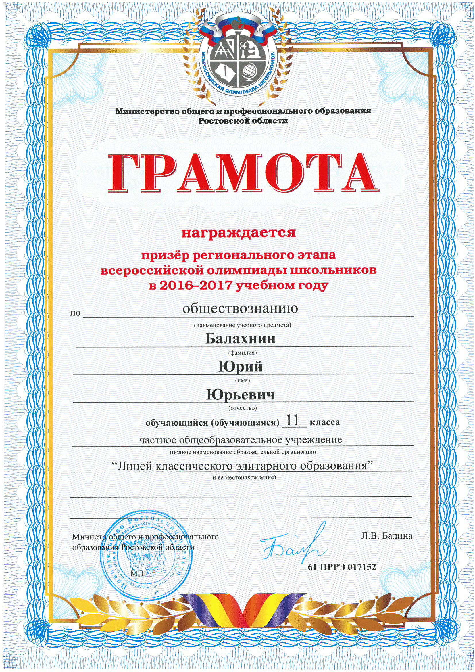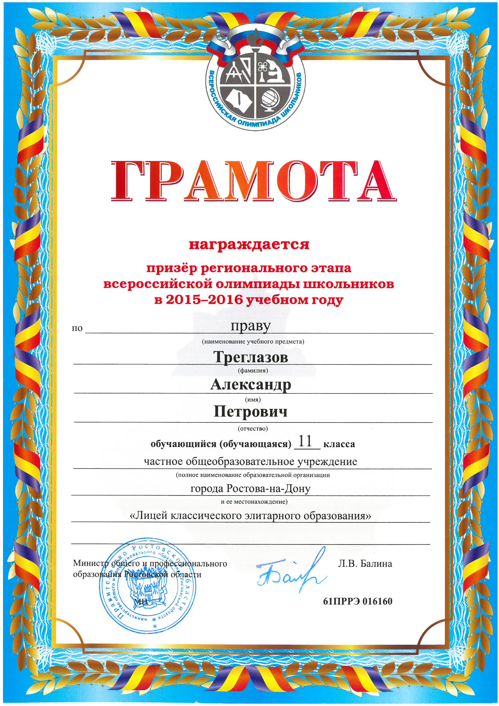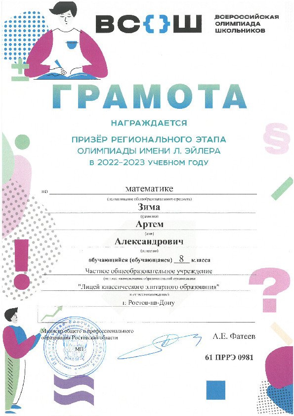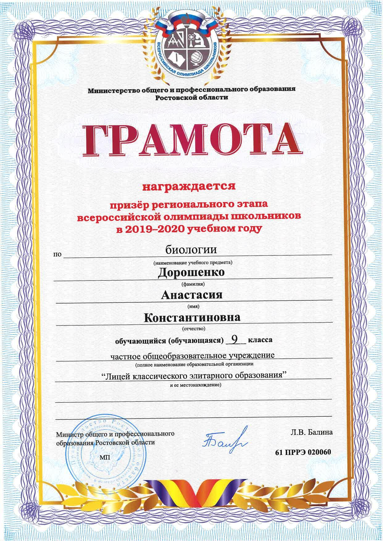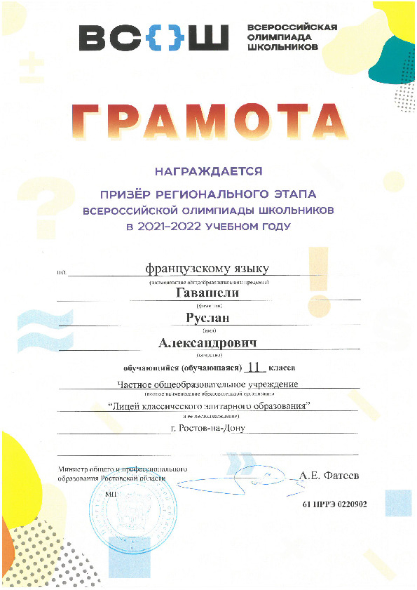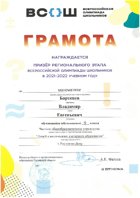 Призёры Регионального этапа Всероссийской олимпиады школьников
