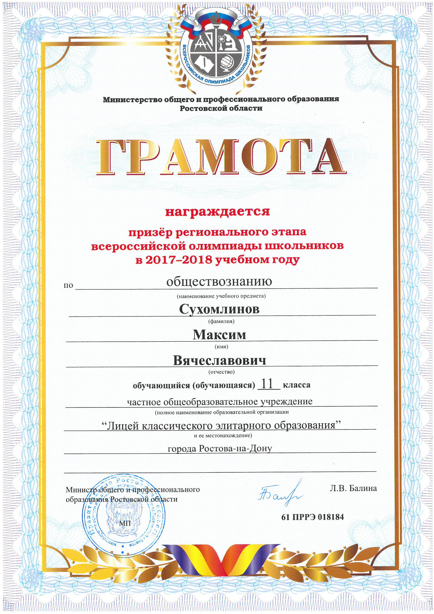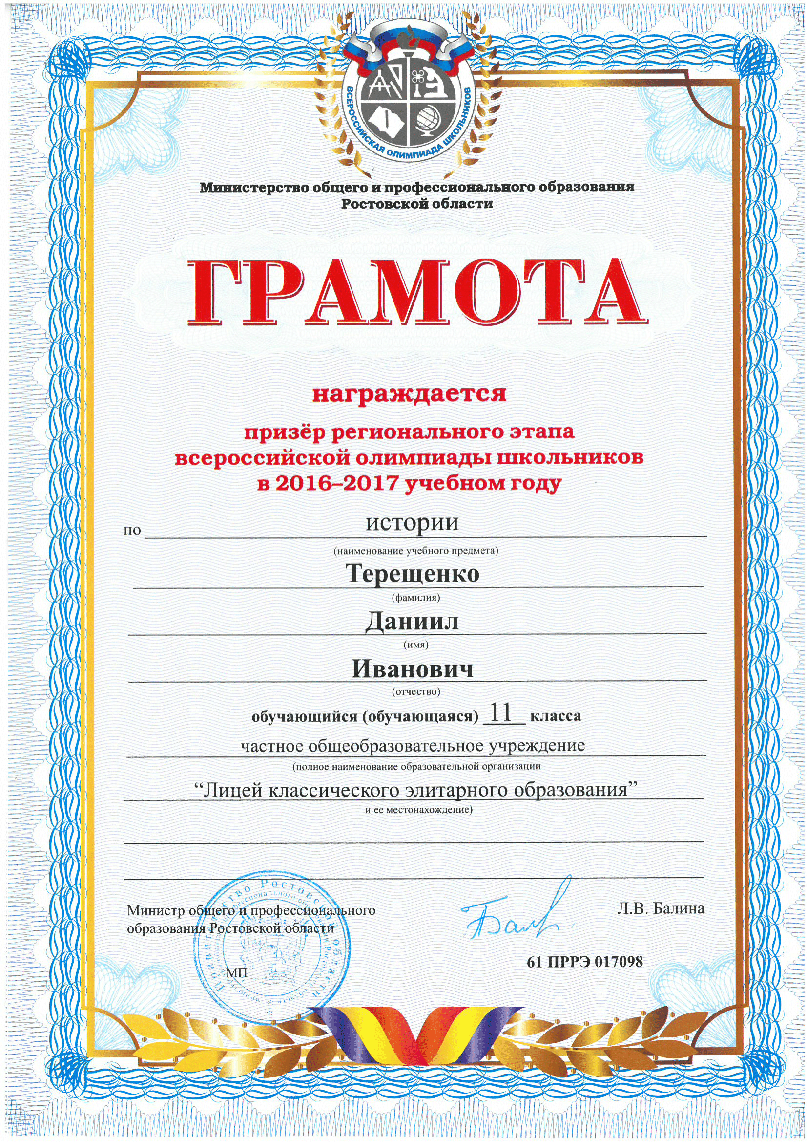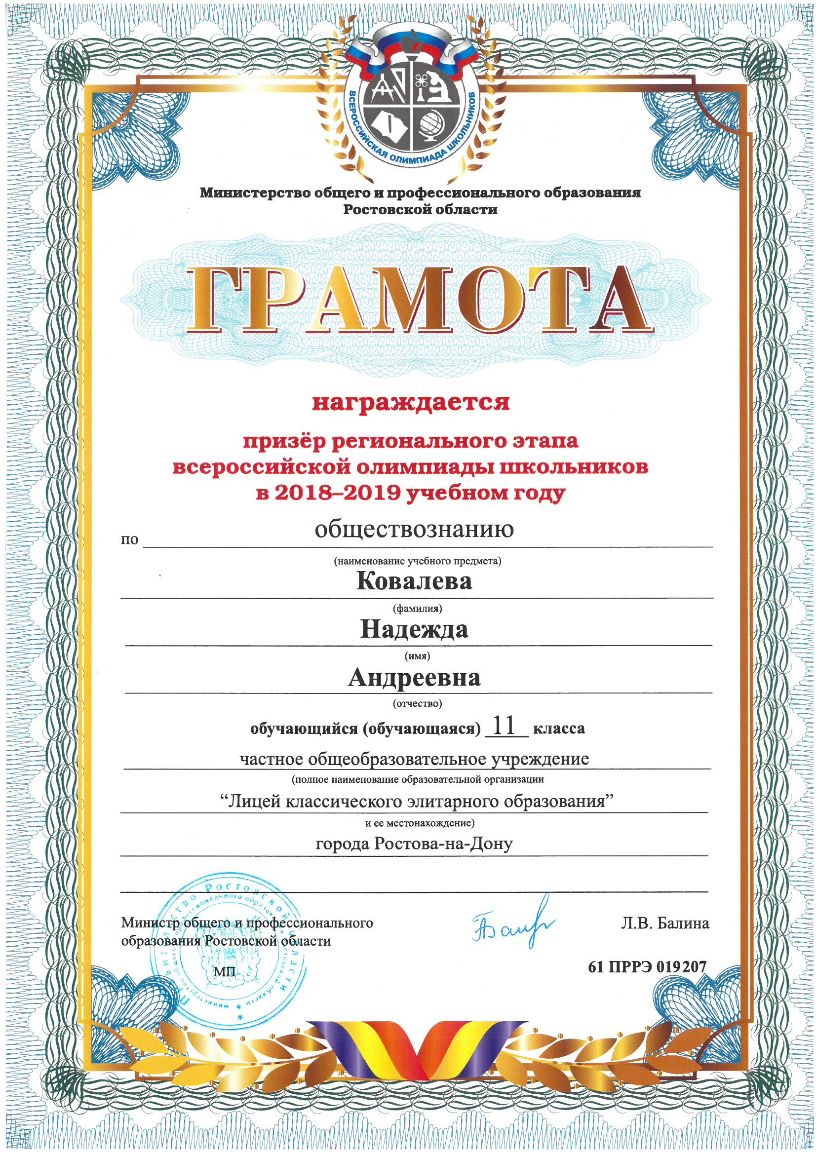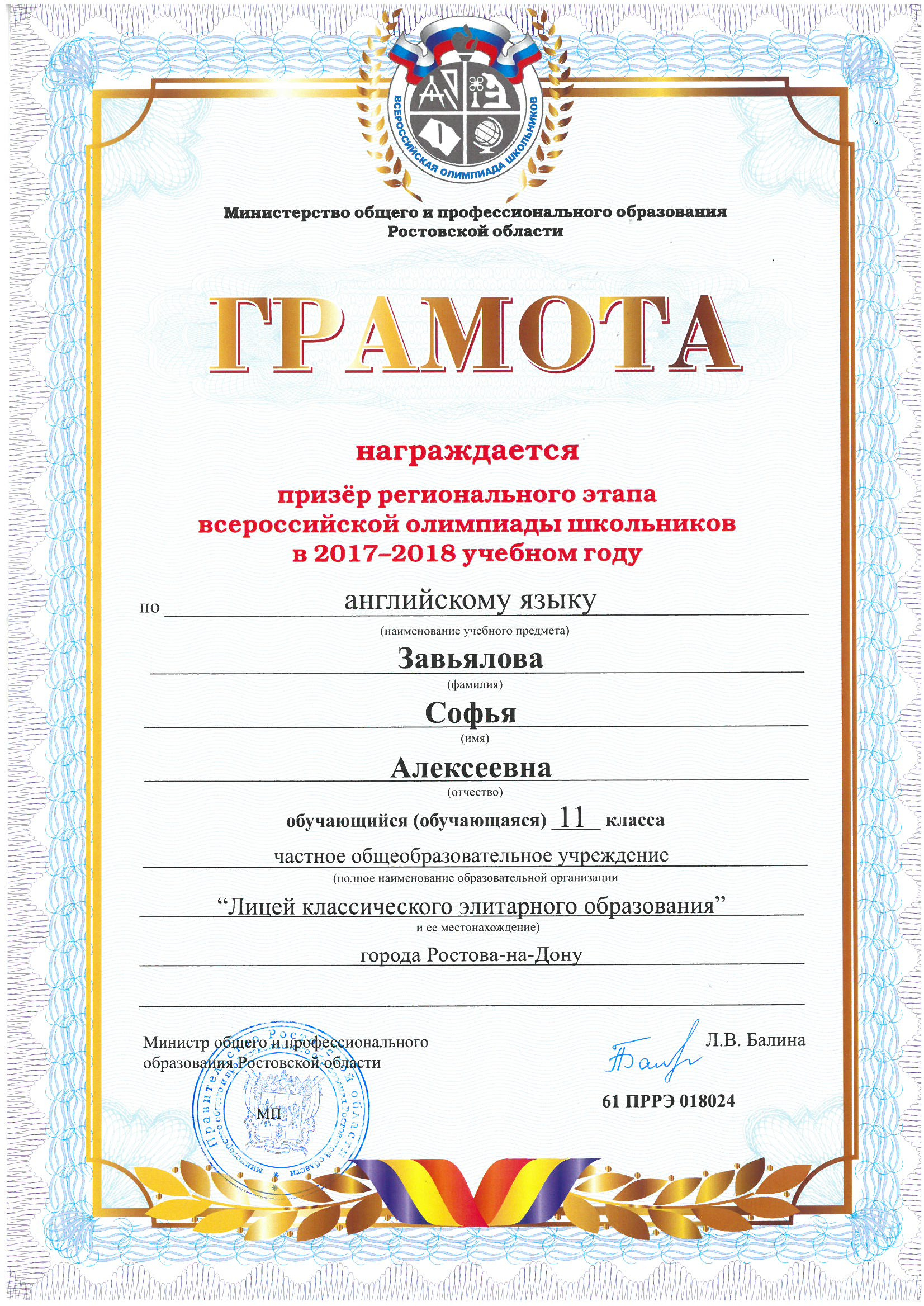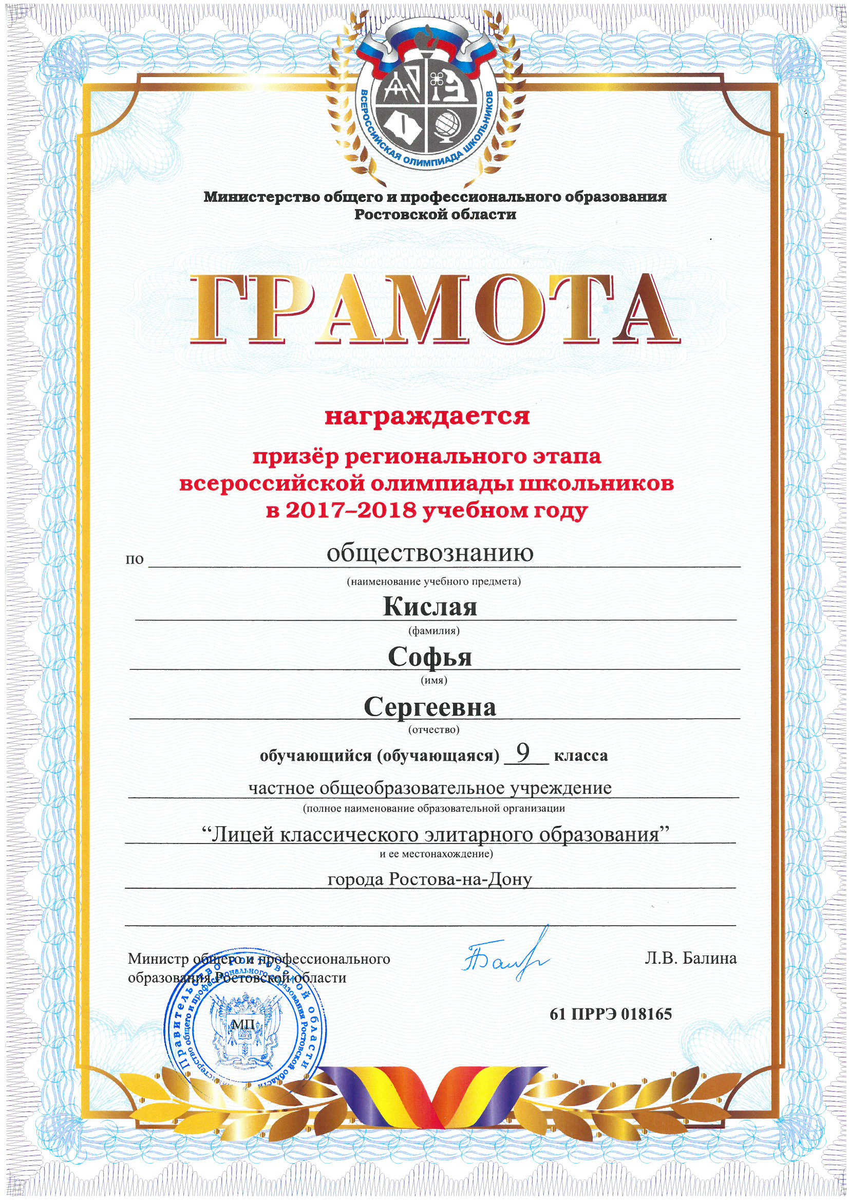 Призёры Регионального этапа Всероссийской олимпиады школьников