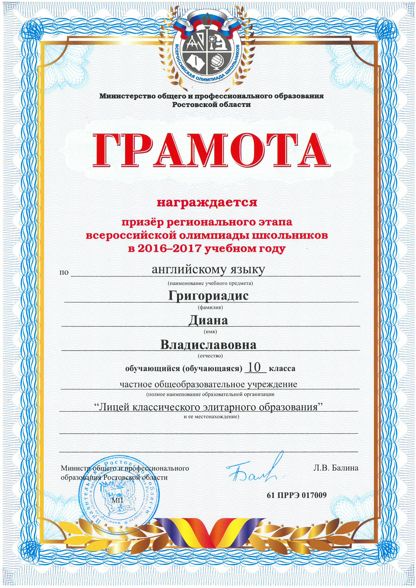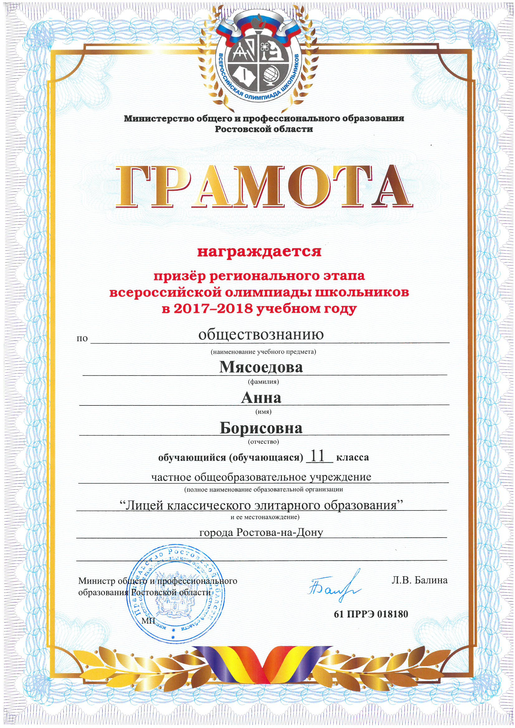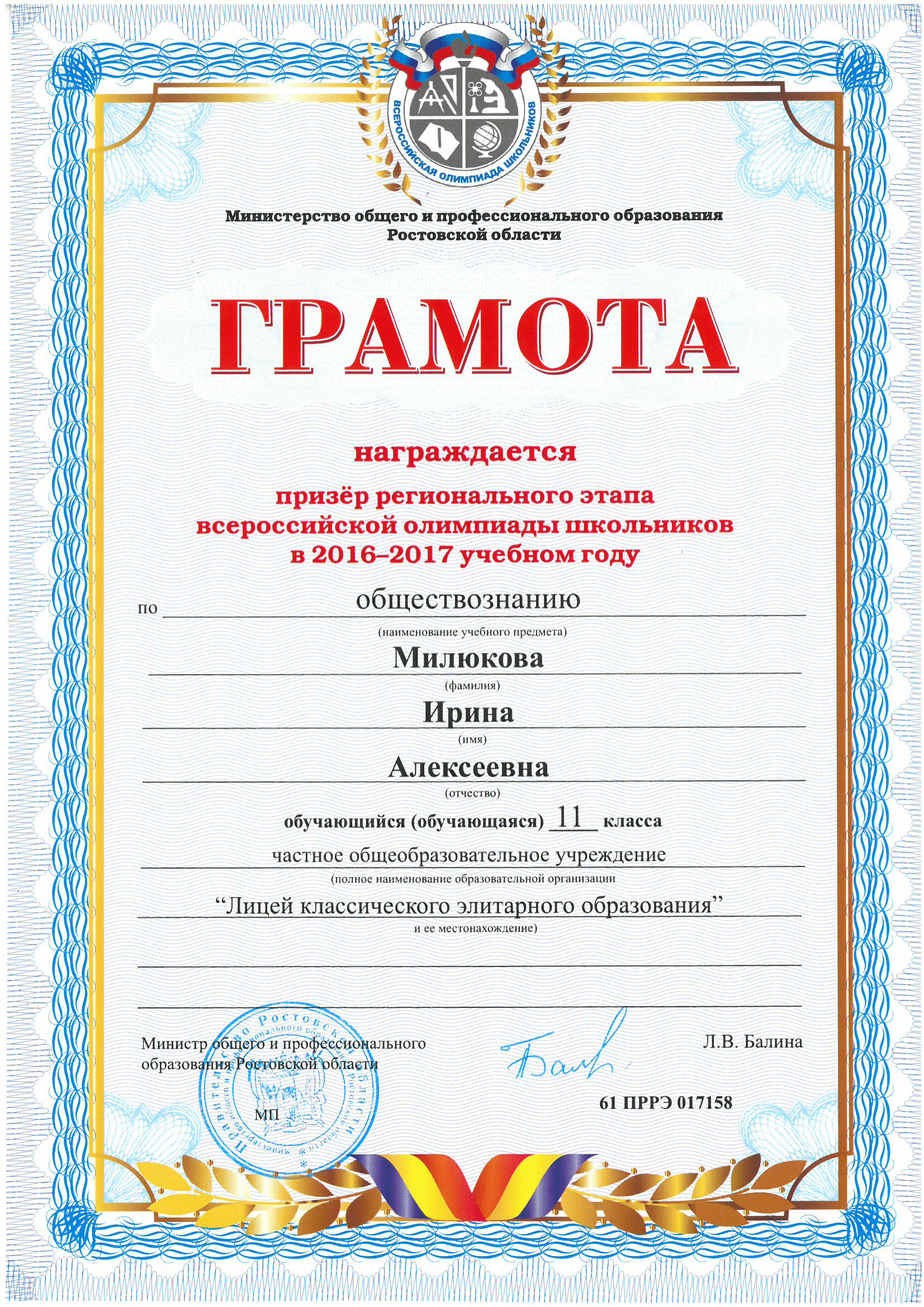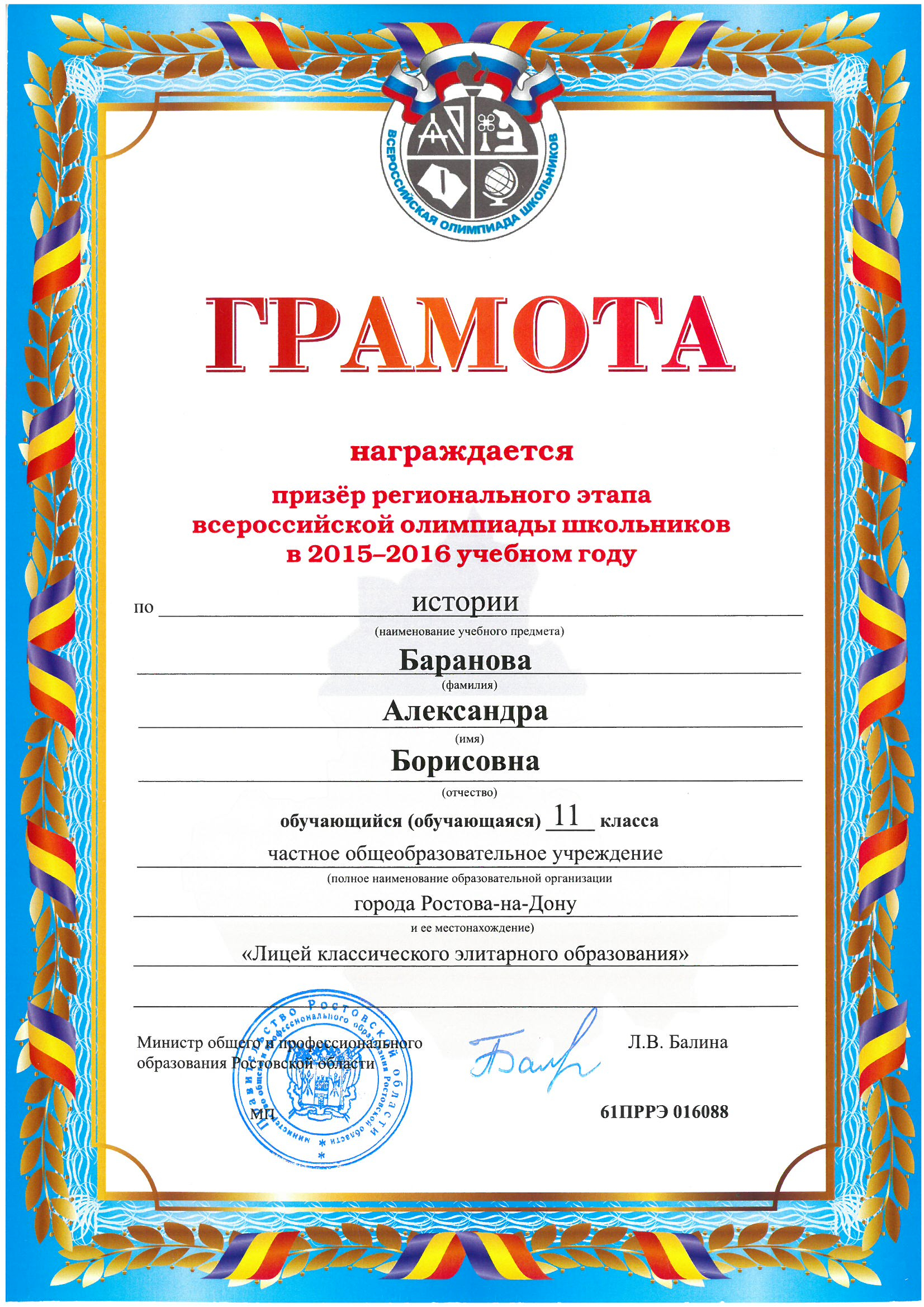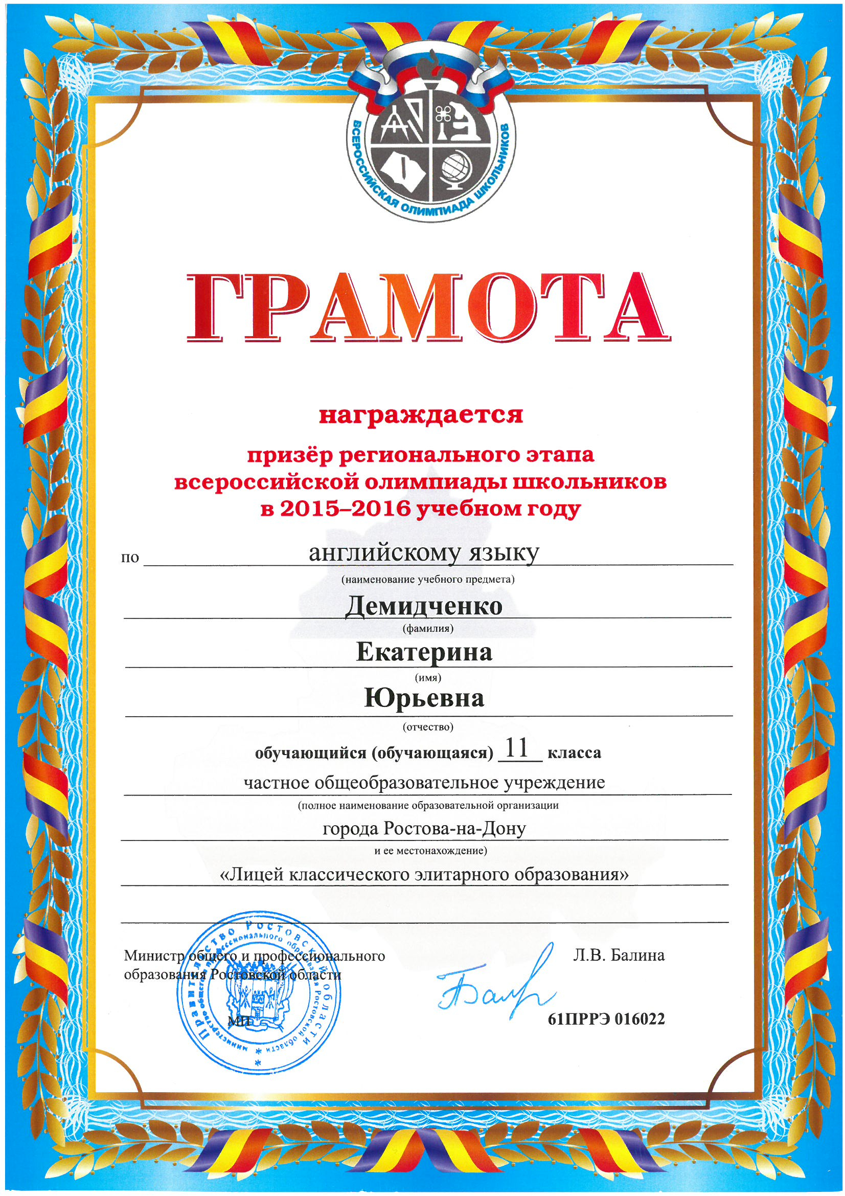 Призёры Регионального этапа Всероссийской олимпиады школьников