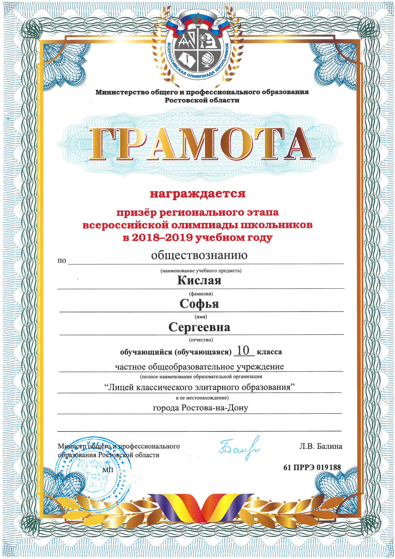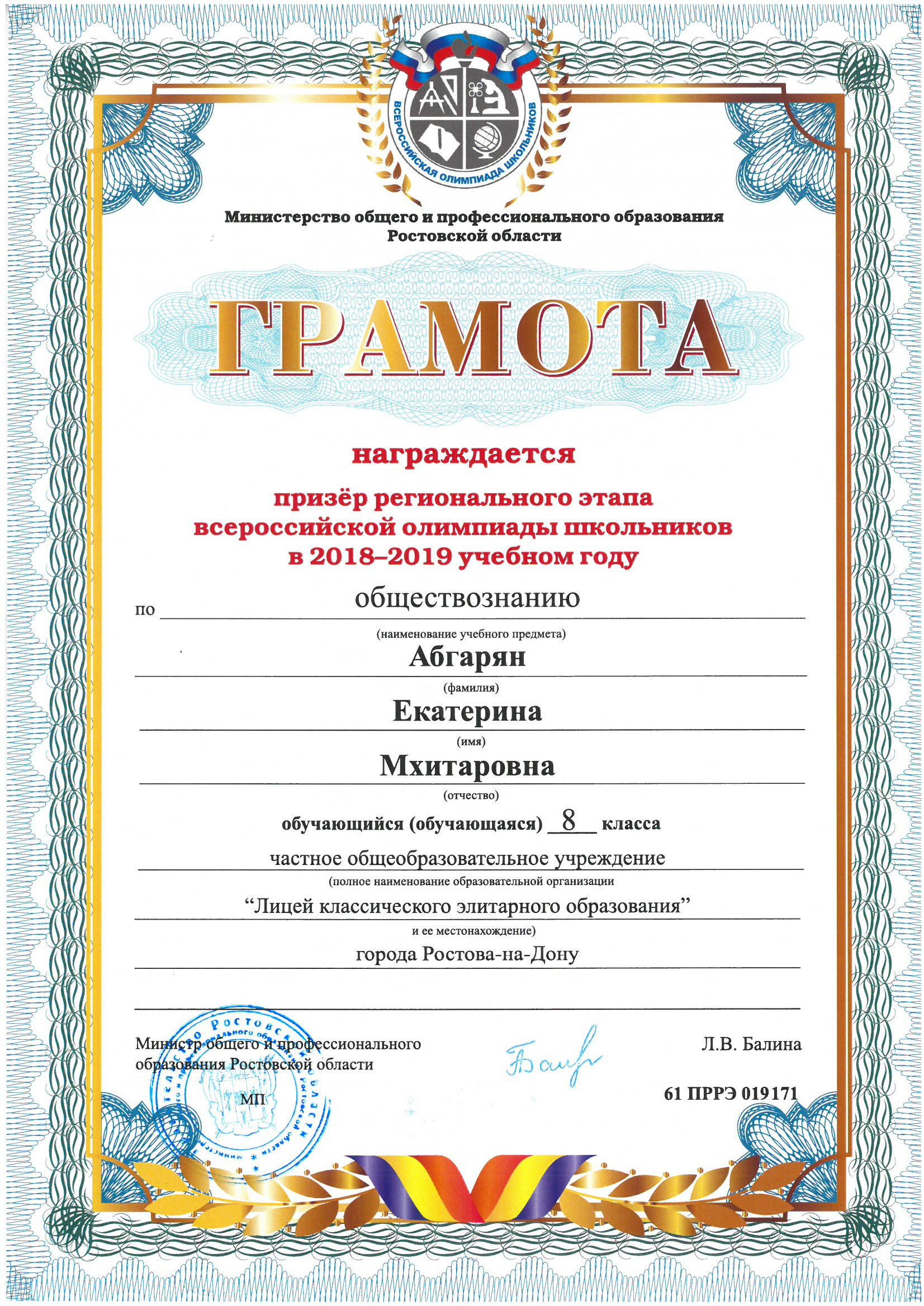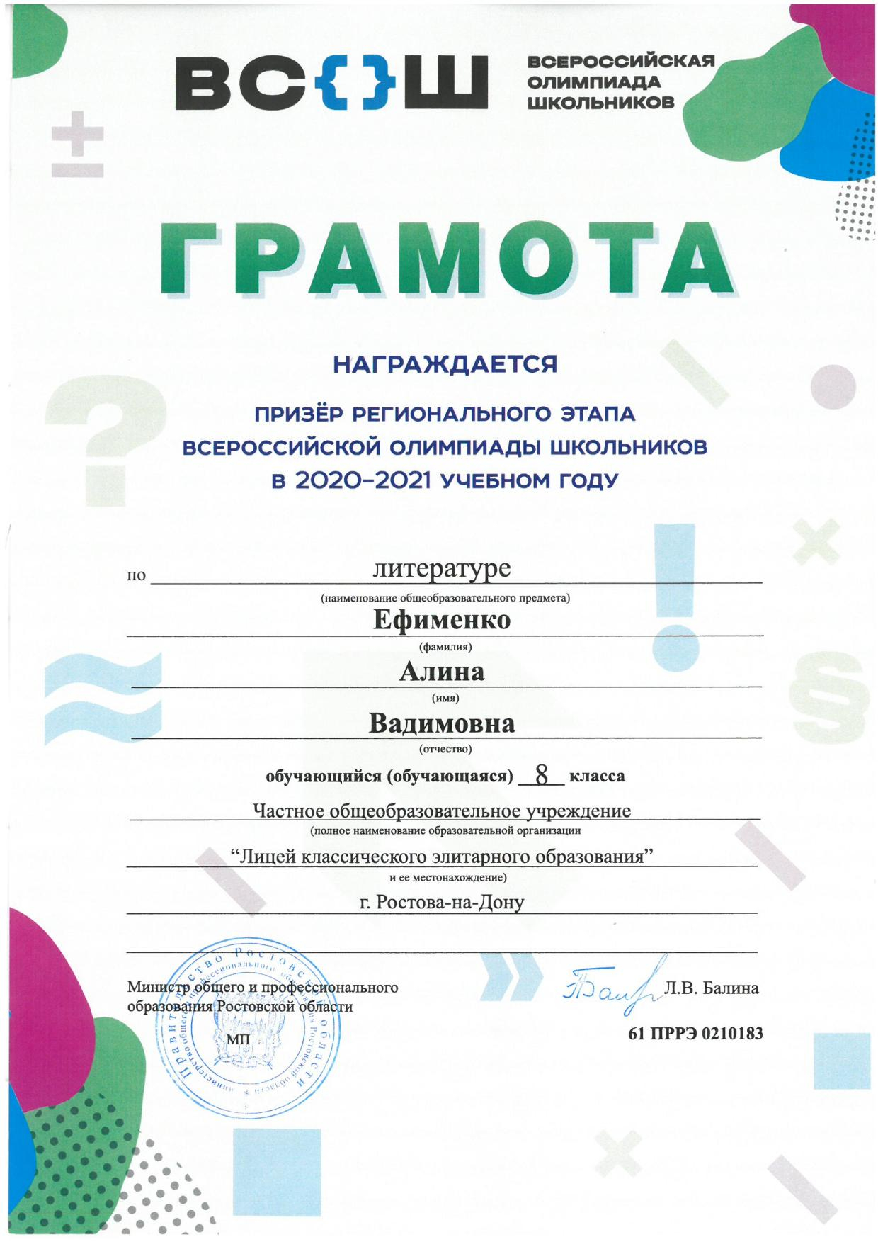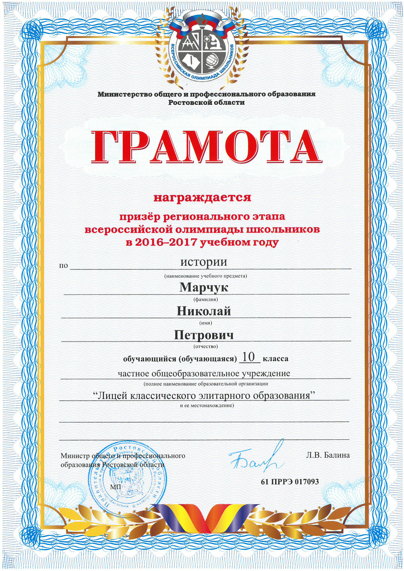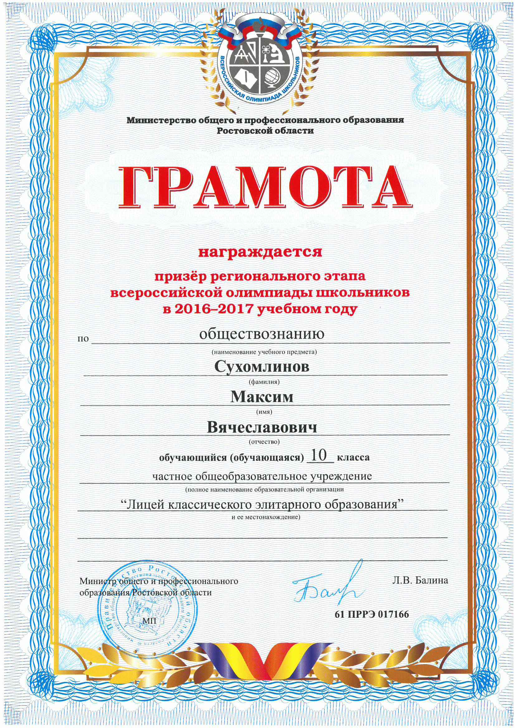 Призёры Регионального этапа Всероссийской олимпиады школьников