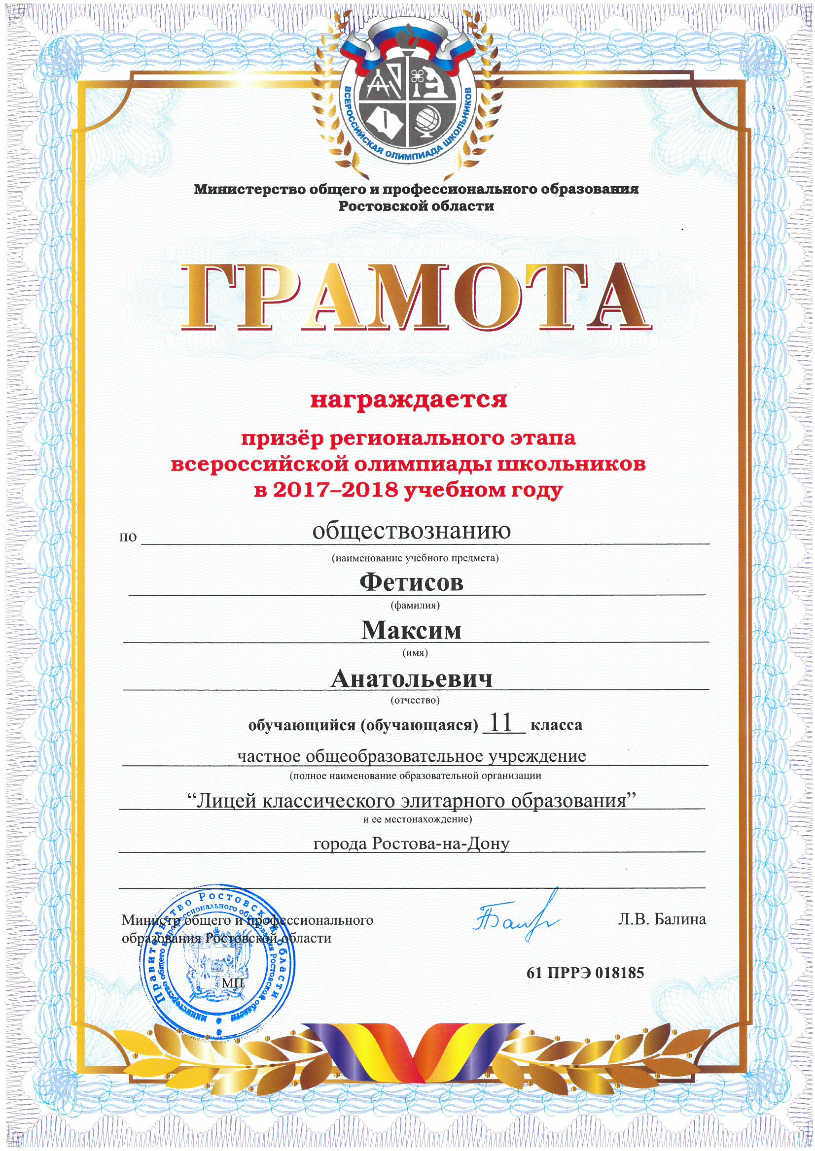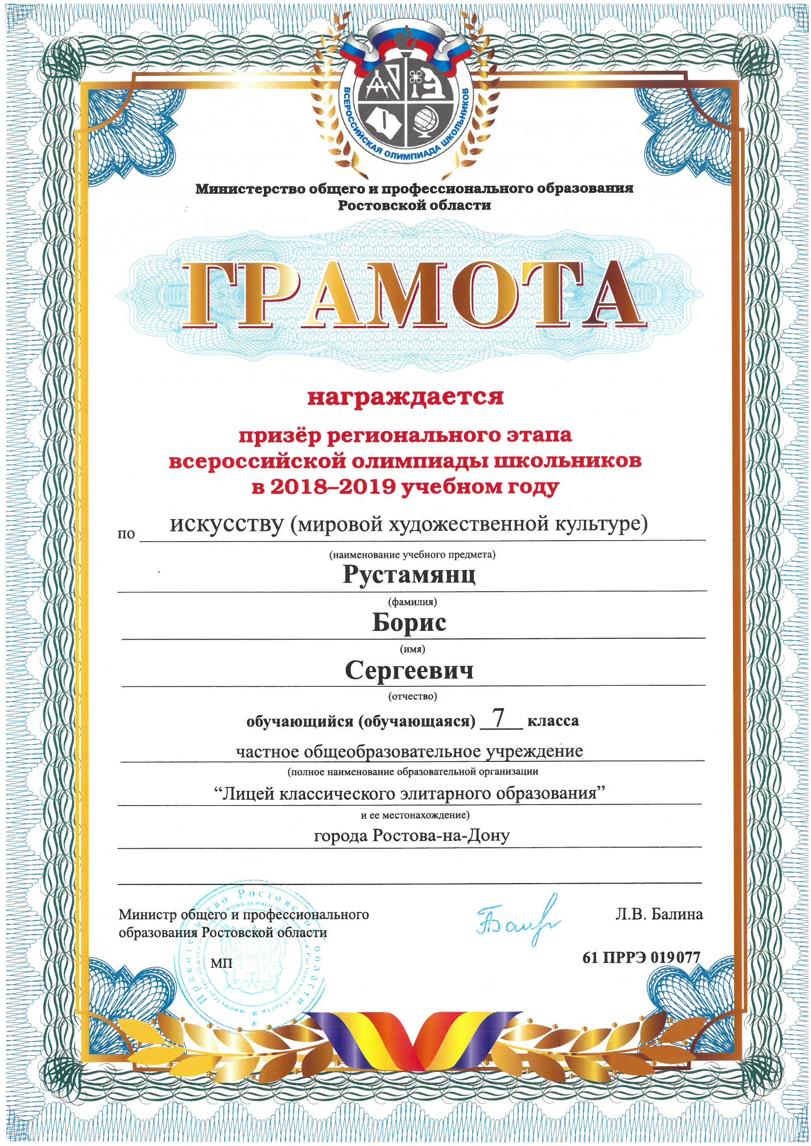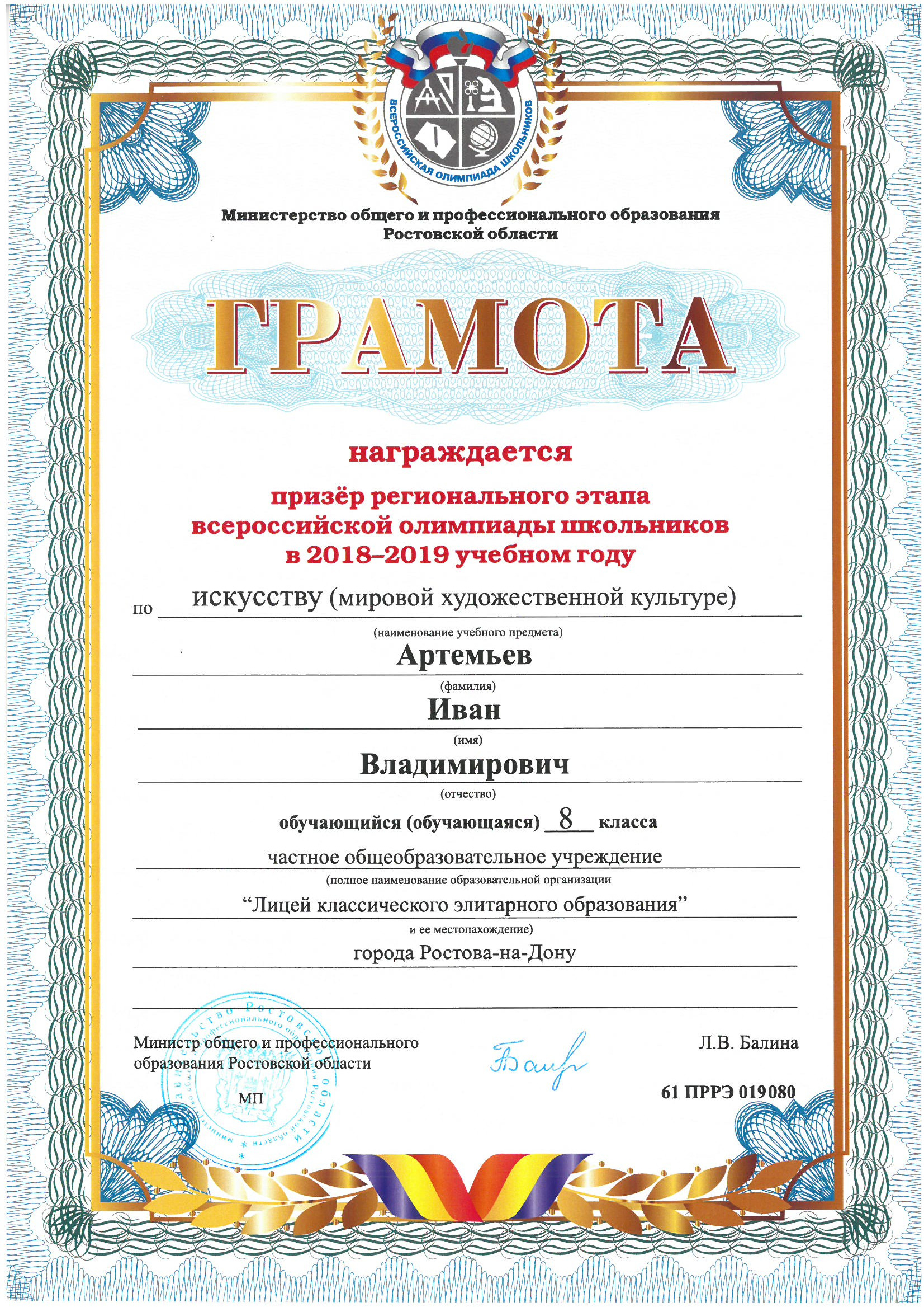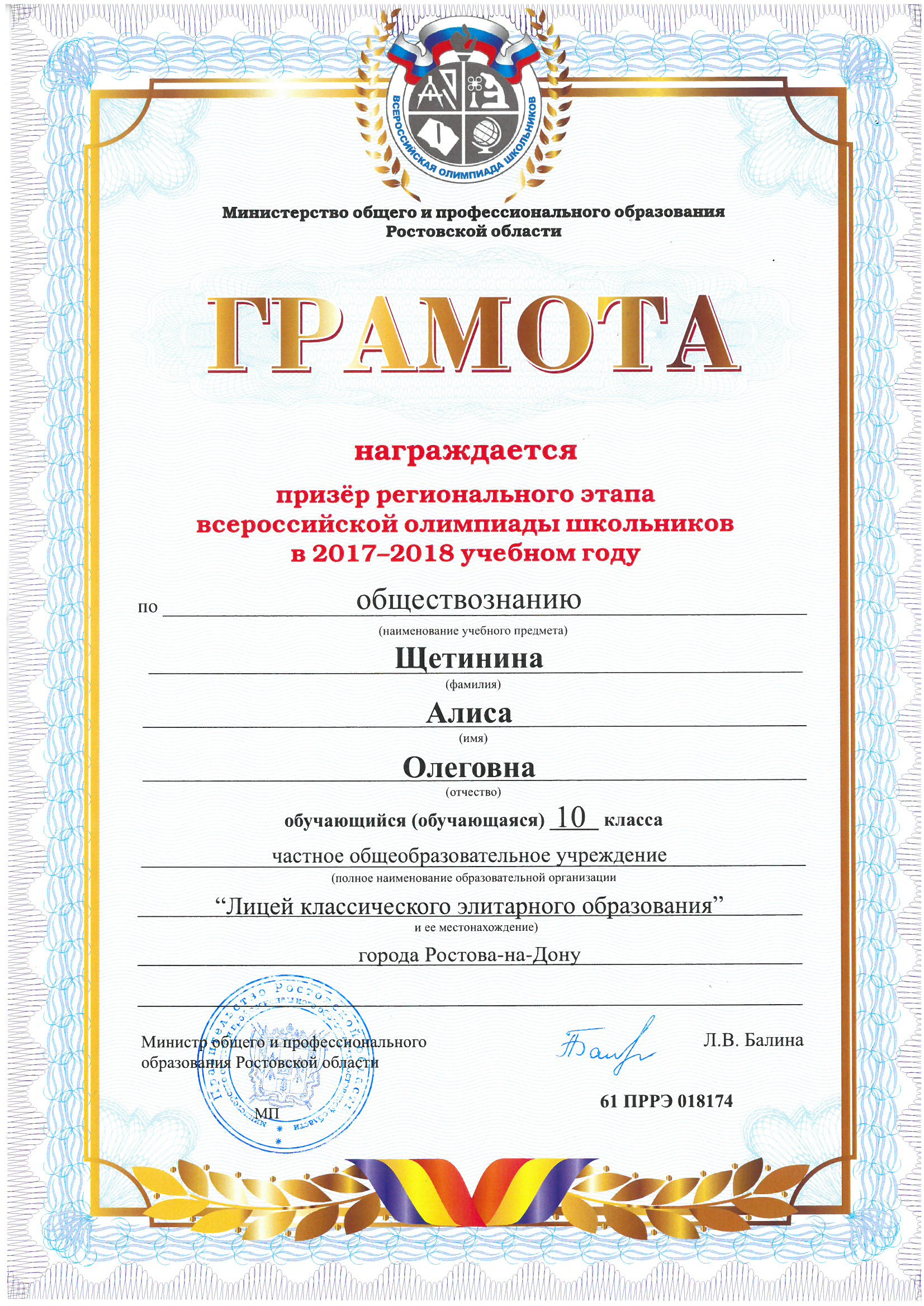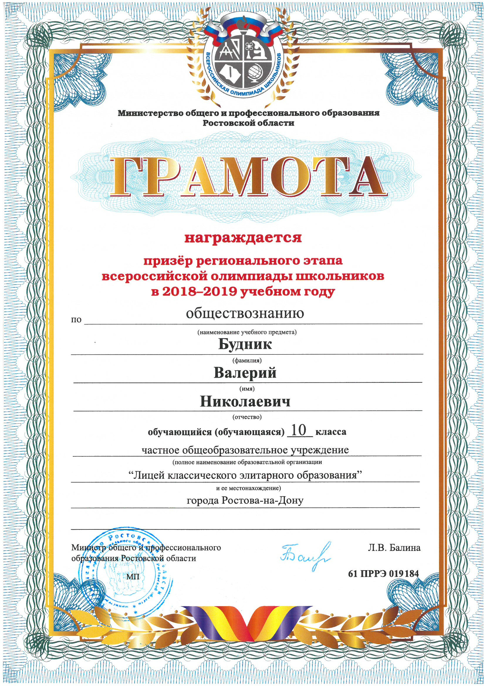 Призёры Регионального этапа Всероссийской олимпиады школьников