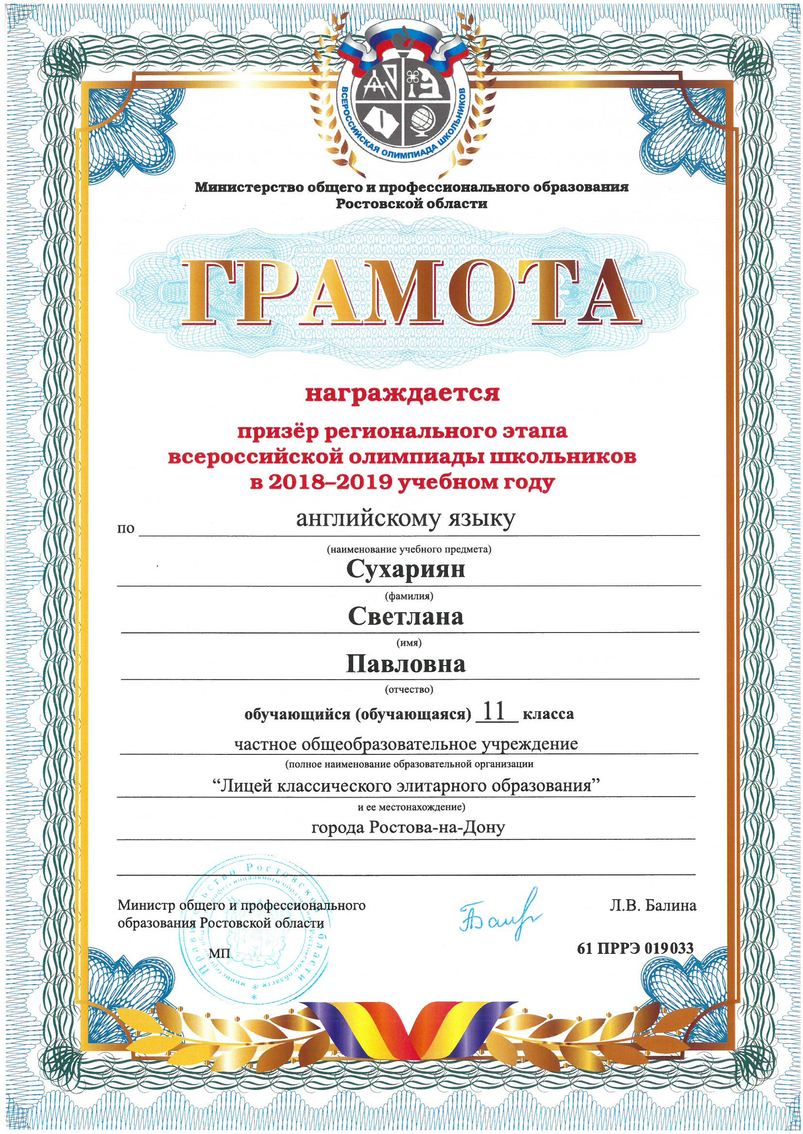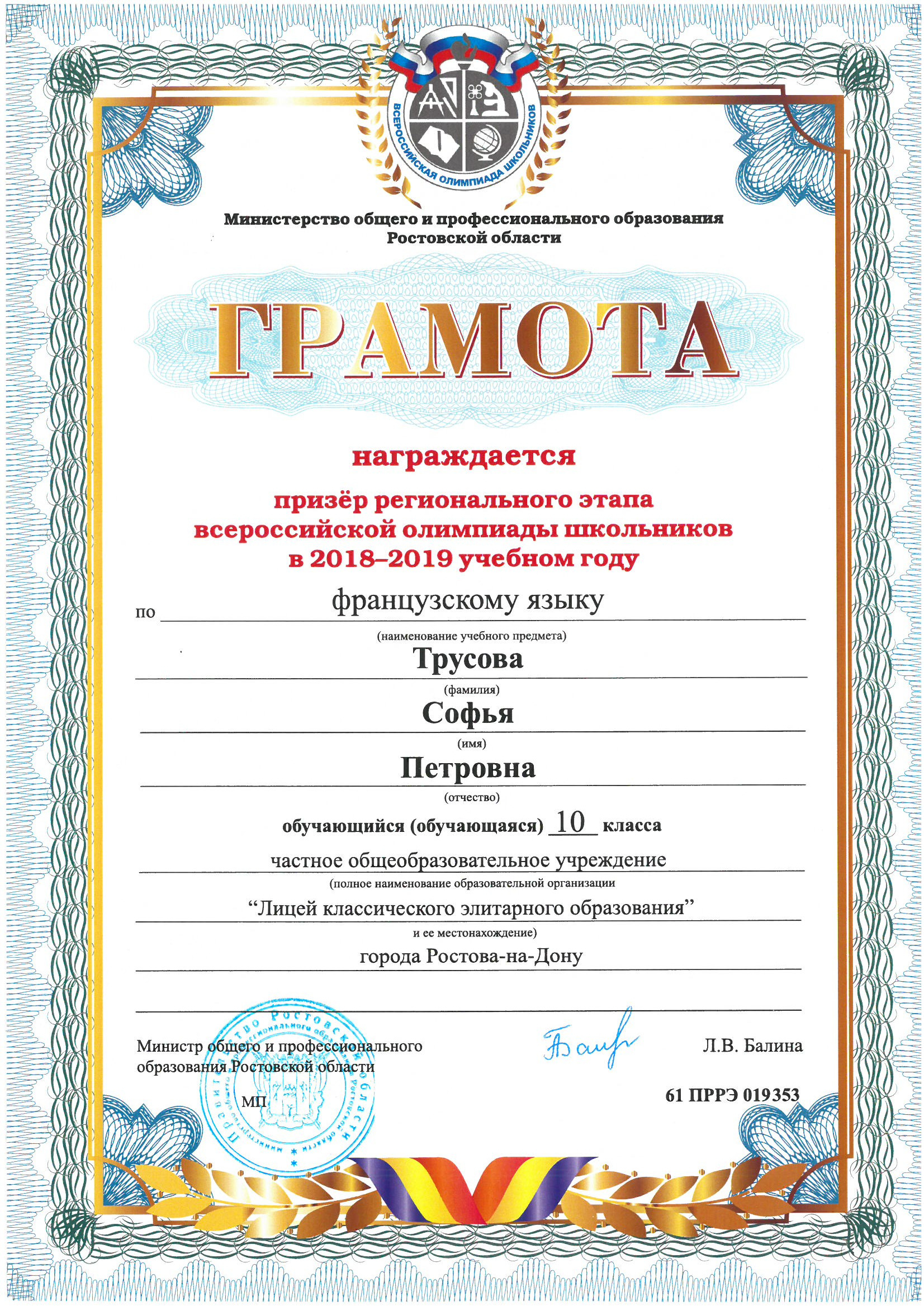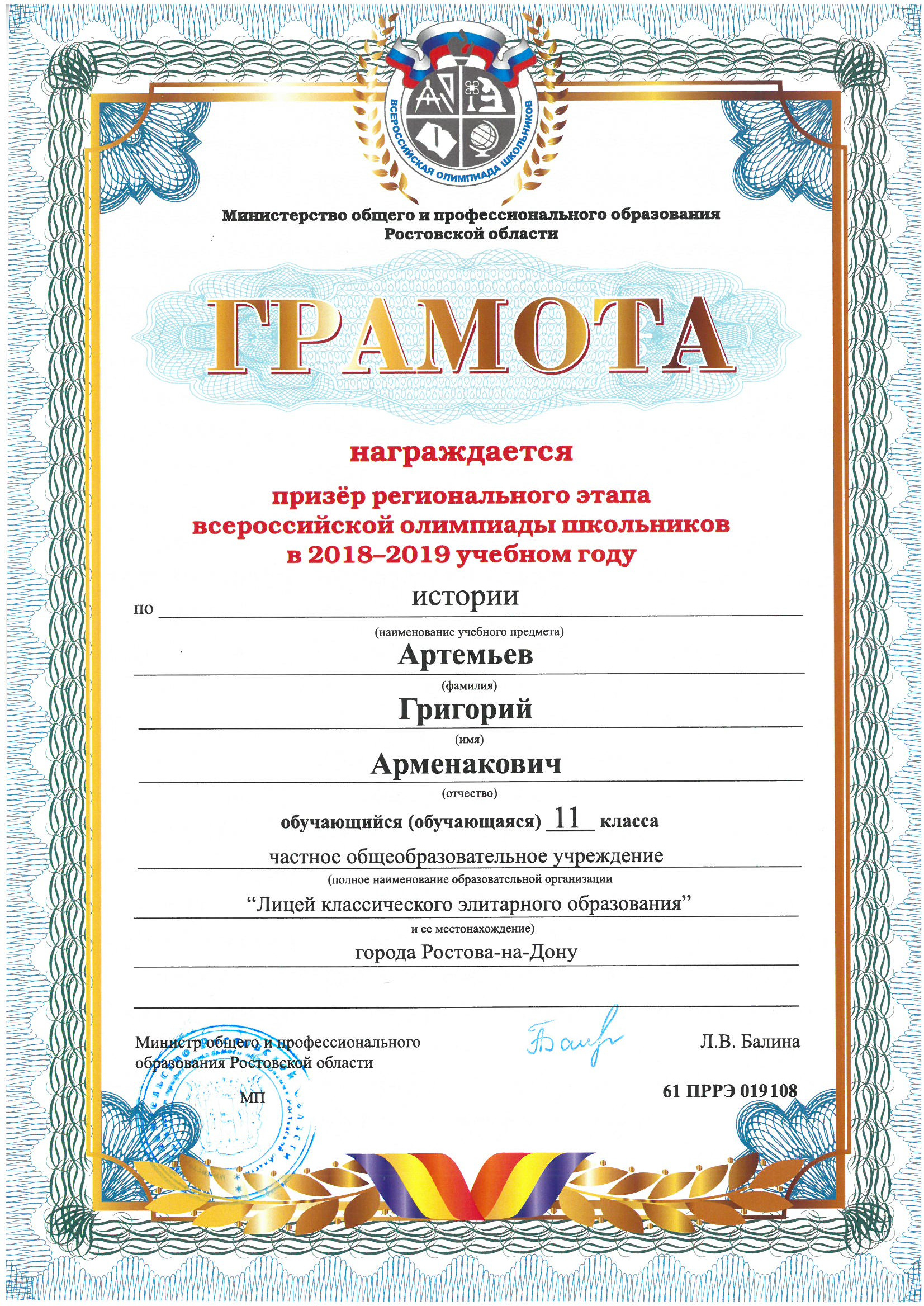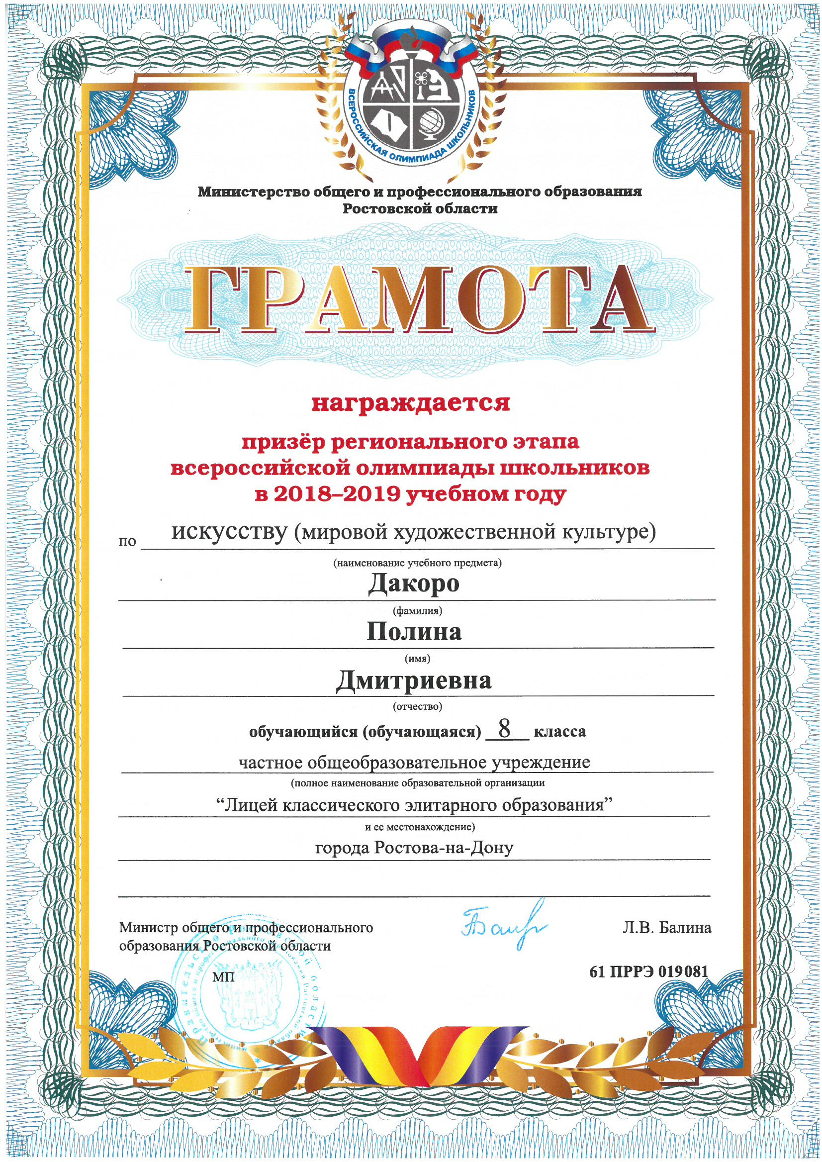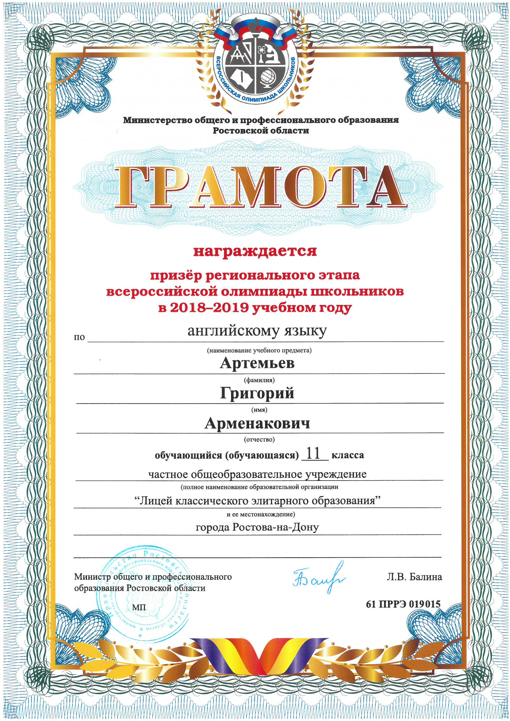 Призёры Регионального этапа Всероссийской олимпиады школьников