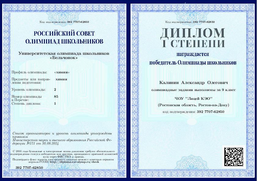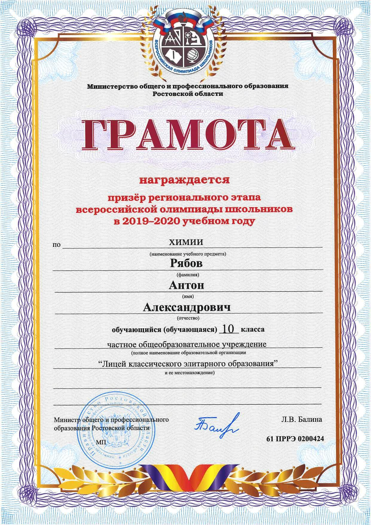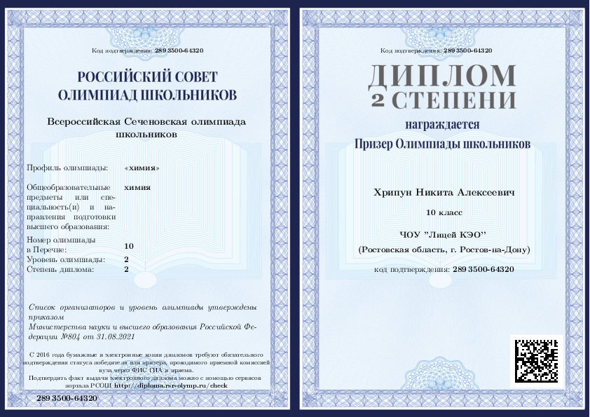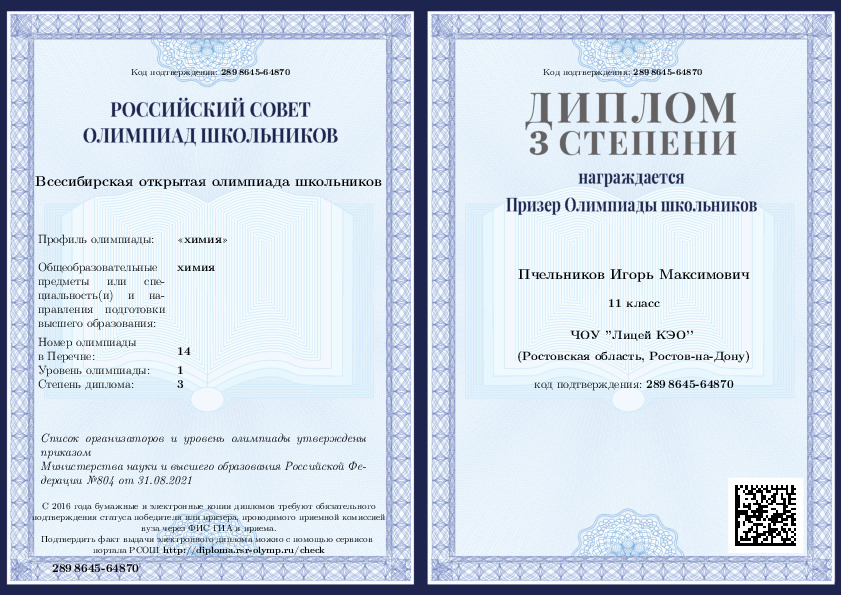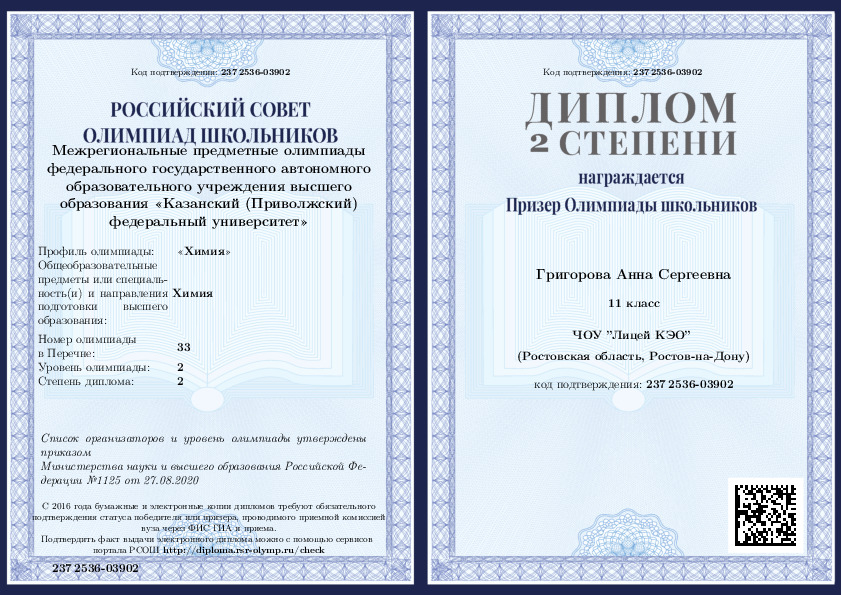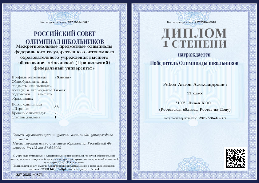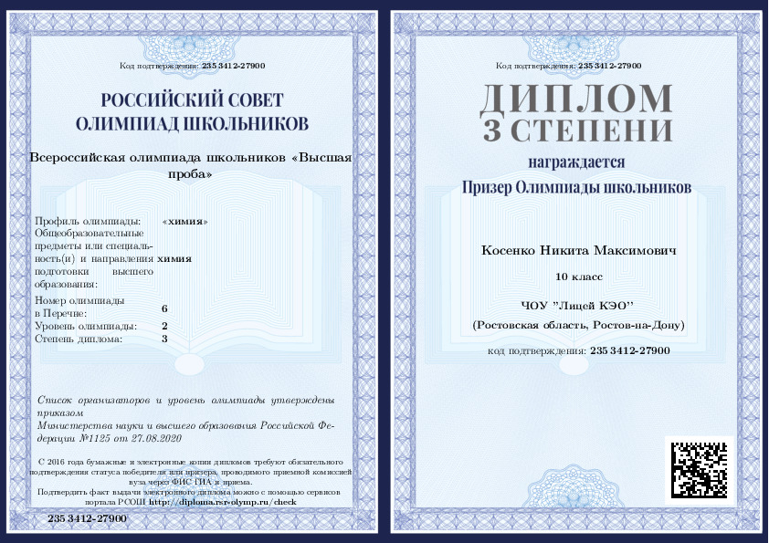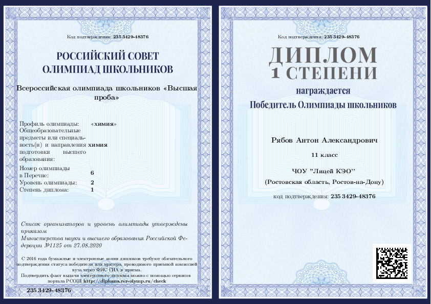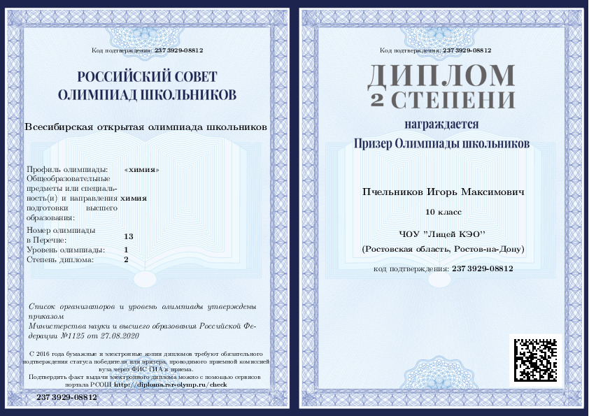 2020, Химия -