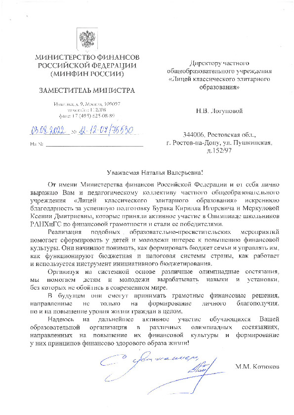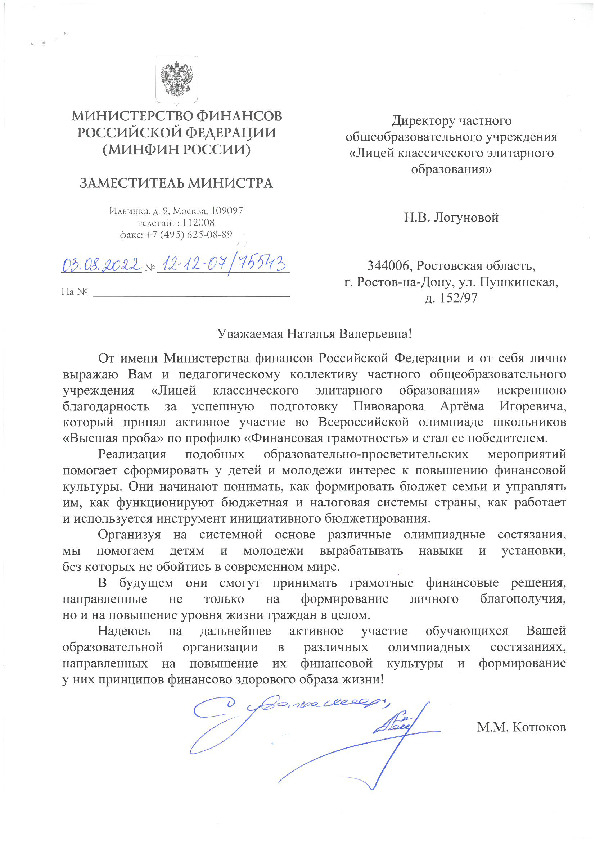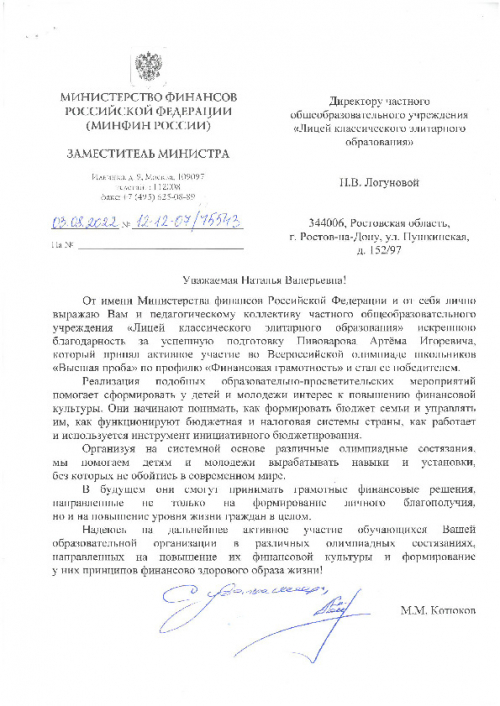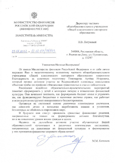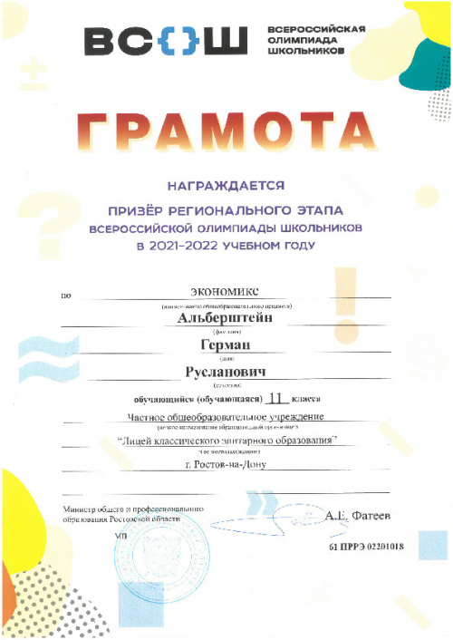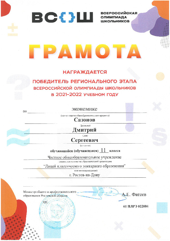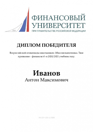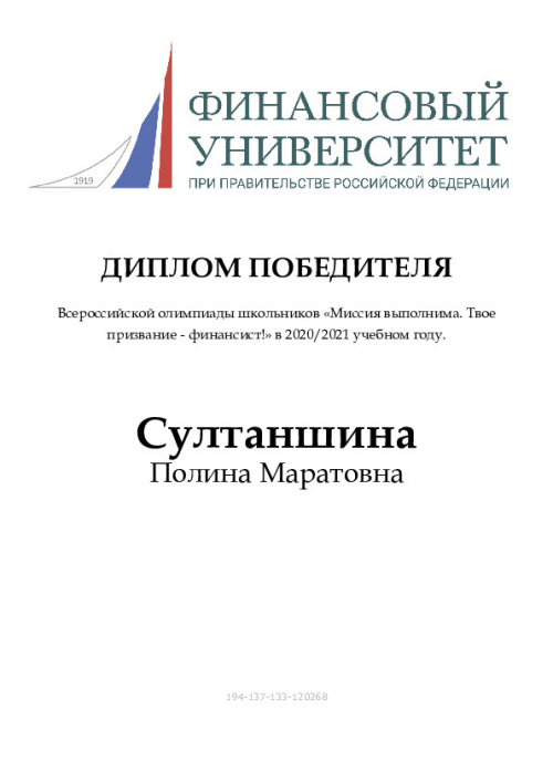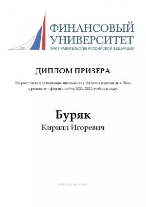 2022, Факультет Экономики и Бизнеса (программа Корпоративные Финансы) -
