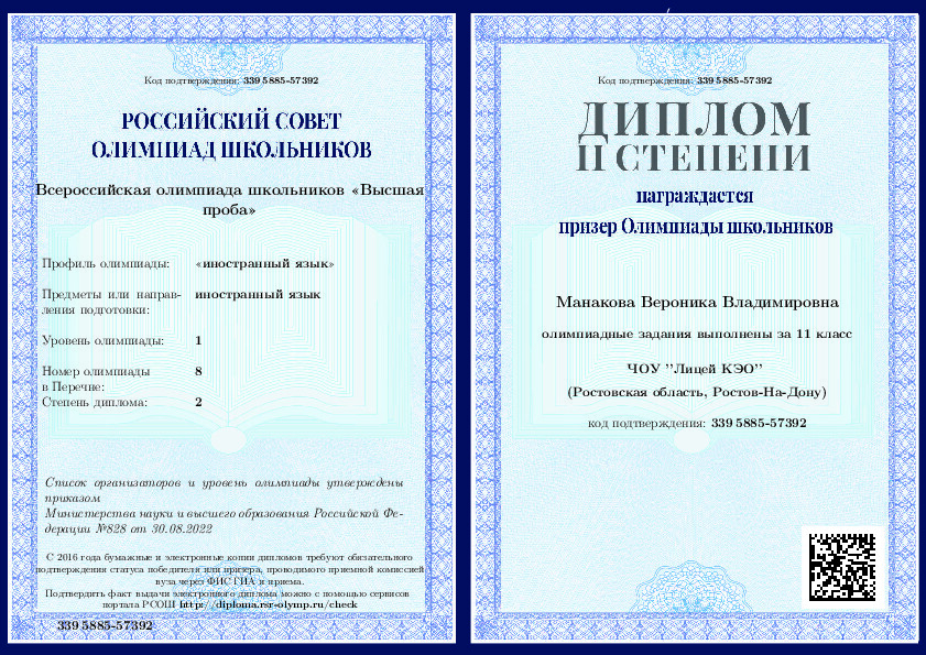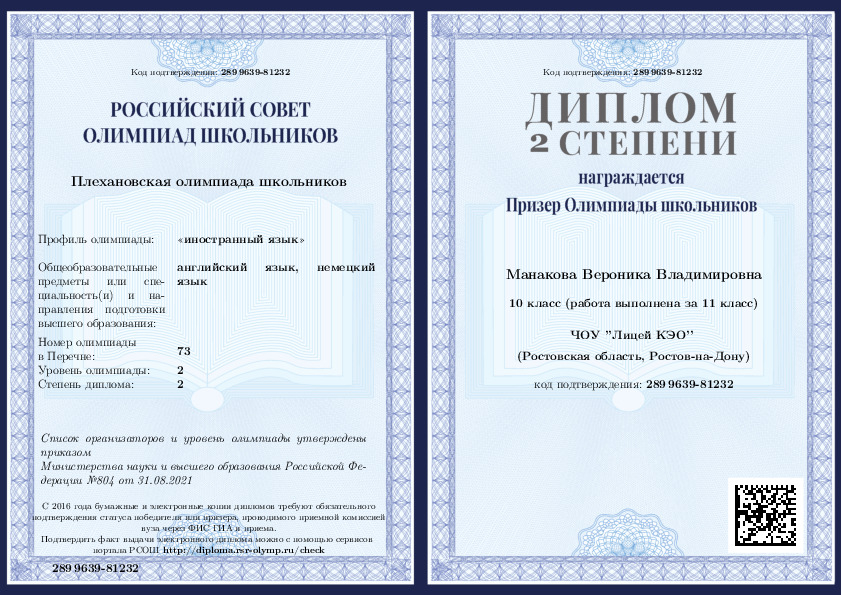Манакова Вероника
