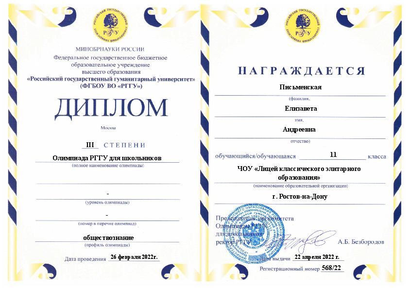 Росторгуева Елизавета