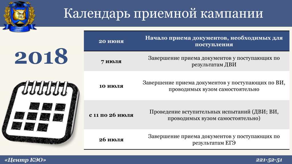 О приемной кампании 2018